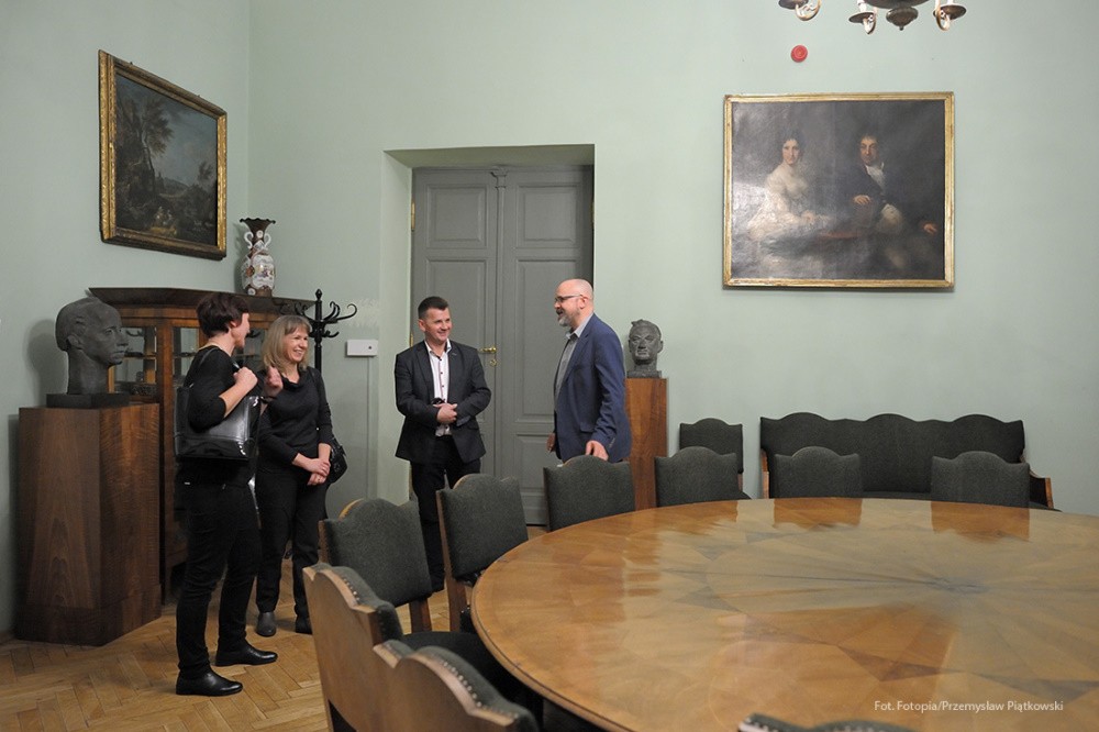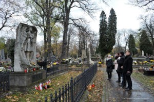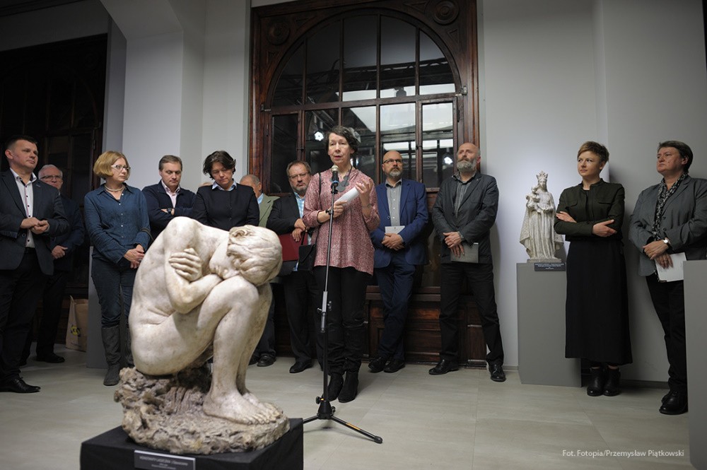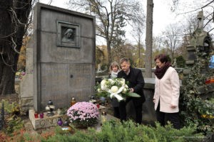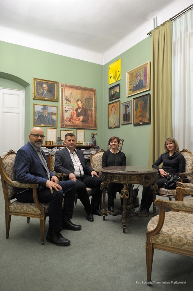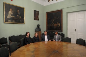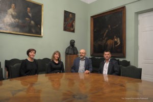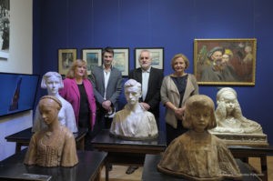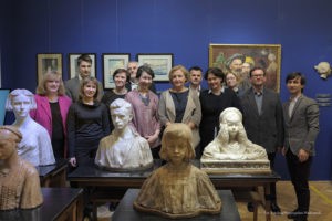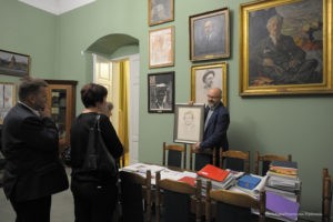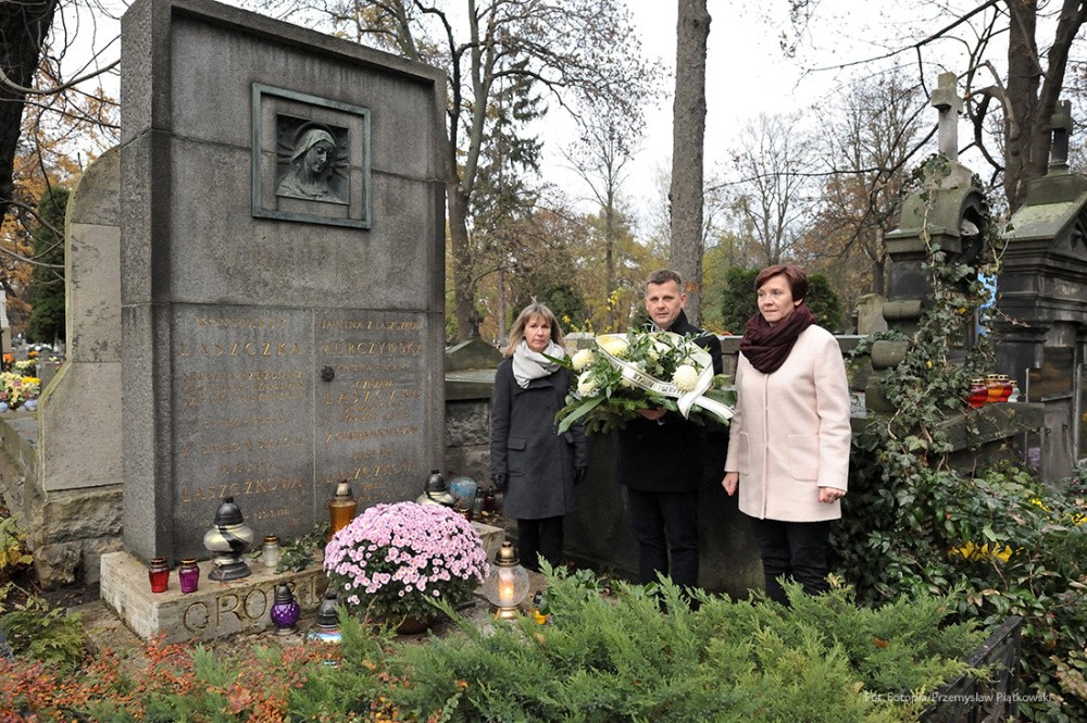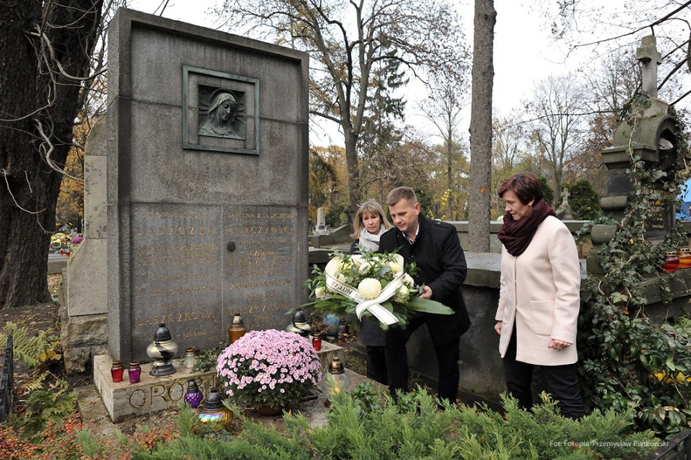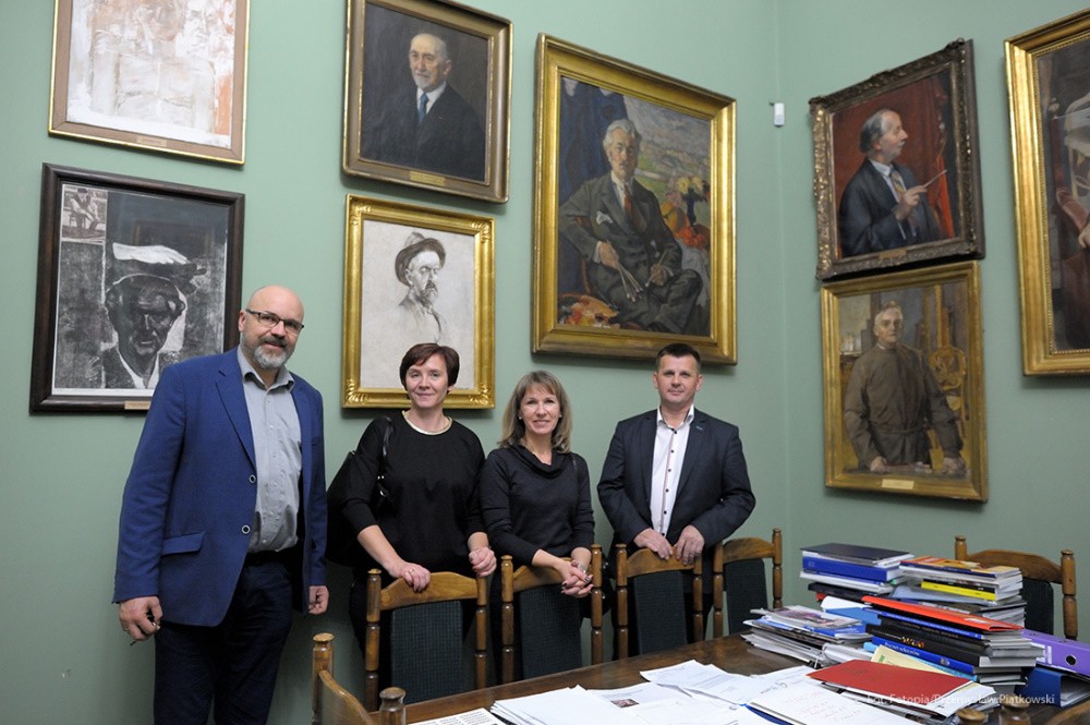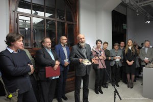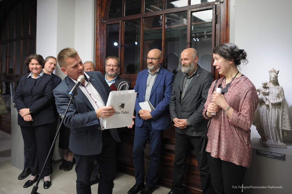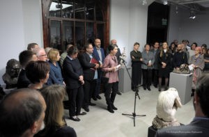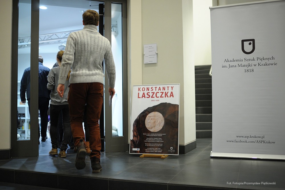 Na tę wspaniałą uroczystość do Krakowa przyjechali przedstawiciele Gminy Dobre: zastępca wójta Gminy Dobre – Piotr Chmielewski, dyrektor Gminnego Ośrodka Kultury – Mariola Chojecka i nauczyciel języka polskiego w Szkole Podstawowej w Dobrem – Anetta Bodecka. Towarzyszył im Przemysław Piątkowski – autor albumu o Konstantym Laszczce. To wielki zaszczyt i wyróżnienie dla mieszkańców Gminy Dobre uczestniczyć w tak ważnym wydarzeniu. Delegację powitał pan Michał Pilikowski- historyk, redaktor Wiadomości ASP. W jego towarzystwie Dobrzanie udali się na Cmentarz Rakowicki, gdzie złożyli wiązankę na grobie Artysty. Pan Michał okazał się wspaniałym przewodnikiem, jego wiedza na temat Konstantego Laszczki jest imponująca. Aby poczuć klimat artystycznej drogi Rzeźbiarza z Mazowsza, zaprowadził delegację do pracowni Artysty, oprowadził po budynku Akademii Sztuk Pięknych. Dzięki uprzejmości Prorektora ds. Nauki i Spraw Zagranicznych dr hab. Bogdana Achimescu, prof. ASP, przedstawiciele z Dobrego zajrzeli do sal akademii niedostępnych dla zwiedzających.
