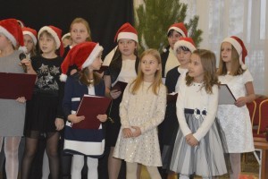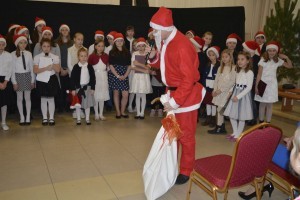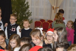 połączony z Kiermaszem Świątecznym i spotkaniem z Mikołajem. Dzieci należące do koła teatralnego i wokalno-muzycznego działającego przy Gminnym Ośrodku Kultury przygotowały wspaniały program, który wprowadził na w czas świąteczny nie zabrakło kolęd i pastorałek w wykonaniu dzieci. Podczas kiermaszu można było nabyć przecudne ozdoby choinkowe, stroiki, pierniczki jak również prezenty książkowe nie zabrało stoisk kulinarnych, które cieszyły się dużym popytem. Na koniec uroczystości zawitał do nas Święty Mikołaj z workiem słodyczy dla dzieci.
