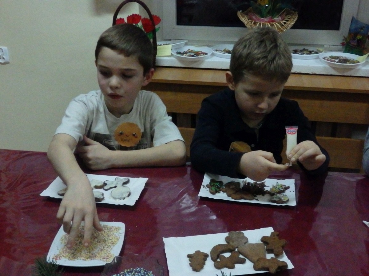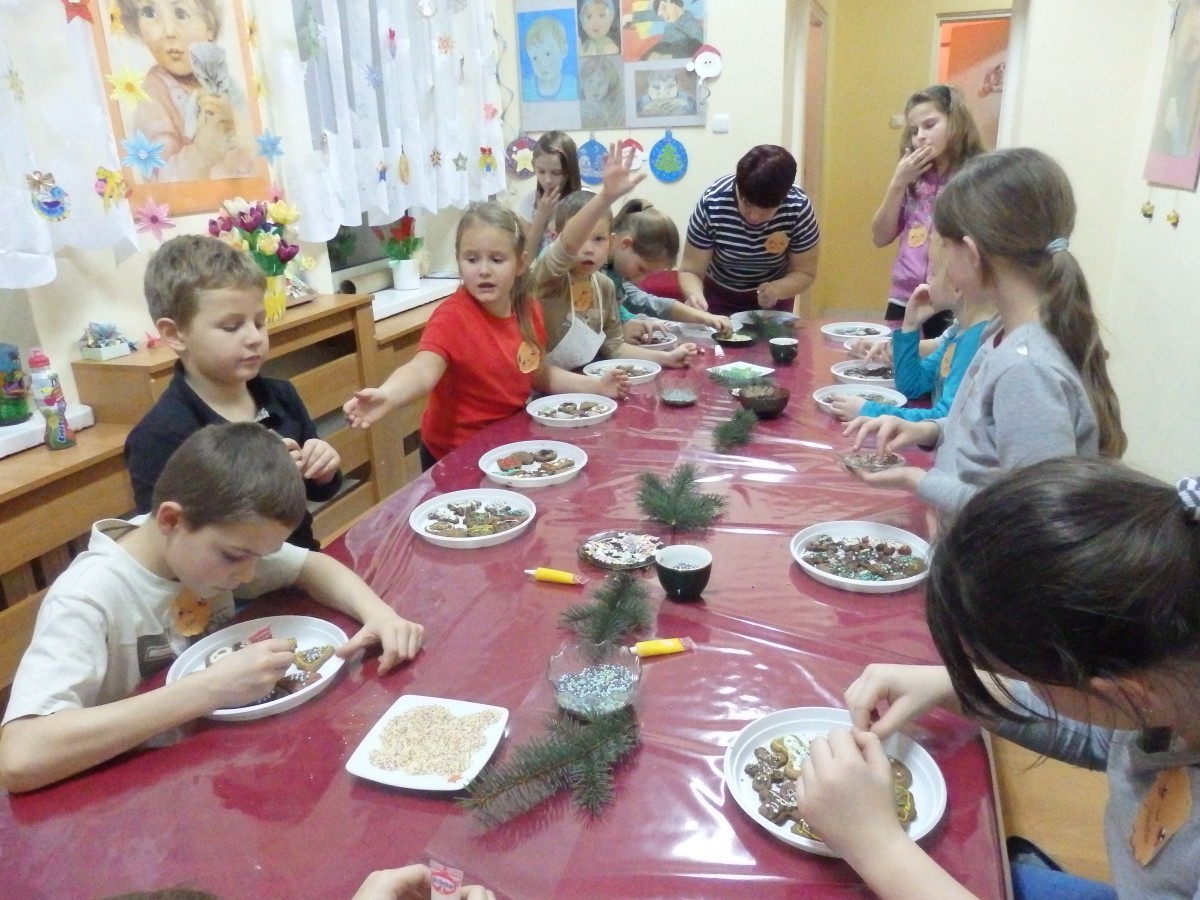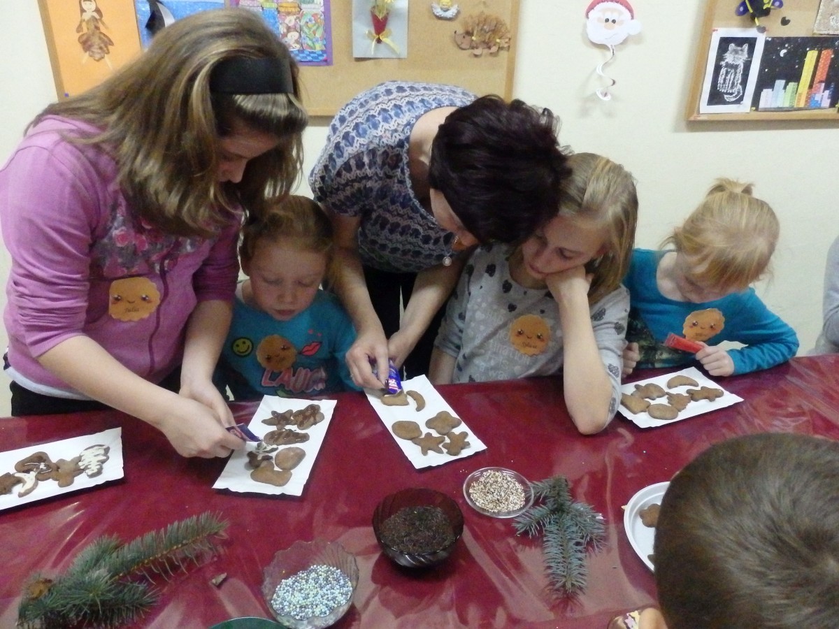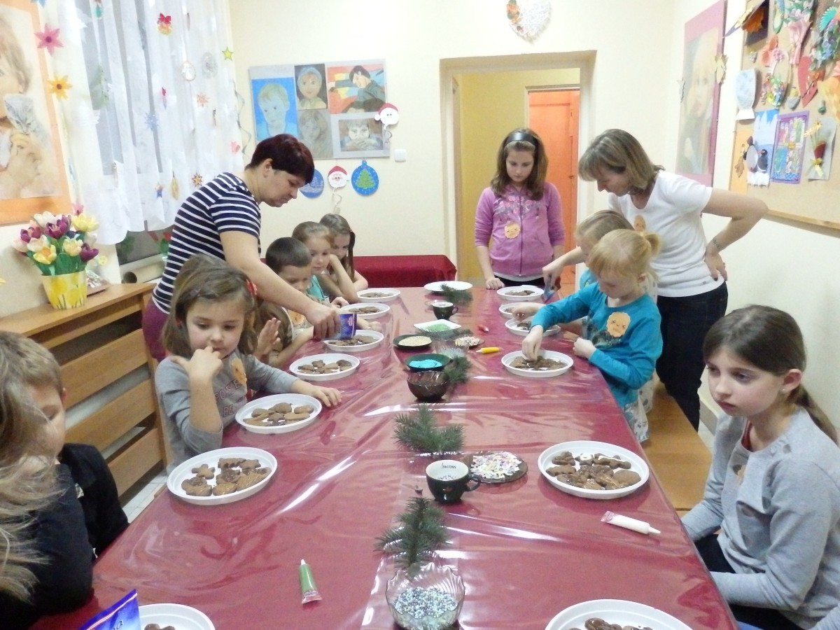 Podczas pracy dzieci śpiewały kolędy, co nas wprowadziło w świąteczny nastrój, a zapach pierników było czuć na całym Dobrem. Własnoręcznie zrobione i pięknie udekorowane pierniczki każdy z uczestników zajęć mógł zabrać do domu, aby zdobiły wigilijne stoły.