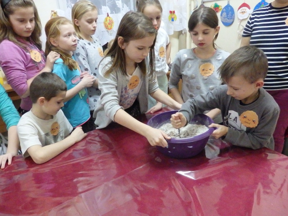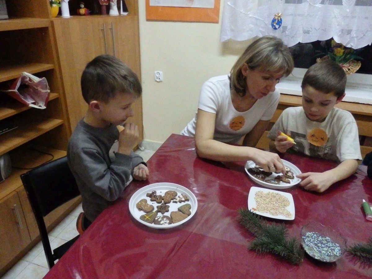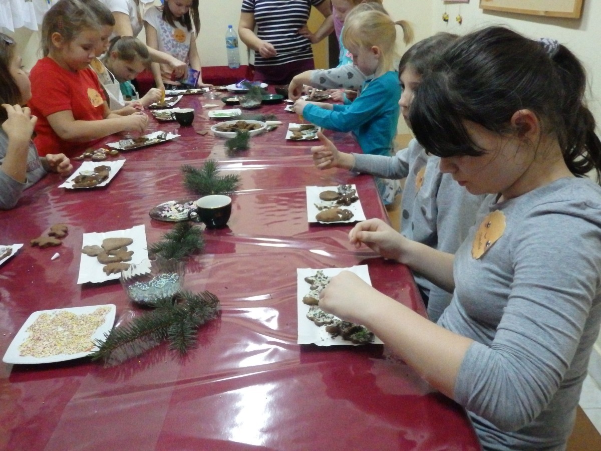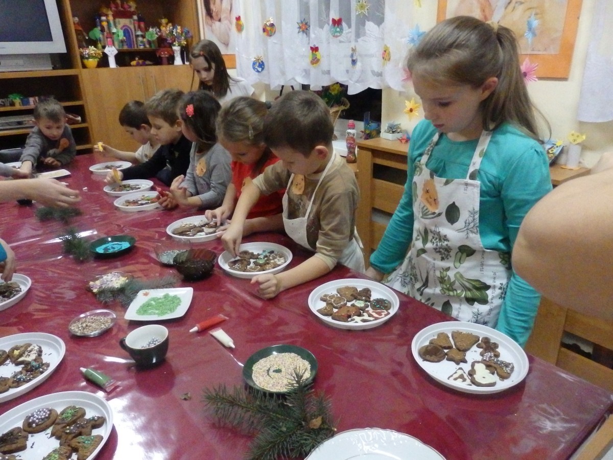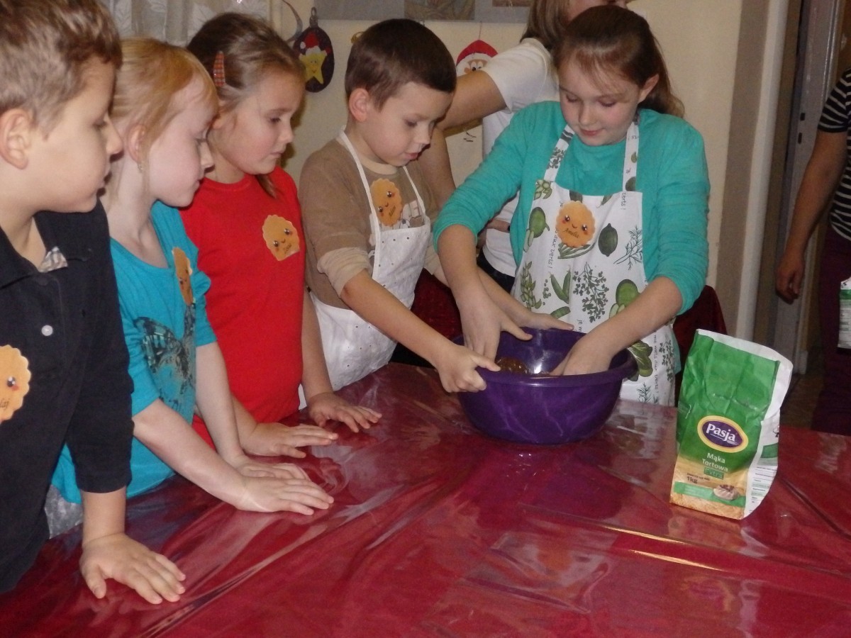 Podczas pracy dzieci śpiewały kolędy, co nas wprowadziło w świąteczny nastrój, a zapach pierników było czuć na całym Dobrem. Własnoręcznie zrobione i pięknie udekorowane pierniczki każdy z uczestników zajęć mógł zabrać do domu, aby zdobiły wigilijne stoły.