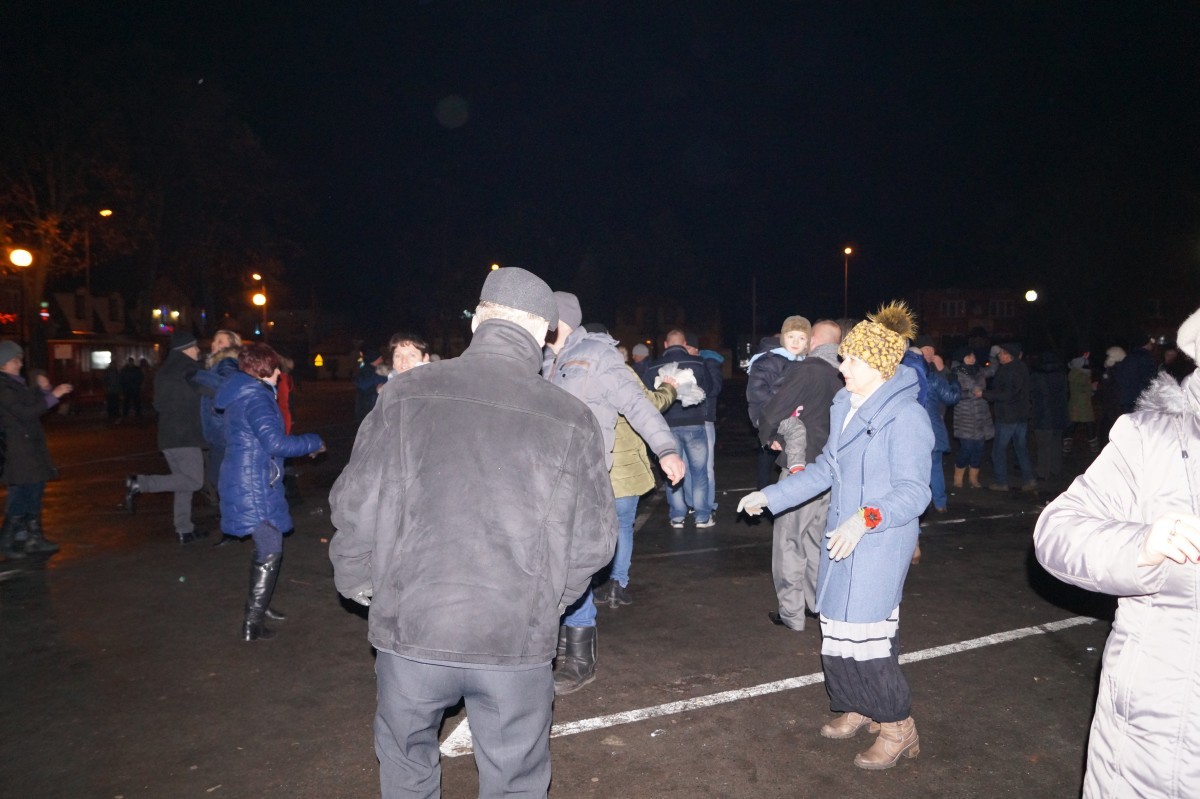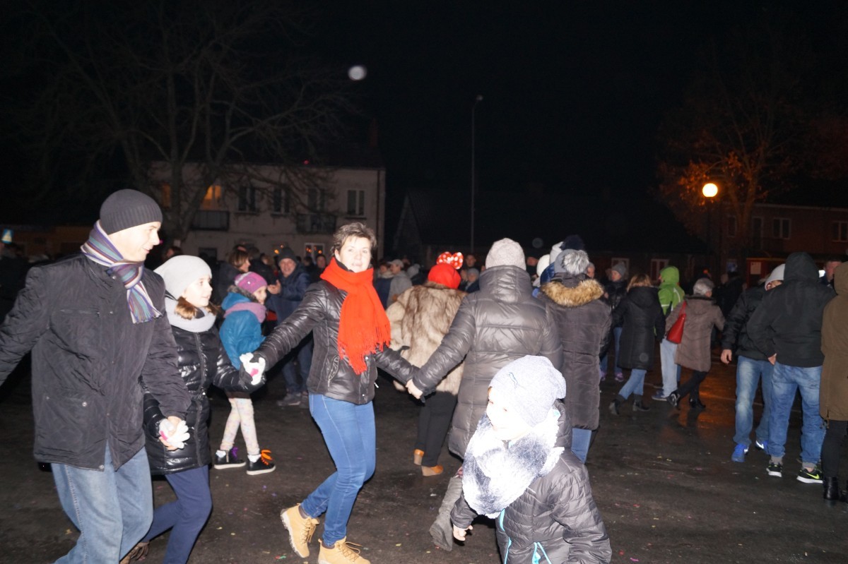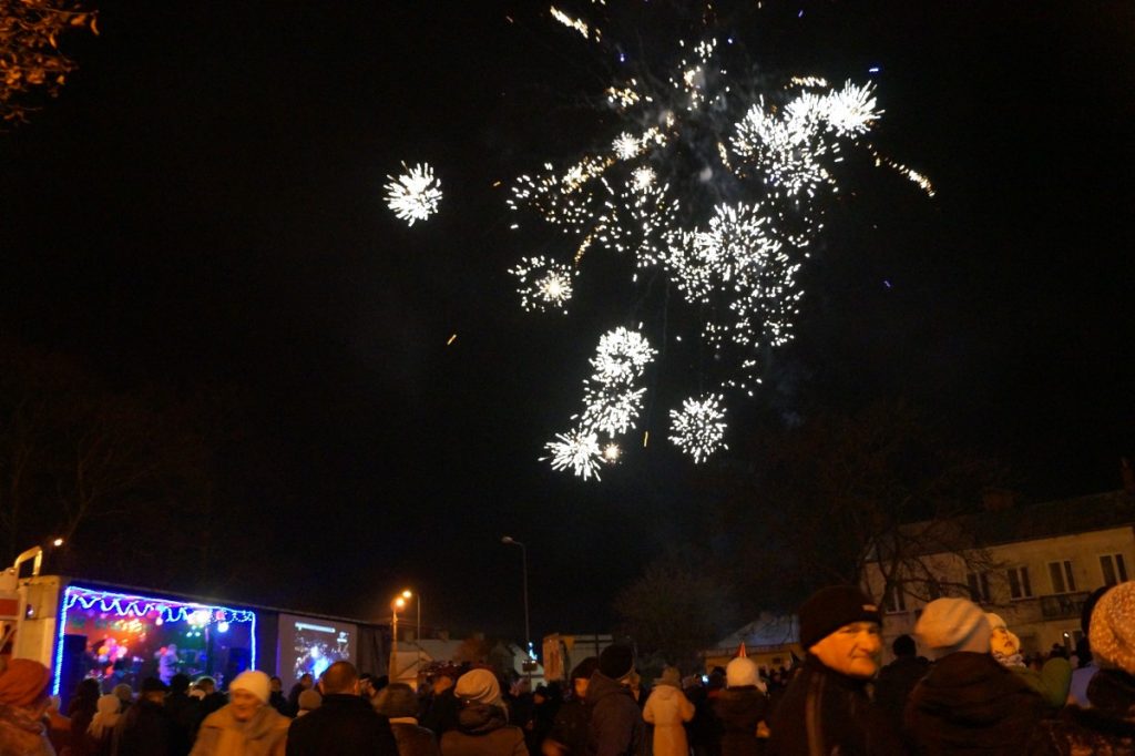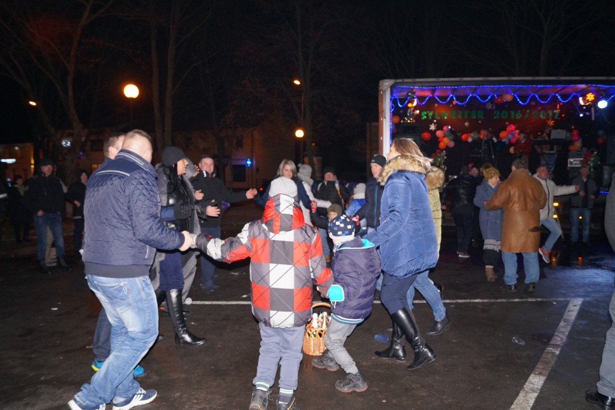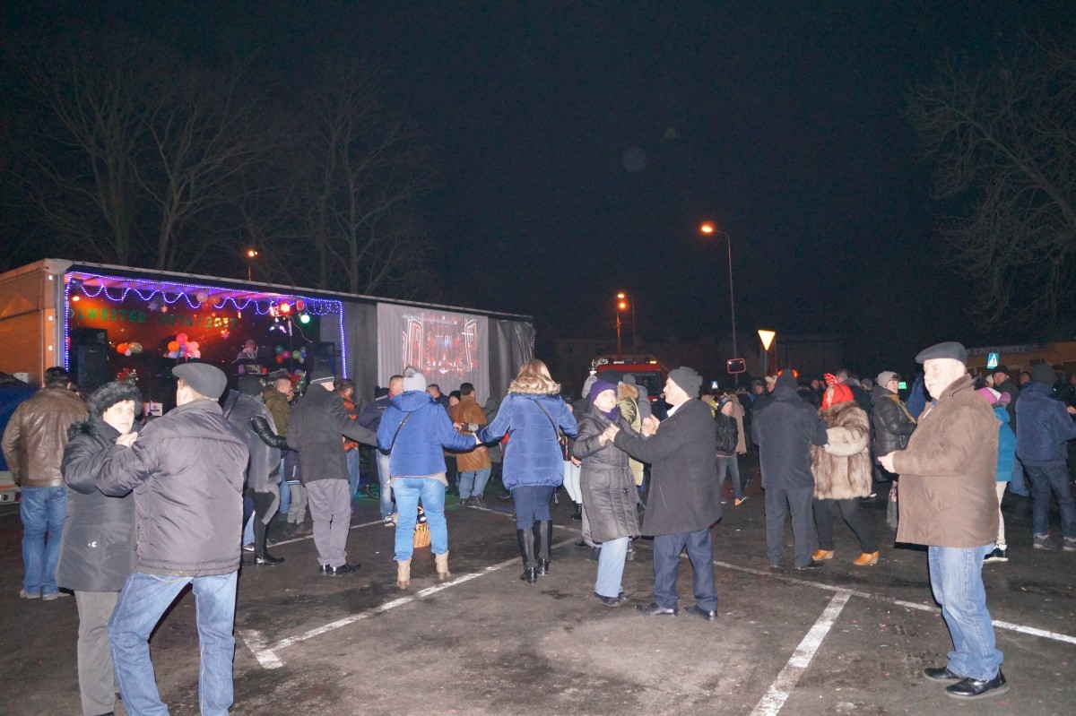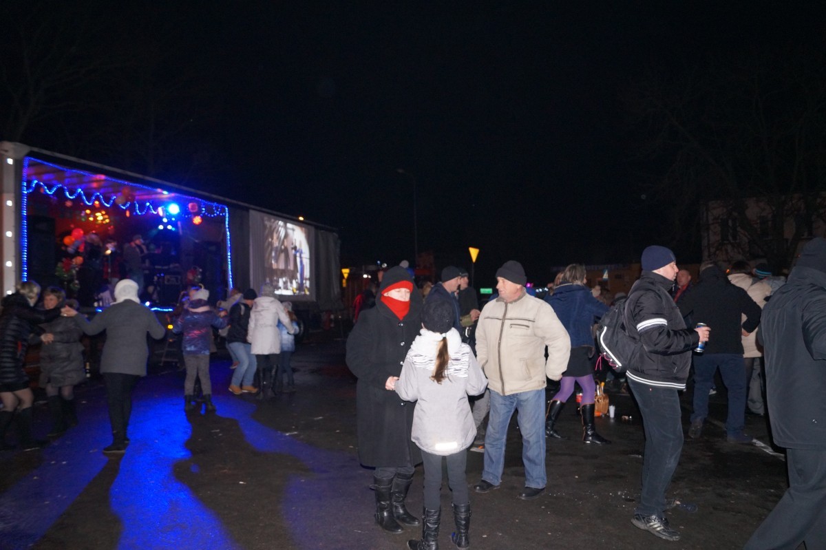 Tuż przed północą zebrani na placu wspólnie odliczali sekundy do północy, a o godz. 2400 wystrzelili korki szampana i złożyli sobie życzenia. Życzenia wszystkim uczestnikom sylwestrowej zabawy ze sceny złożyli wójt Gminy Tadeusz Gałązka oraz wice wójt Piotr Chmielewski.
