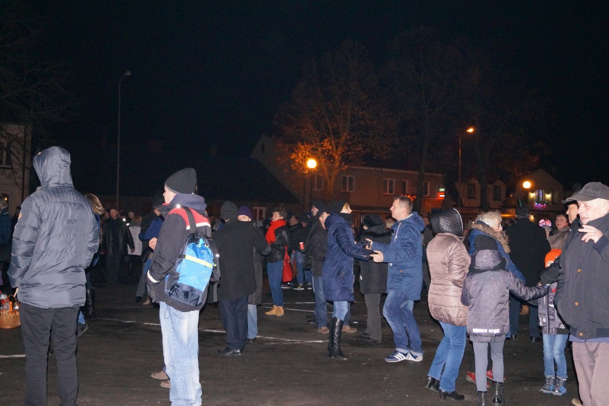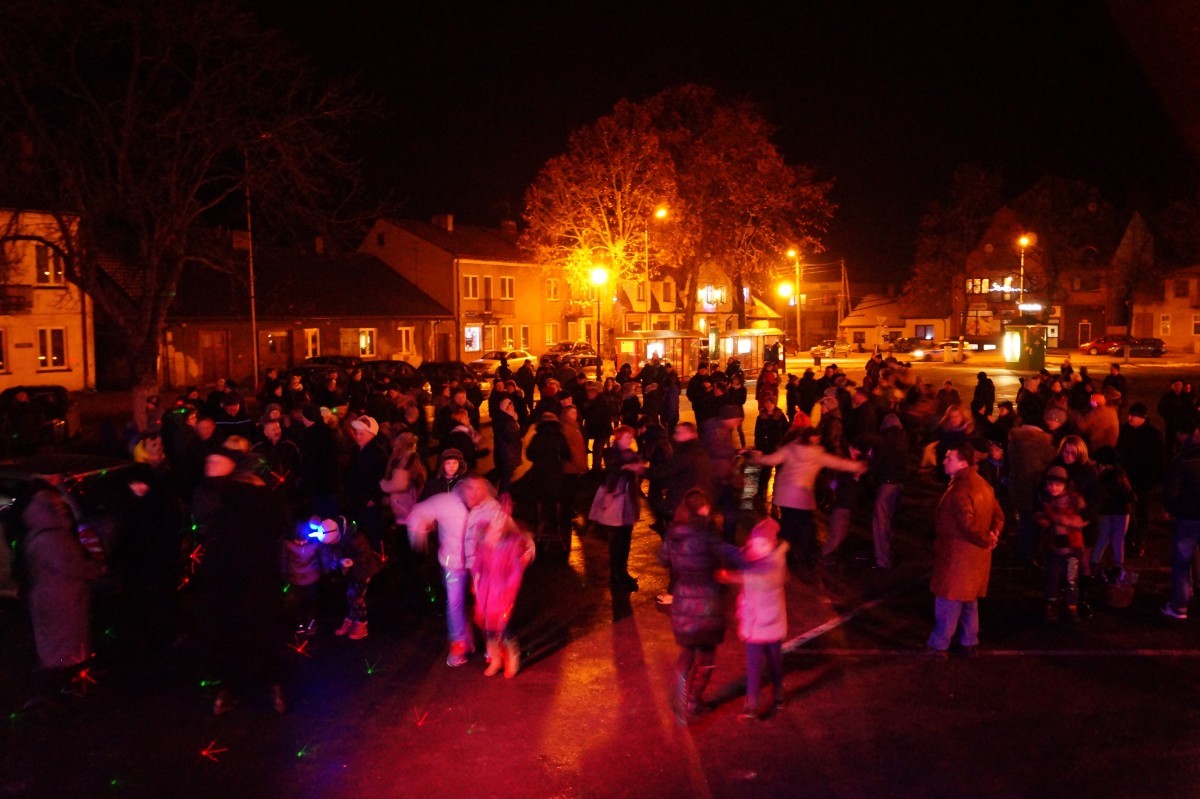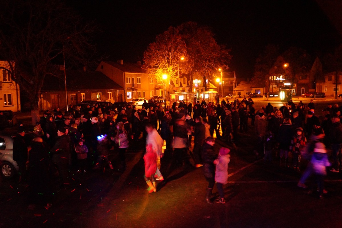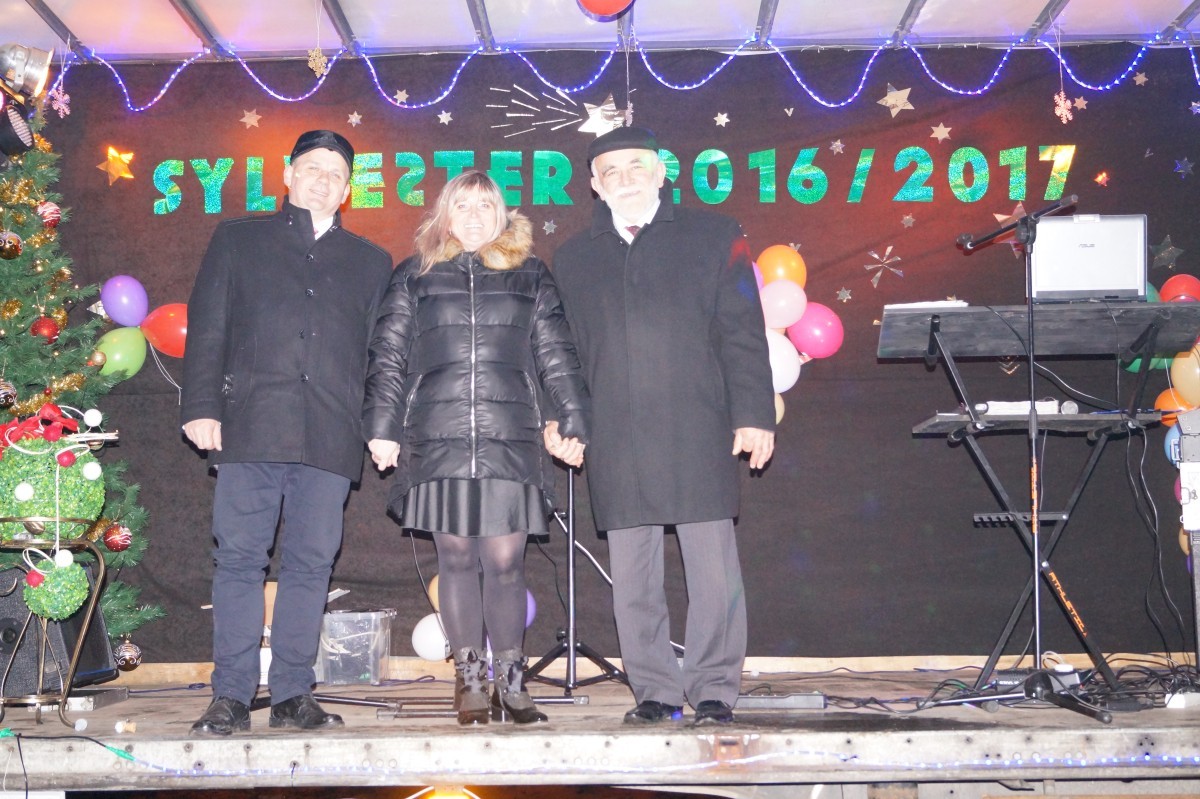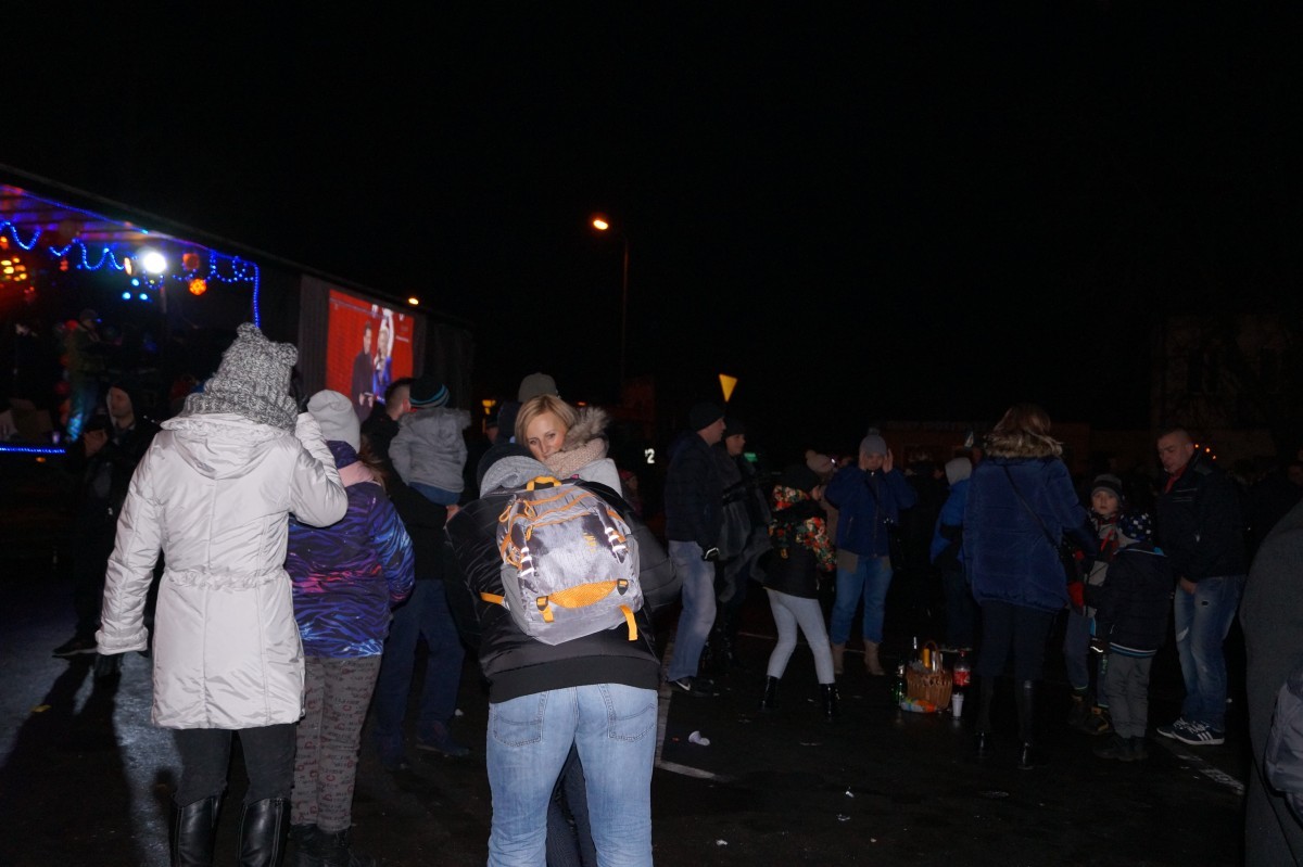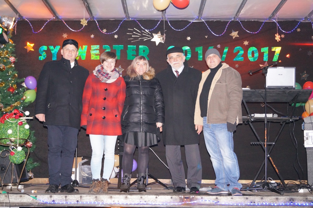 Tuż przed północą zebrani na placu wspólnie odliczali sekundy do północy, a o godz. 2400 wystrzelili korki szampana i złożyli sobie życzenia. Życzenia wszystkim uczestnikom sylwestrowej zabawy ze sceny złożyli wójt Gminy Tadeusz Gałązka oraz wice wójt Piotr Chmielewski.