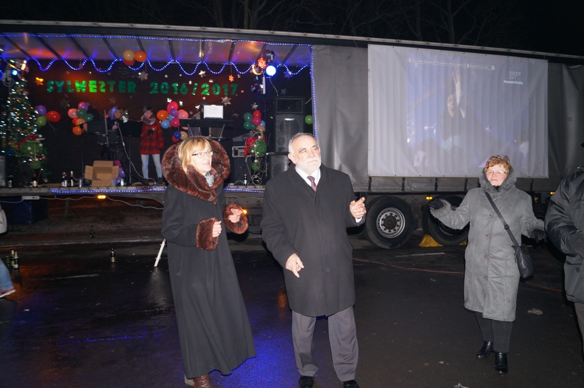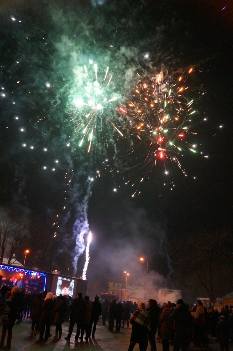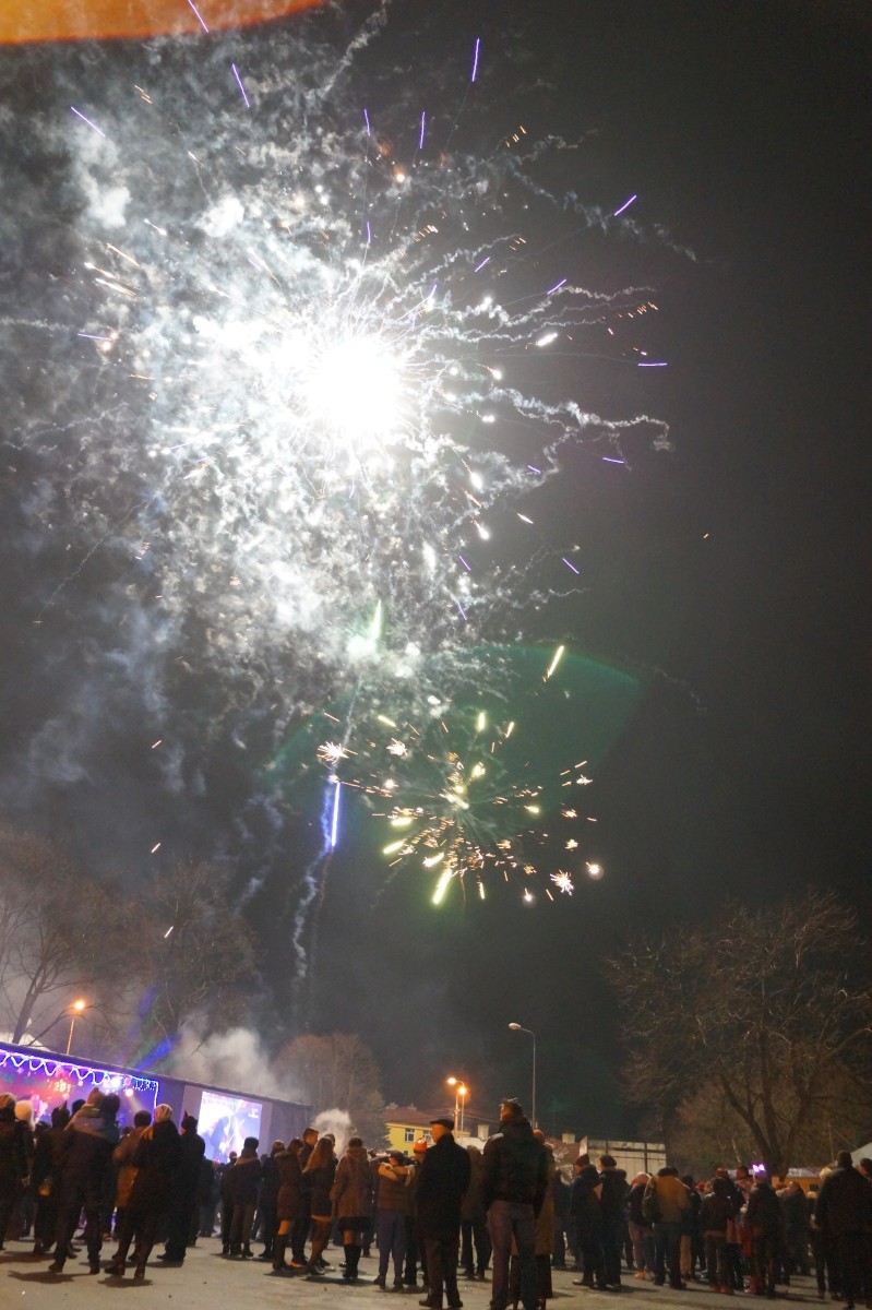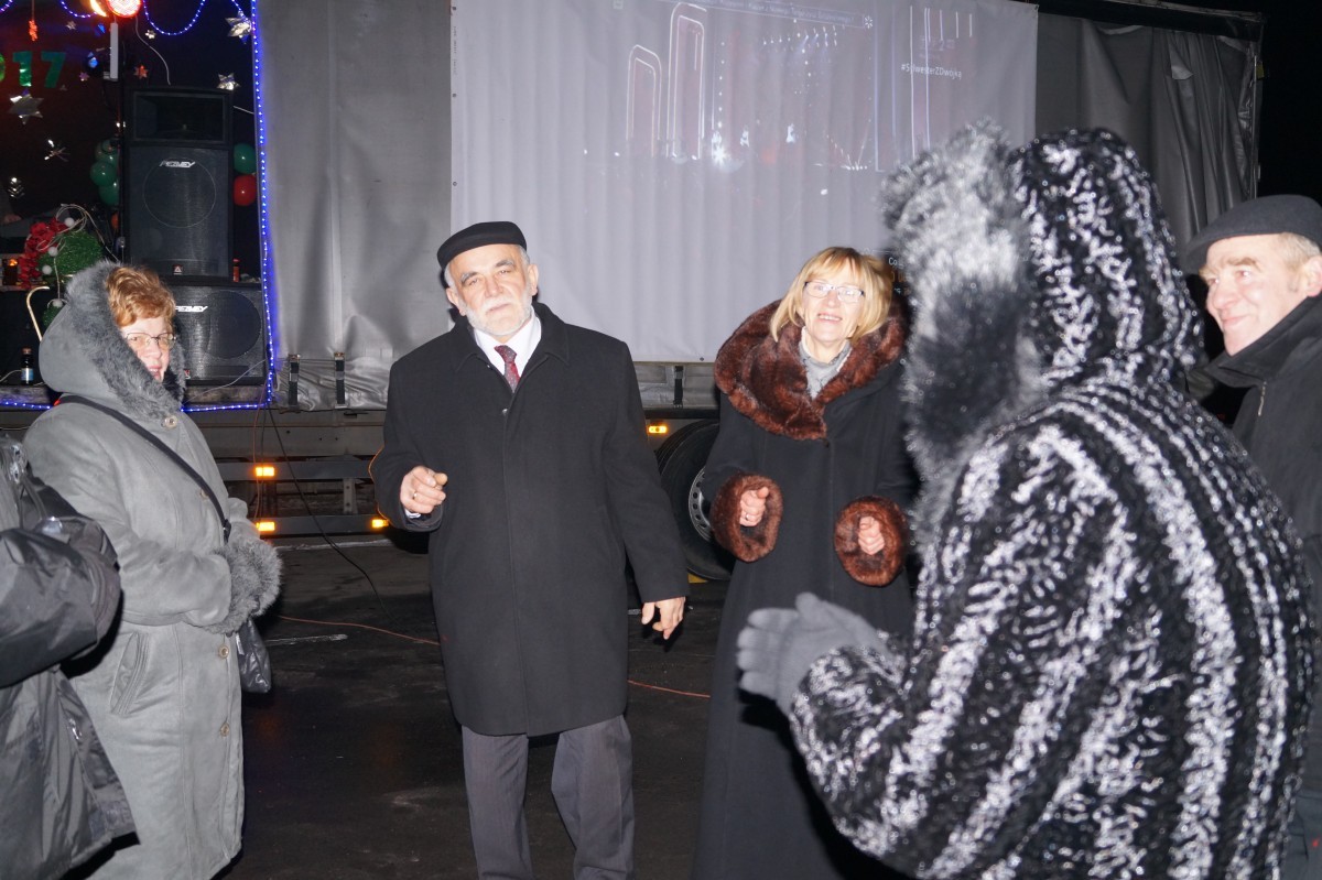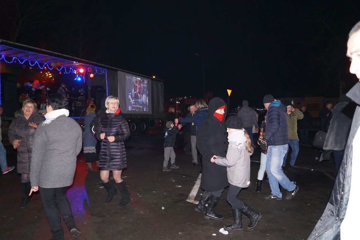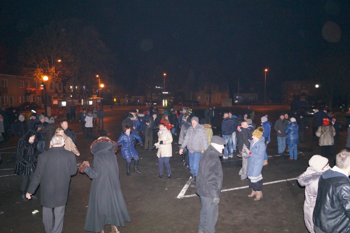 Tuż przed północą zebrani na placu wspólnie odliczali sekundy do północy, a o godz. 2400 wystrzelili korki szampana i złożyli sobie życzenia. Życzenia wszystkim uczestnikom sylwestrowej zabawy ze sceny złożyli wójt Gminy Tadeusz Gałązka oraz wice wójt Piotr Chmielewski.