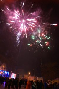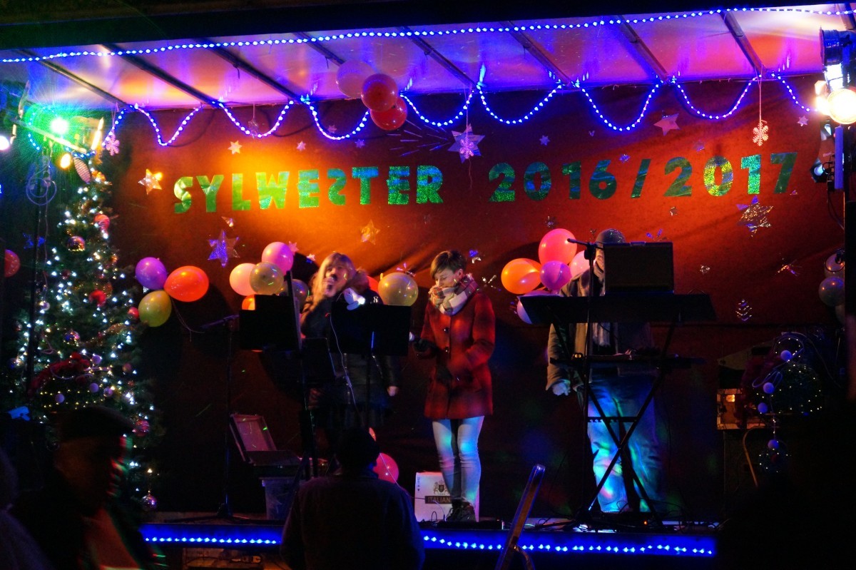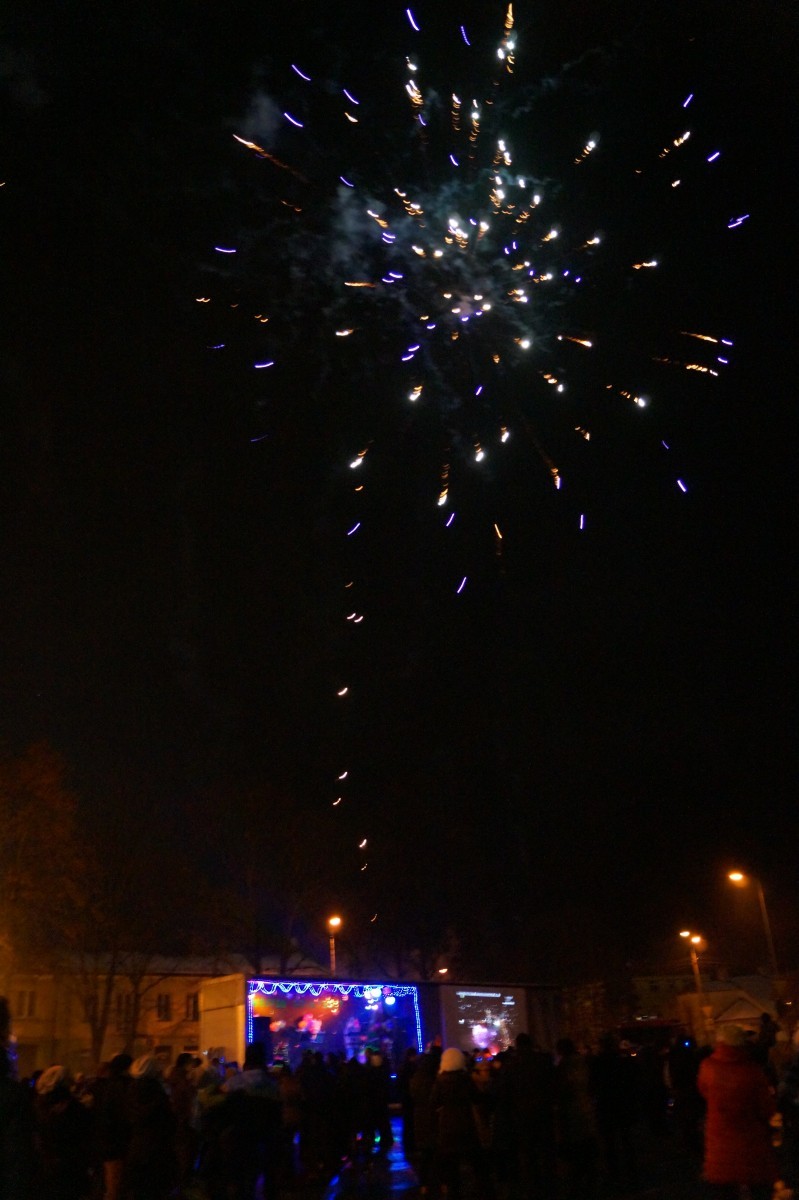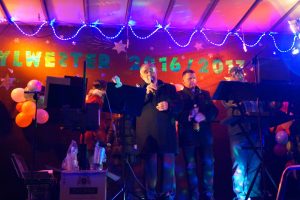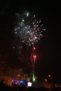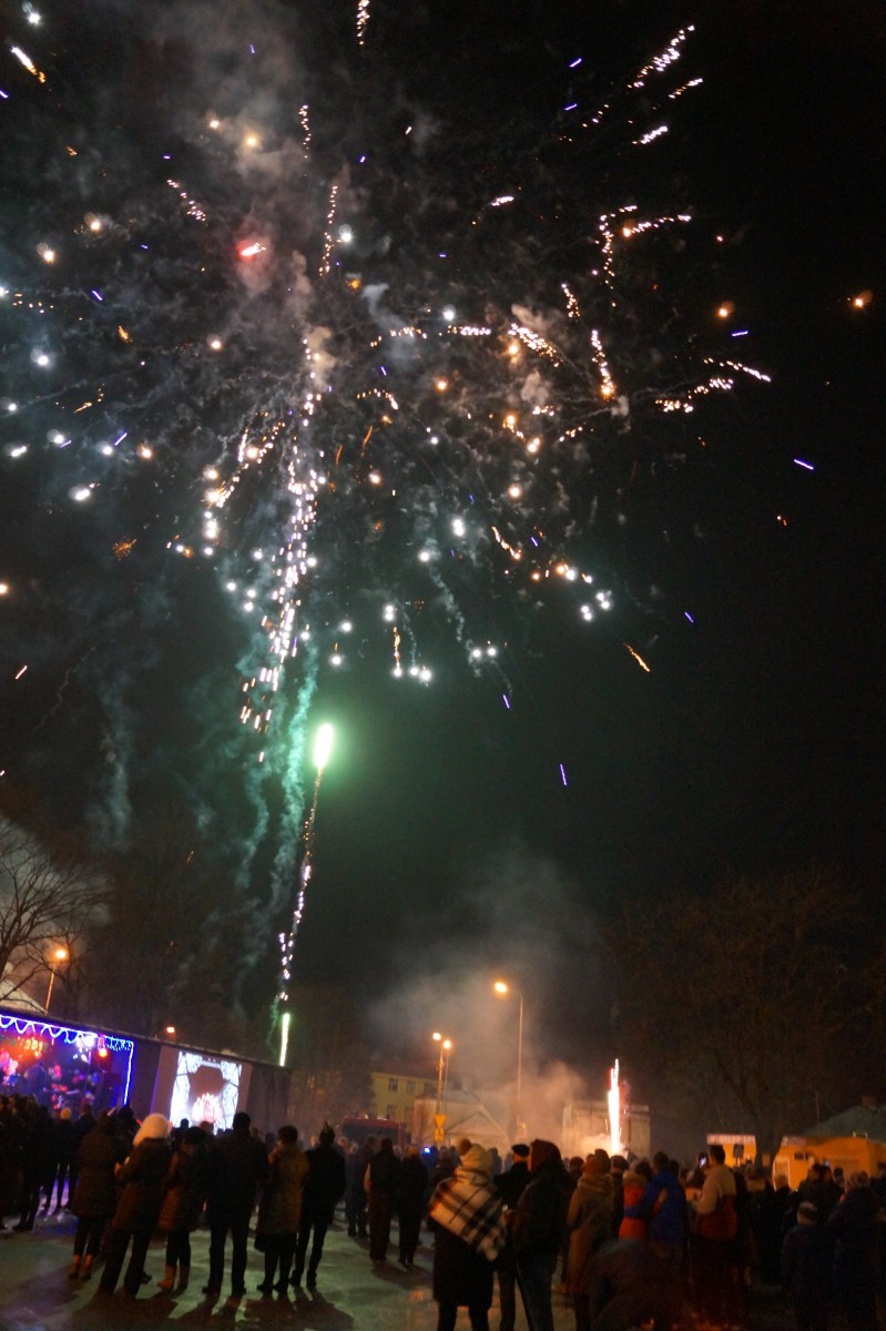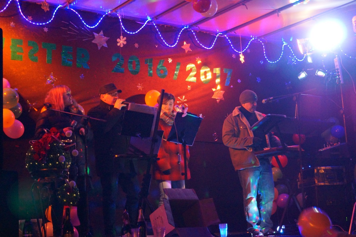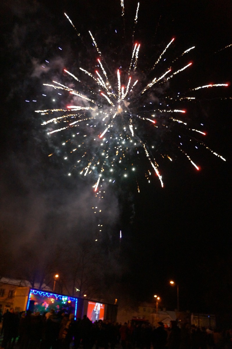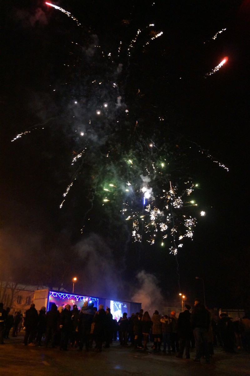 Tuż przed północą zebrani na placu wspólnie odliczali sekundy do północy, a o godz. 2400 wystrzelili korki szampana i złożyli sobie życzenia. Życzenia wszystkim uczestnikom sylwestrowej zabawy ze sceny złożyli wójt Gminy Tadeusz Gałązka oraz wice wójt Piotr Chmielewski.