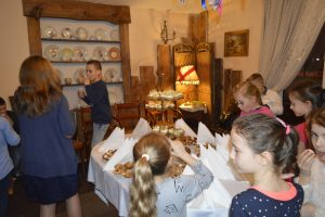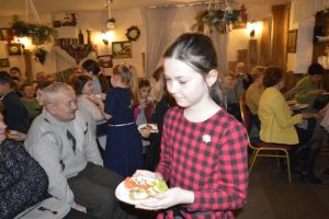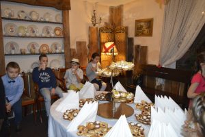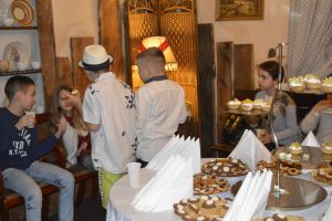 Dzieci przygotowały wcześniej samodzielnie dla nich poczęstunek w postaci kanapek, babeczek, kawy i herbaty. Wszystko wyglądało smakowicie.