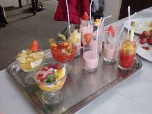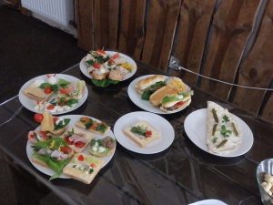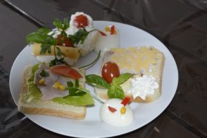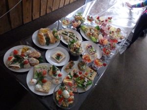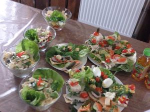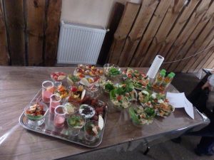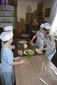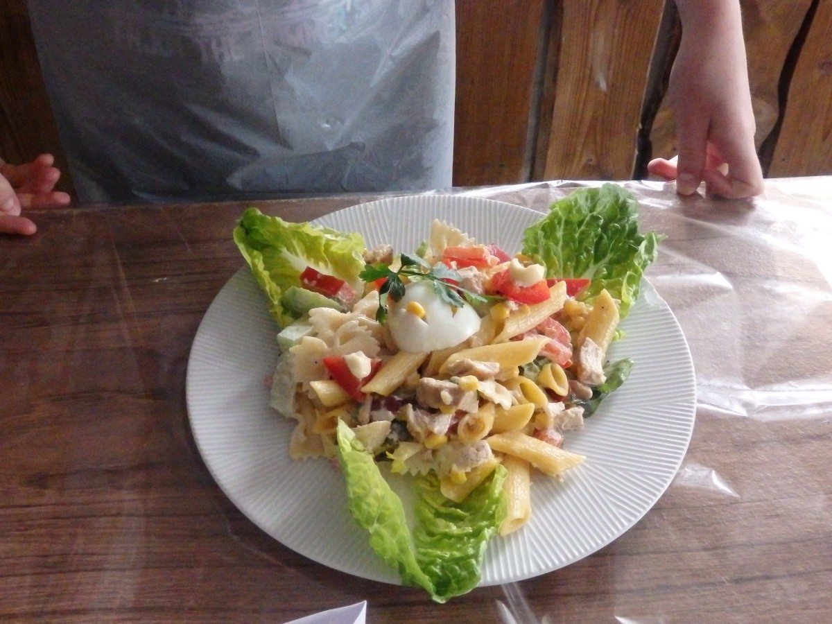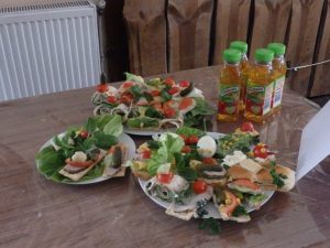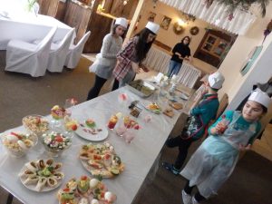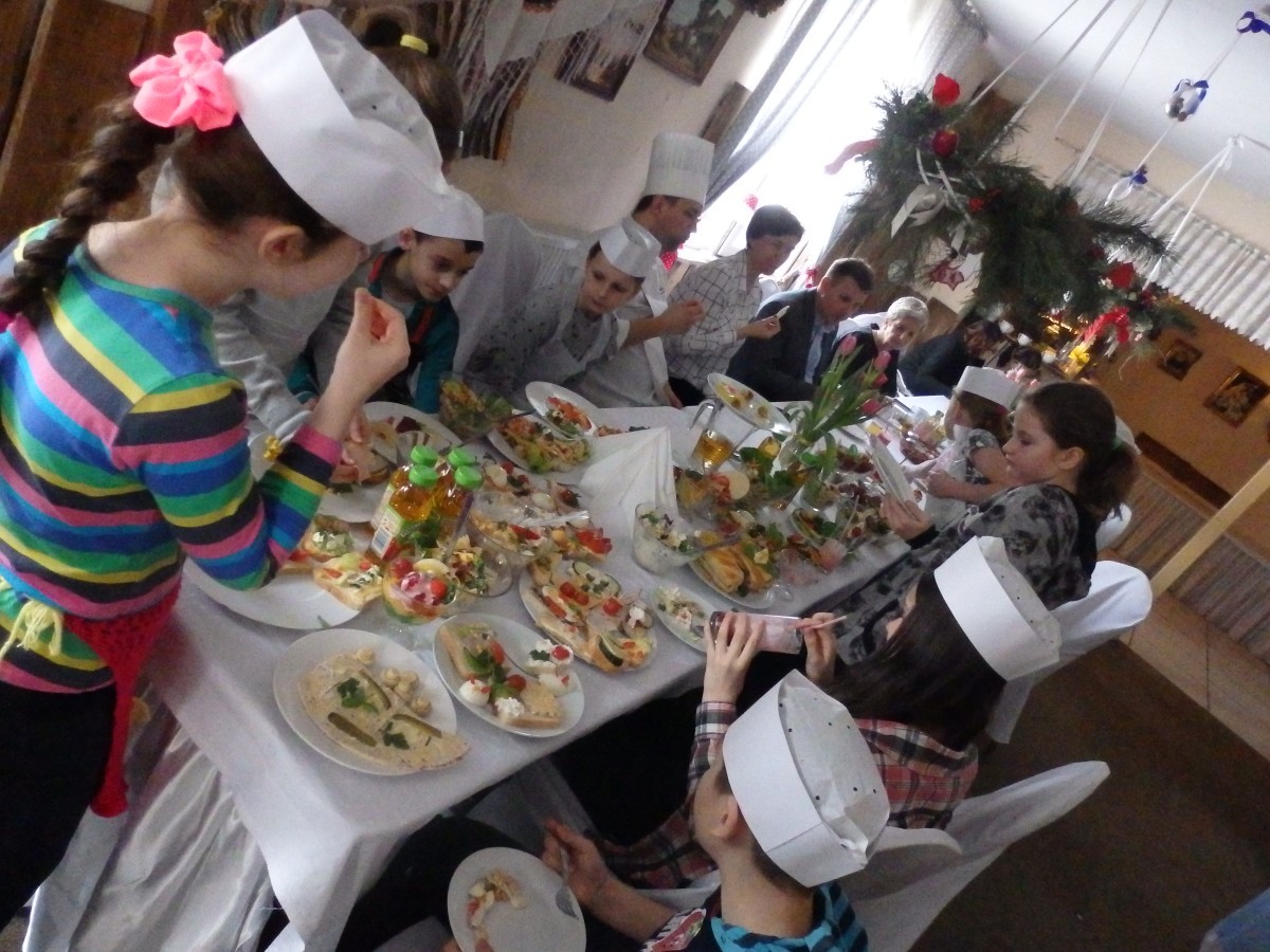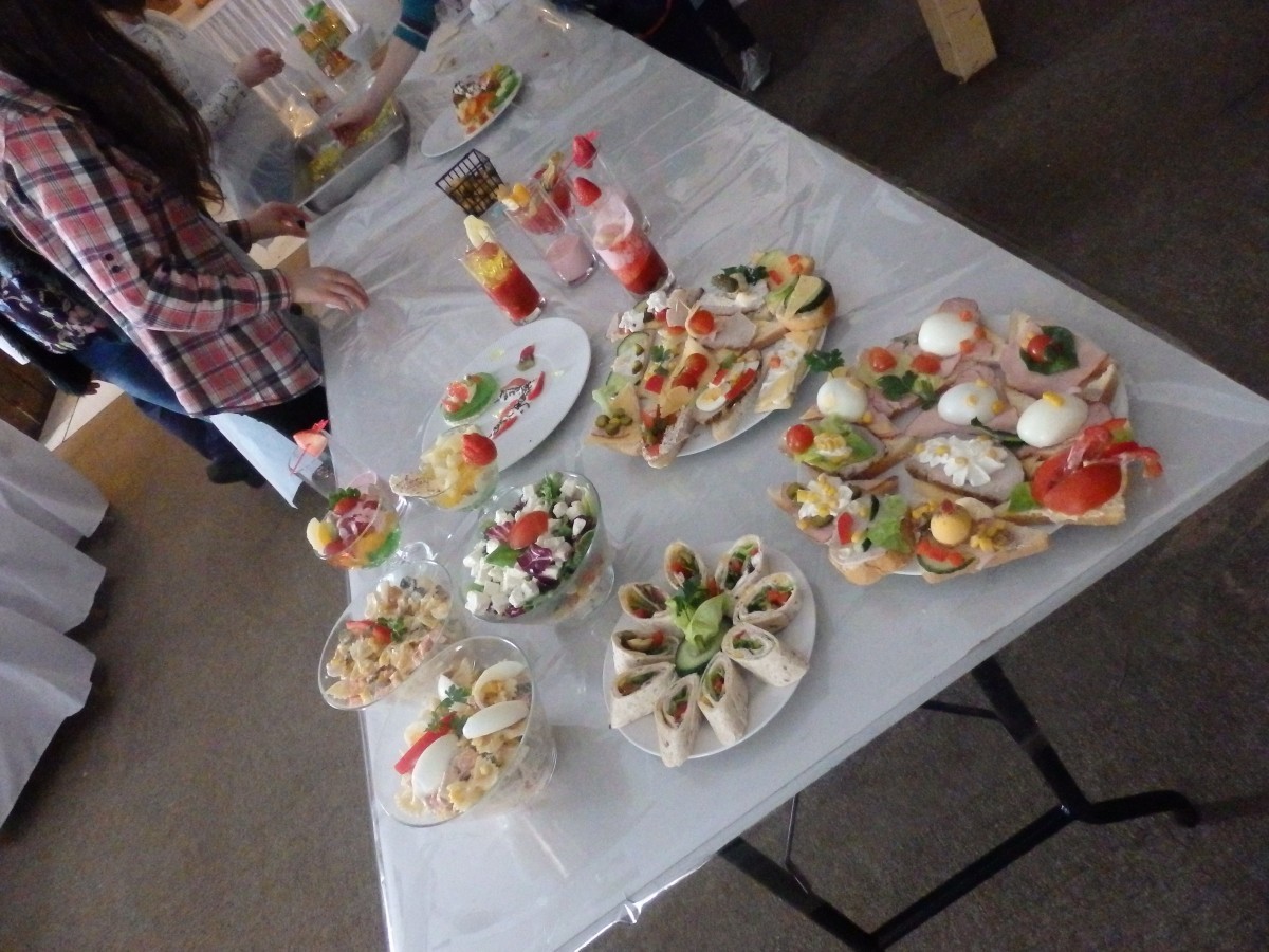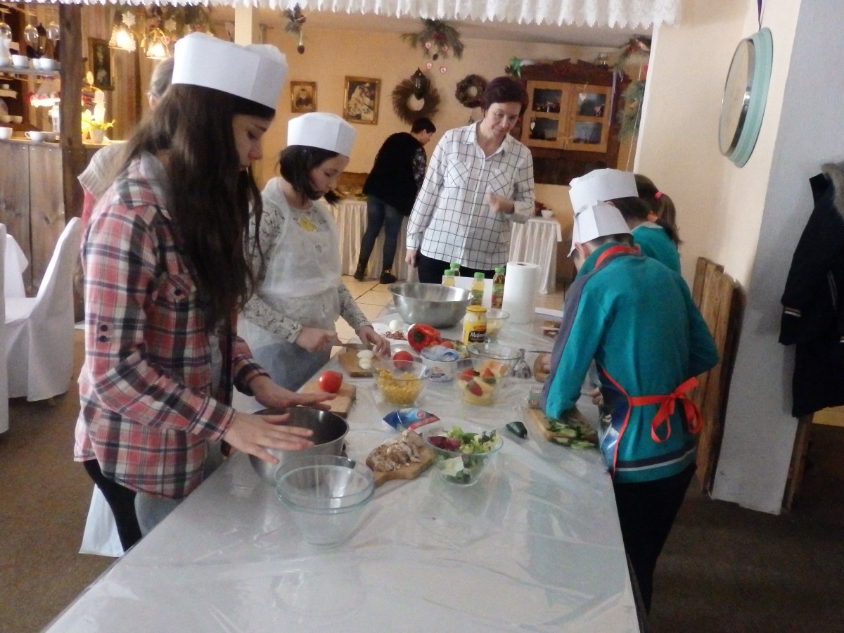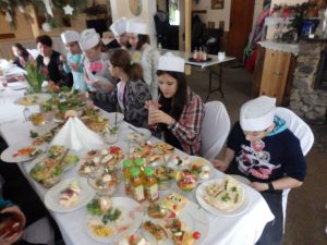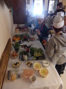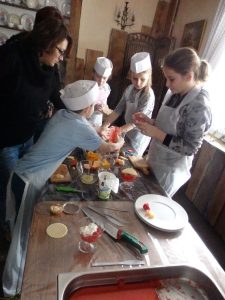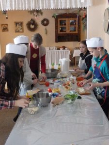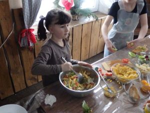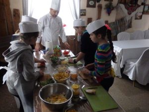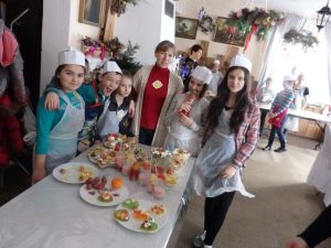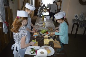 Gospodarz przygotował dla uczestników zajęć listę wyzwań. Trzy grupy rywalizowały w konkurencjach kulinarnych w kategoriach: kanapki, sałatki i desery. Dzieci udowodniły, że potrafią! Wyczarowały fantastyczne kanapki w kształcie myszki, jeżyka, żaglowca. Kolorowe sałatki świadczyły o pomysłowości i kreatywności uczestników. Desery potwierdziły wyjątkowe zdolności młodych kucharzy. Truskawkowe koktajle, galaretki z owocami, babeczki z bitą śmietaną nie miały sobie równych. Wszystko było pięknie podane i udekorowane.