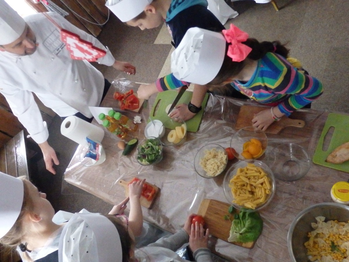 Dzieci wzięły udział w warsztatach kulinarnych ,, Akademia smaku” i walczyły o tytuł ,, MasterChefa” pod czujnym okiem znakomitego kucharza i właściciela restauracji ,,Marcelowa Chata” – pana Marcina Skarżyńskiego.