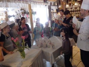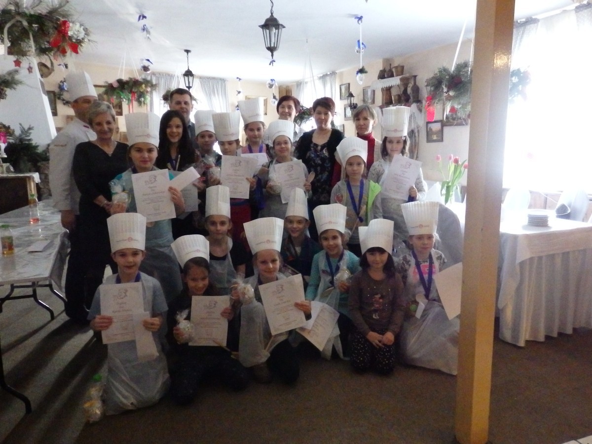 Uczestnicy warsztatów kulinarnych otrzymali dyplomy, pamiątkowe kubeczki oraz atrybut wzorowego kucharza- drewnianą chochlę.