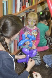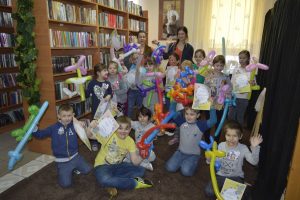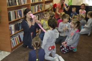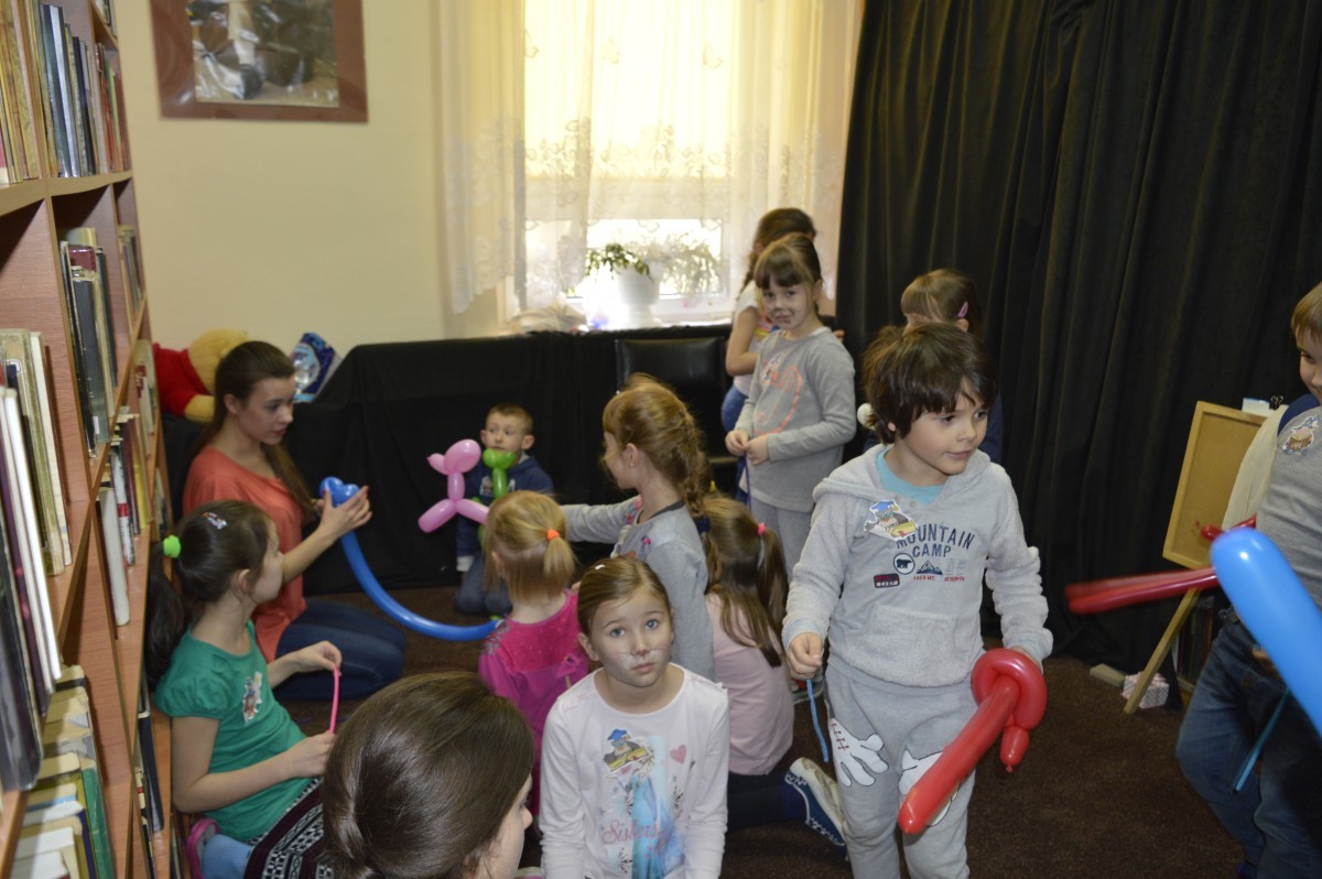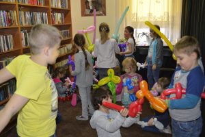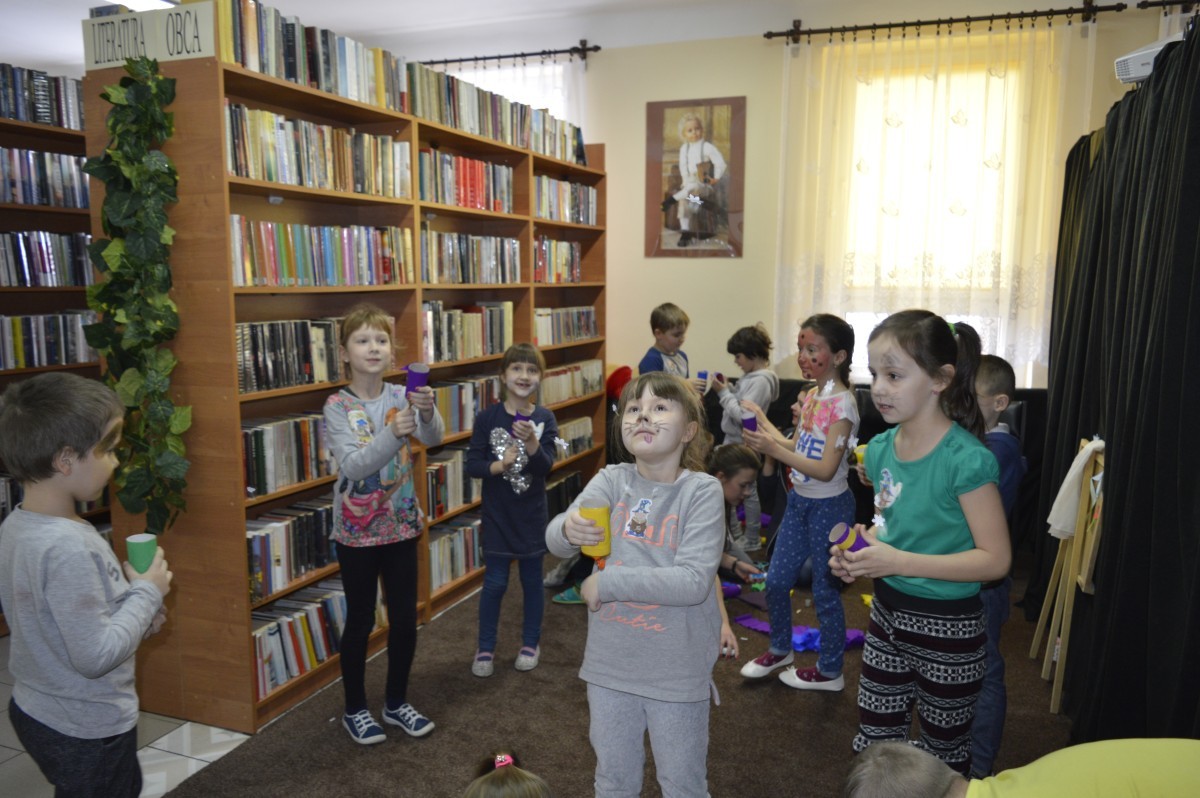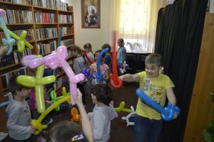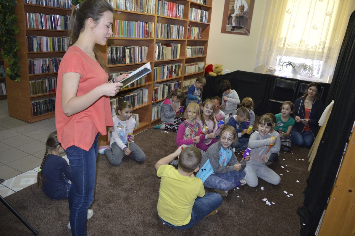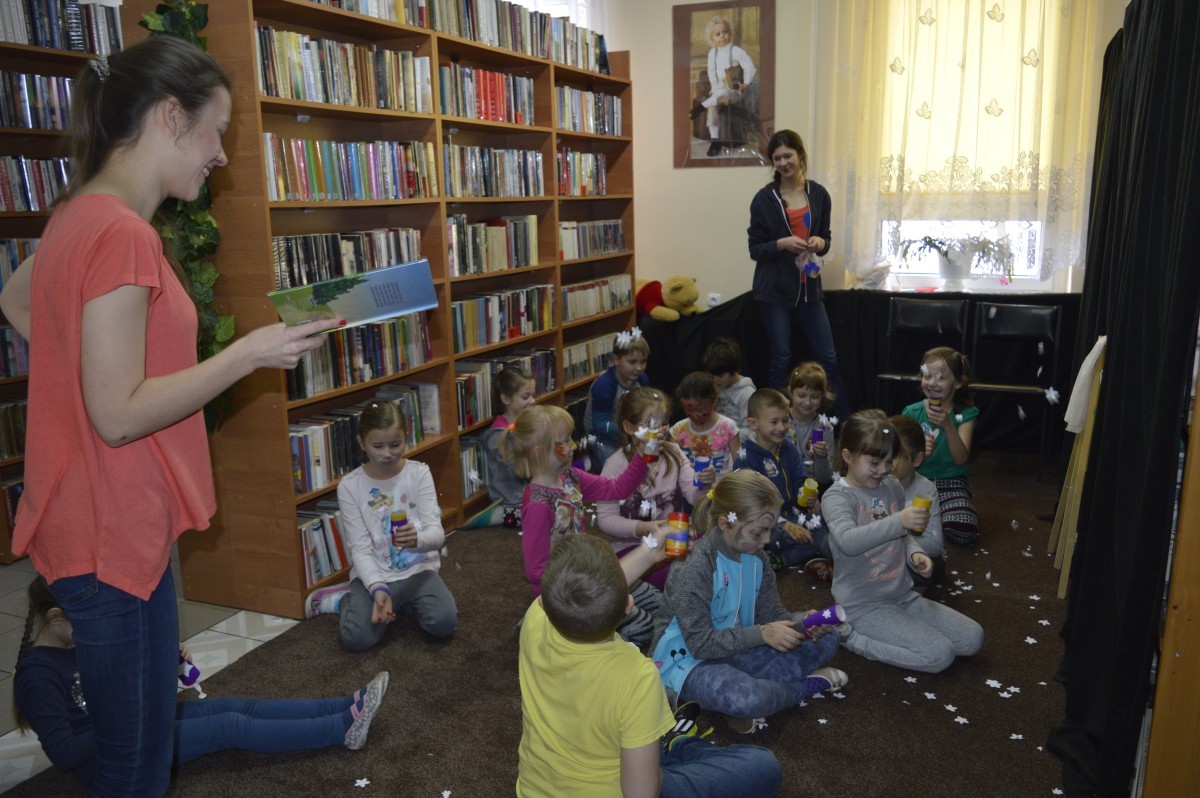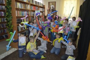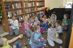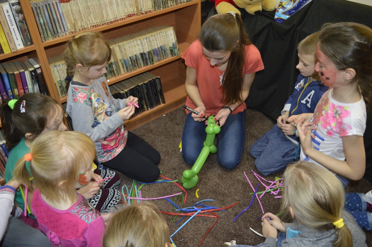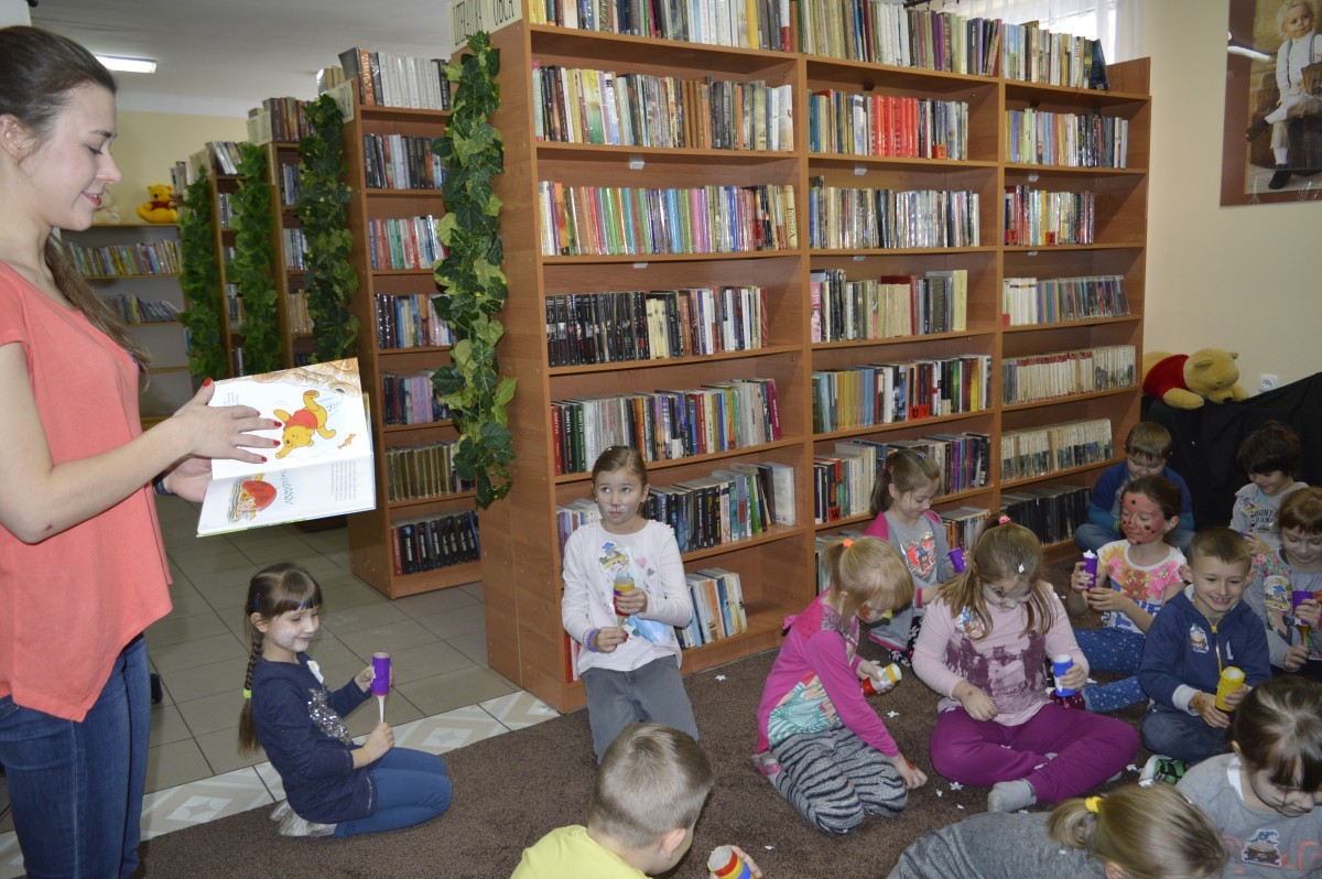 zajęcia odbywały się w bibliotece nie mogło zabraknąć czytanki dla najmłodszych. Tym razem dzieci wysłuchały historii o Kubusiu Puchatku. Nie zabrakło także balonowych zwierzaków i dyplomów za wspaniałą zabawę.