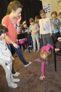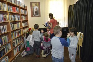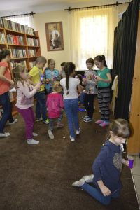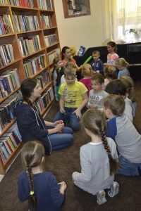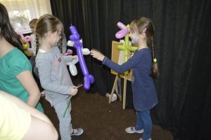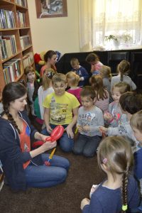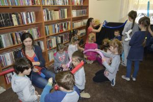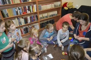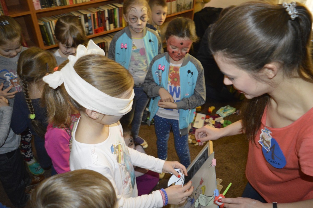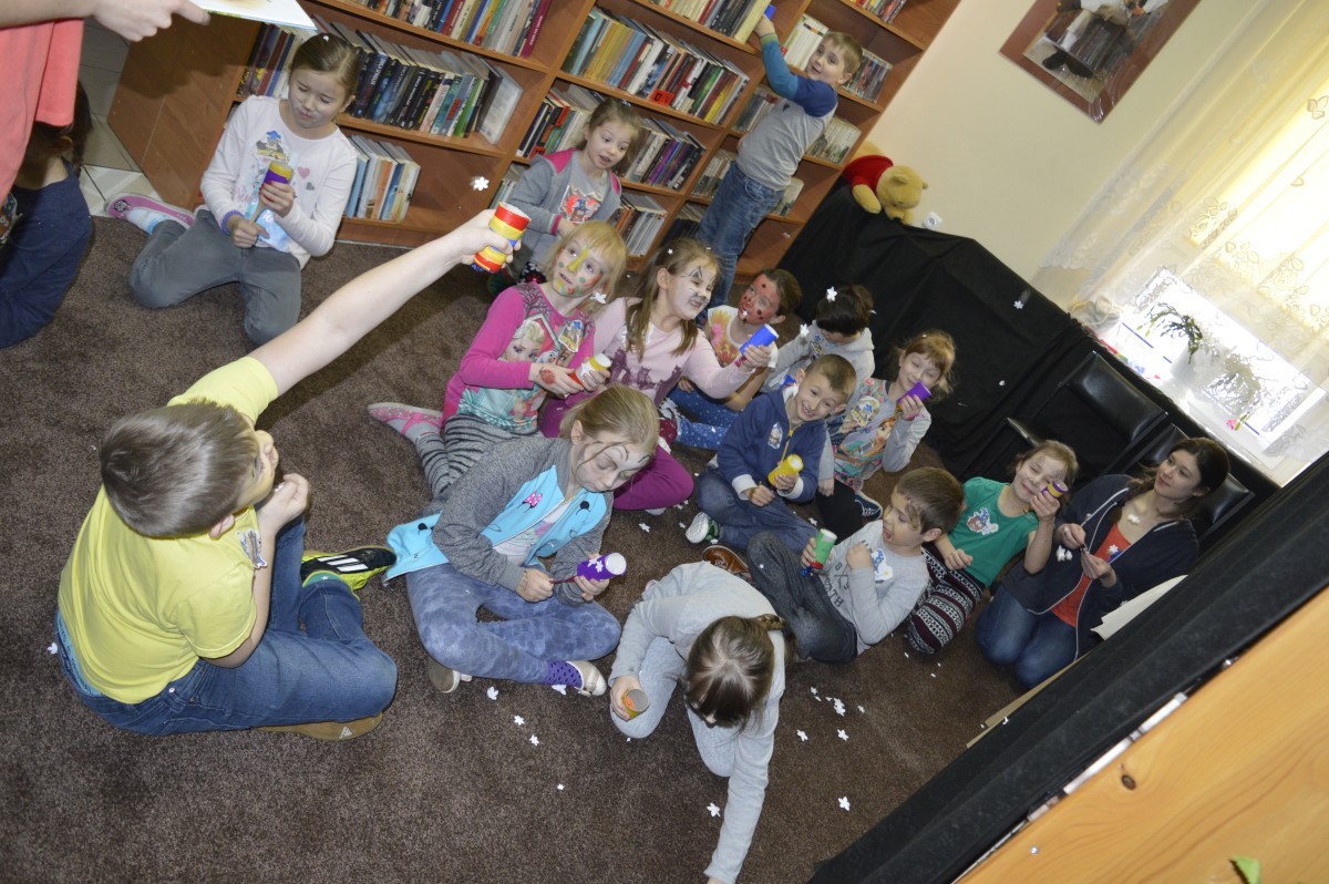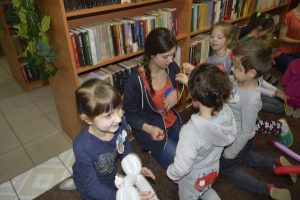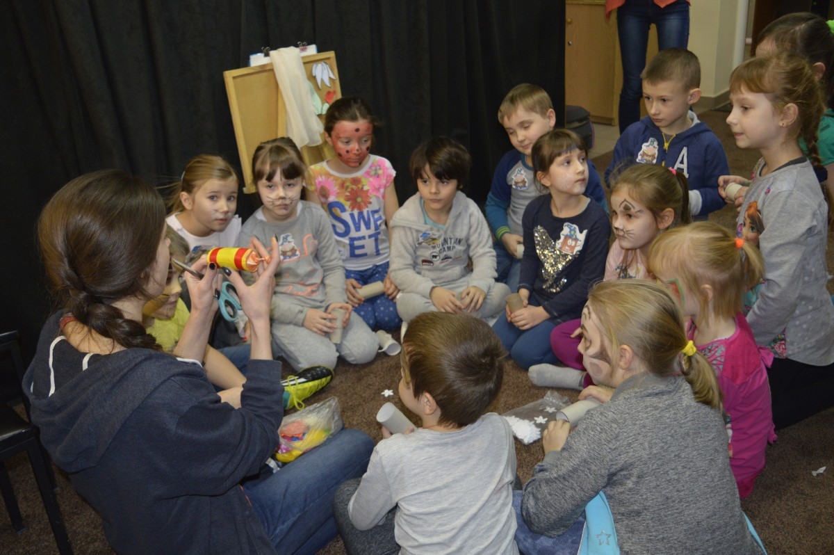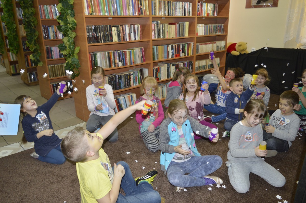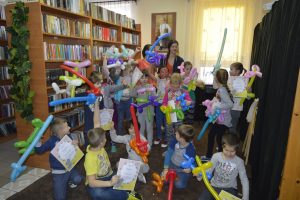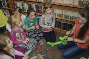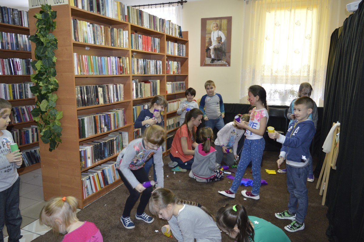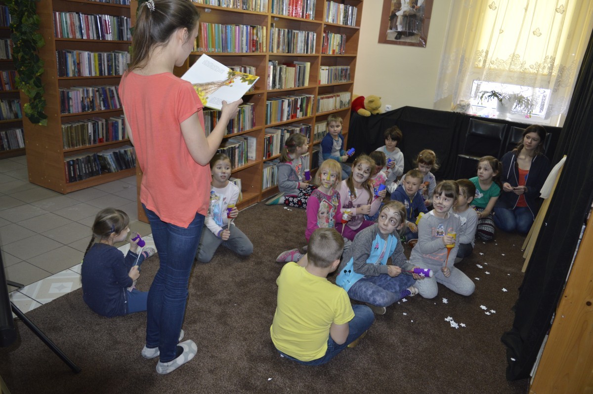 zajęcia odbywały się w bibliotece nie mogło zabraknąć czytanki dla najmłodszych. Tym razem dzieci wysłuchały historii o Kubusiu Puchatku. Nie zabrakło także balonowych zwierzaków i dyplomów za wspaniałą zabawę.
