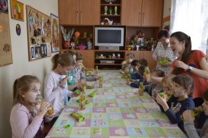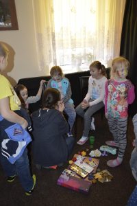 Potem szybka rozgrzewka dla małych superbohaterów, zmagania z niebieską siecią pająka, zabawa z Olafem wprost z Krainy Lodu, czy z kolorową wróżką. Po krótkiej przerwie śniadaniowej (soczki i ciasteczka były pyszne MNIAM!) przyszła pora na wykonanie specjalnych wyrzutni magicznego pyłu. A że
