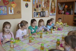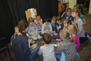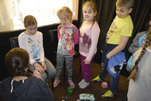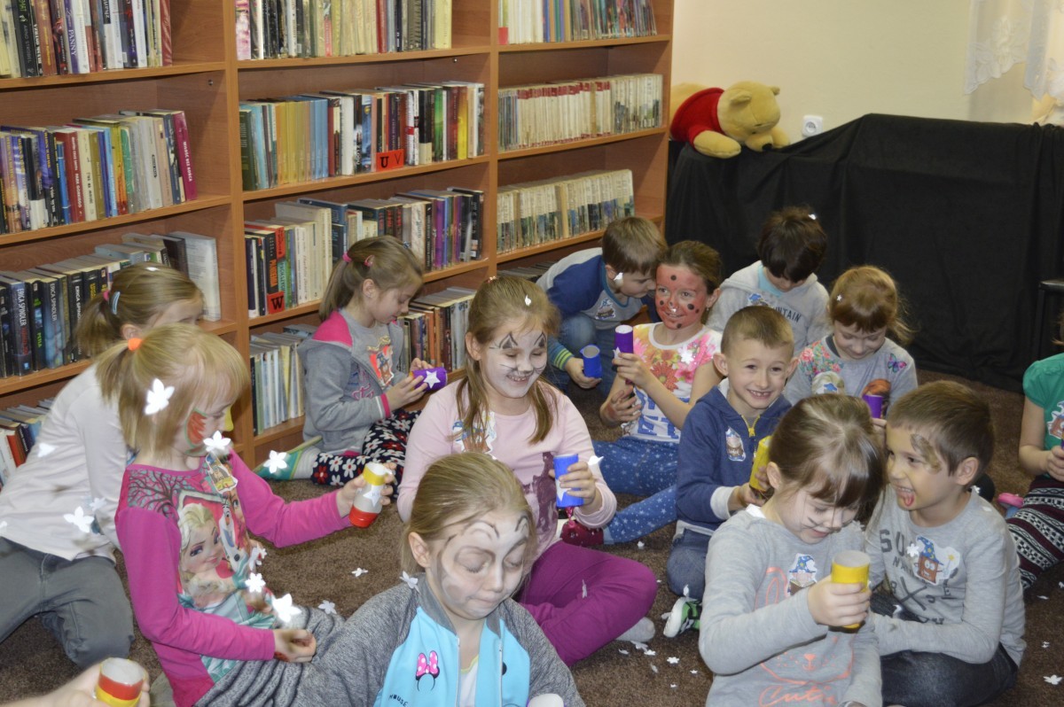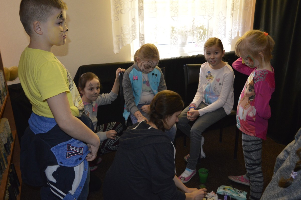 Grupa piętnaściorga dzieci z terenu Gminy Dobre zgromadziła się w Gminnej Bibliotece Publicznej aby wspólnie bawić się wraz z animatorkami. Wyspani i pełni energii uczestnicy, szybko zamienili się w kolorowe zwierzaki i postacie z bajek. Wszystko za sprawą pomalowanych buzi i farbkowych tatuaży.