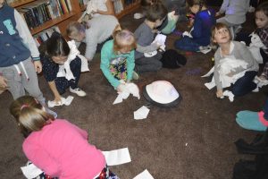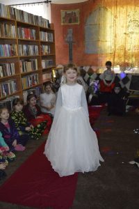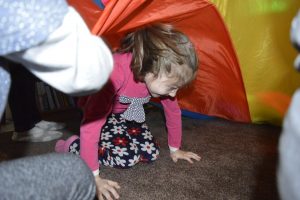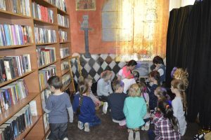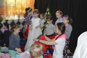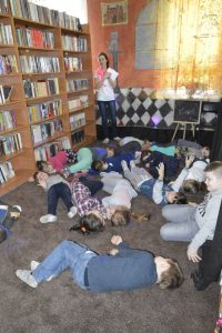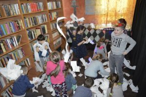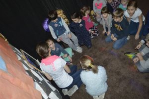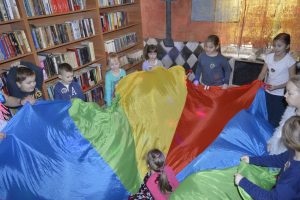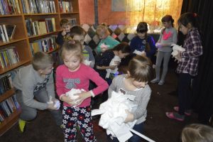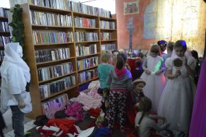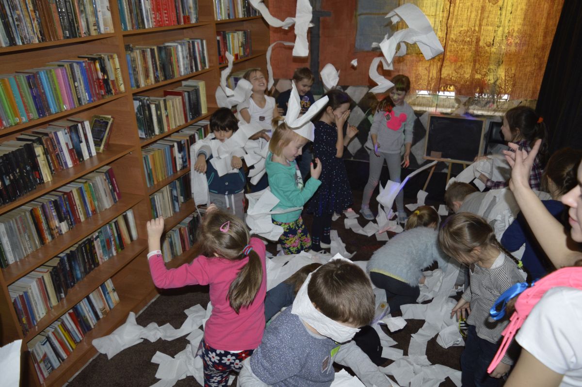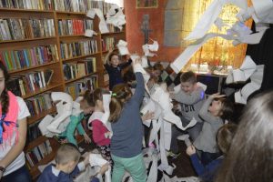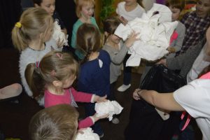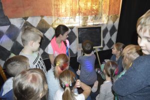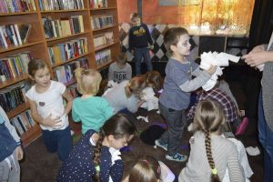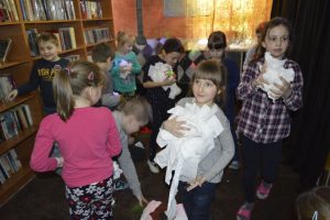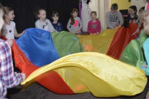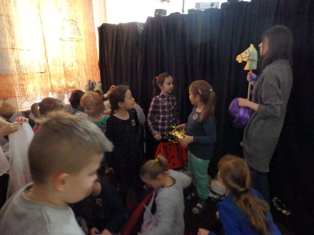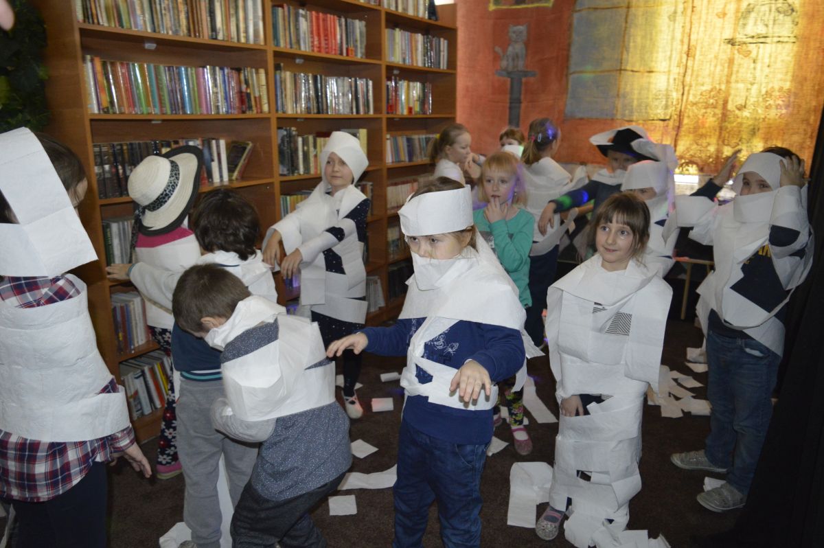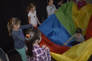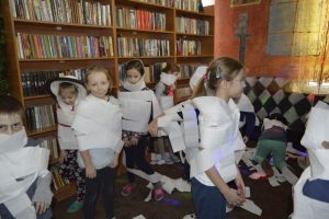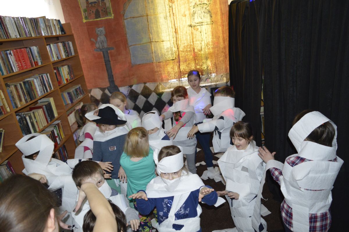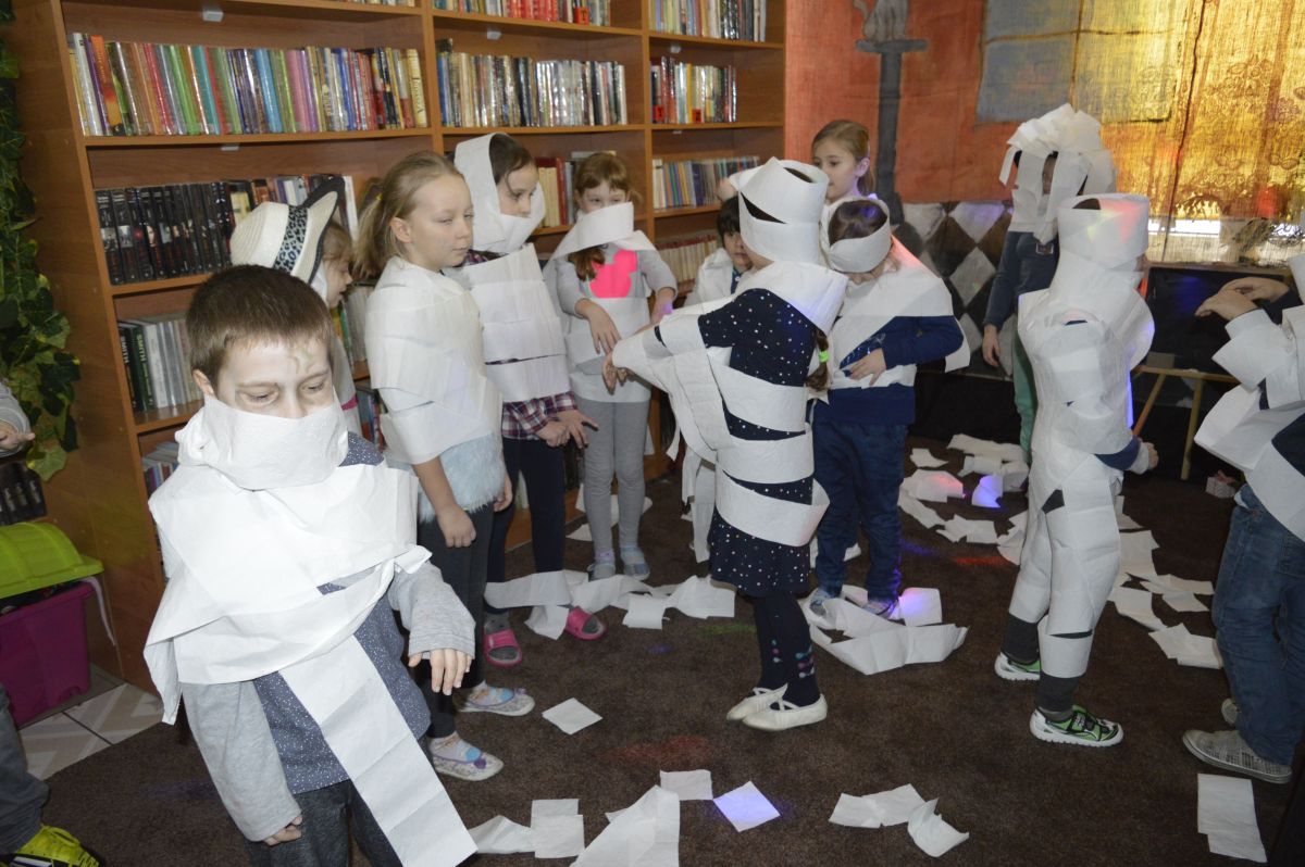 I gdzie ten kuferek? Pytali uczestnicy zajęć, które odbyły się w pierwszą środę ferii. Właśnie! Kuferek był tak wypełniony magicznymi strojami, że nawet nie było go widać! Cała zawartość czarodziejskiej skrzyni była do dyspozycji najmłodszych. Każdy mógł zamienić się w dowolną postać, by potem zaprezentować się w wielkim pokazie bajkowych stylizacji. Były księżniczki, panny młode, kopciuszek, królowa, wilk, duch i inne potwory. Ale to nie koniec przemian, maluchy jeszcze wielokrotnie wcielały się w różnych bohaterów podczas kalambur, czy bajkowych zgadywanek. Na koniec nasze grzeczne dzieci przemieniły się w straszliwe, najprawdziwsze zombie, ale spokojnie… tylko na chwilkę. Ostatecznie wszyscy uczestnicy powrócili do swojej uśmiechniętej, dziecięcej postaci.