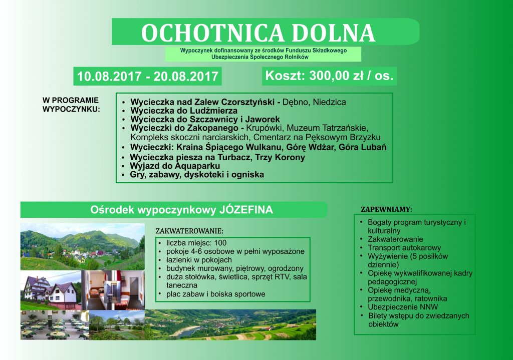 Informujemy również, że istnieje może możliwość uczestnictwa w koloni dzieci, których rodzice nie są ubezpieczeni w KRUS za pełną odpłatnością tj. 1050,00 zł.