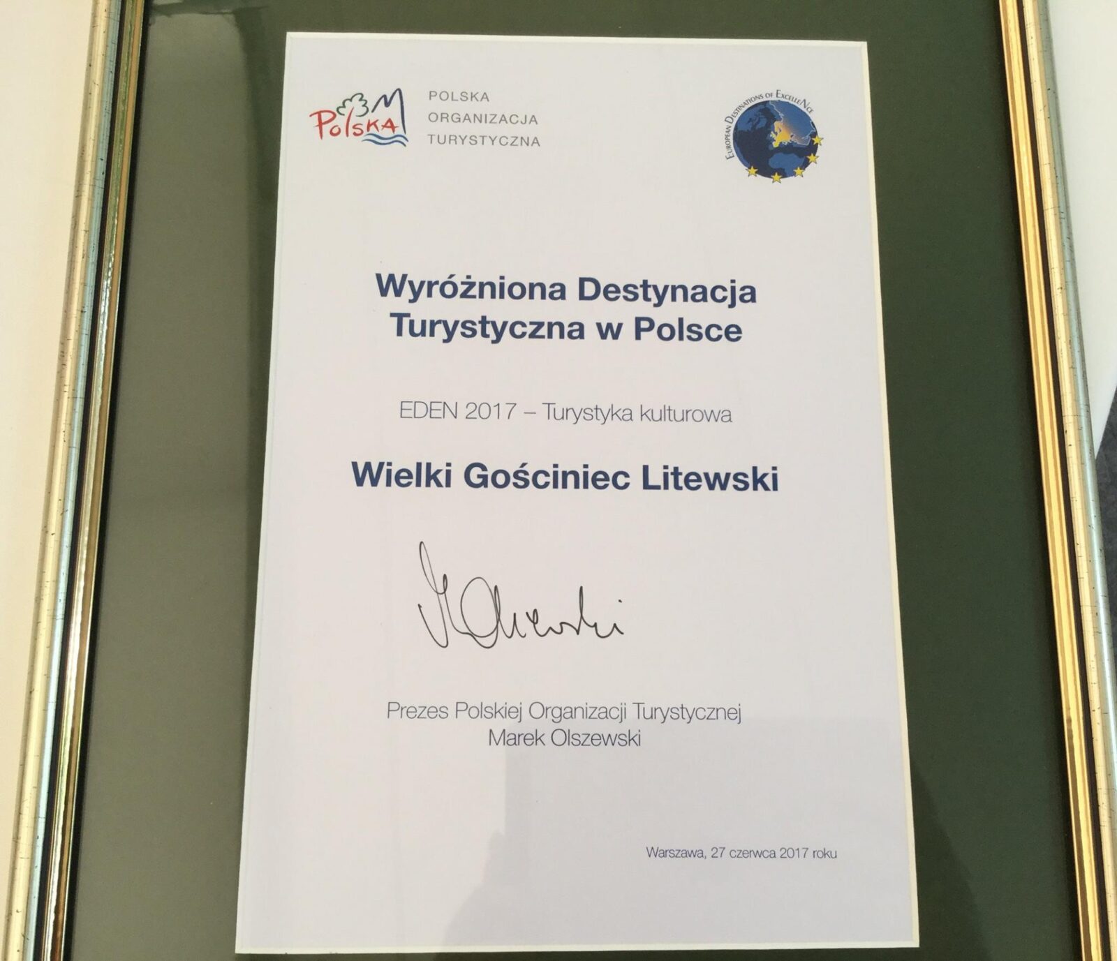 Szlak Wielki Gościniec Litewski wyróżniony w konkursie EDEN (European Destinations of Excellence) 2017.
