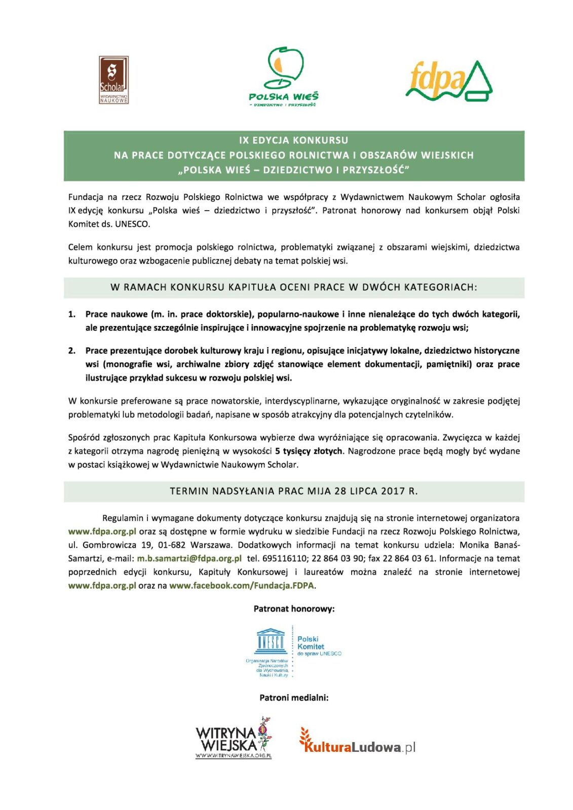 Karta zgłoszeniowa konkursu Polska Wieś IX