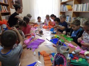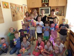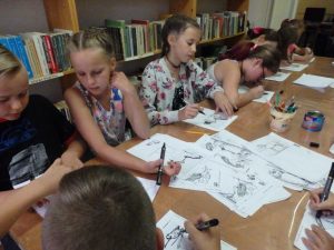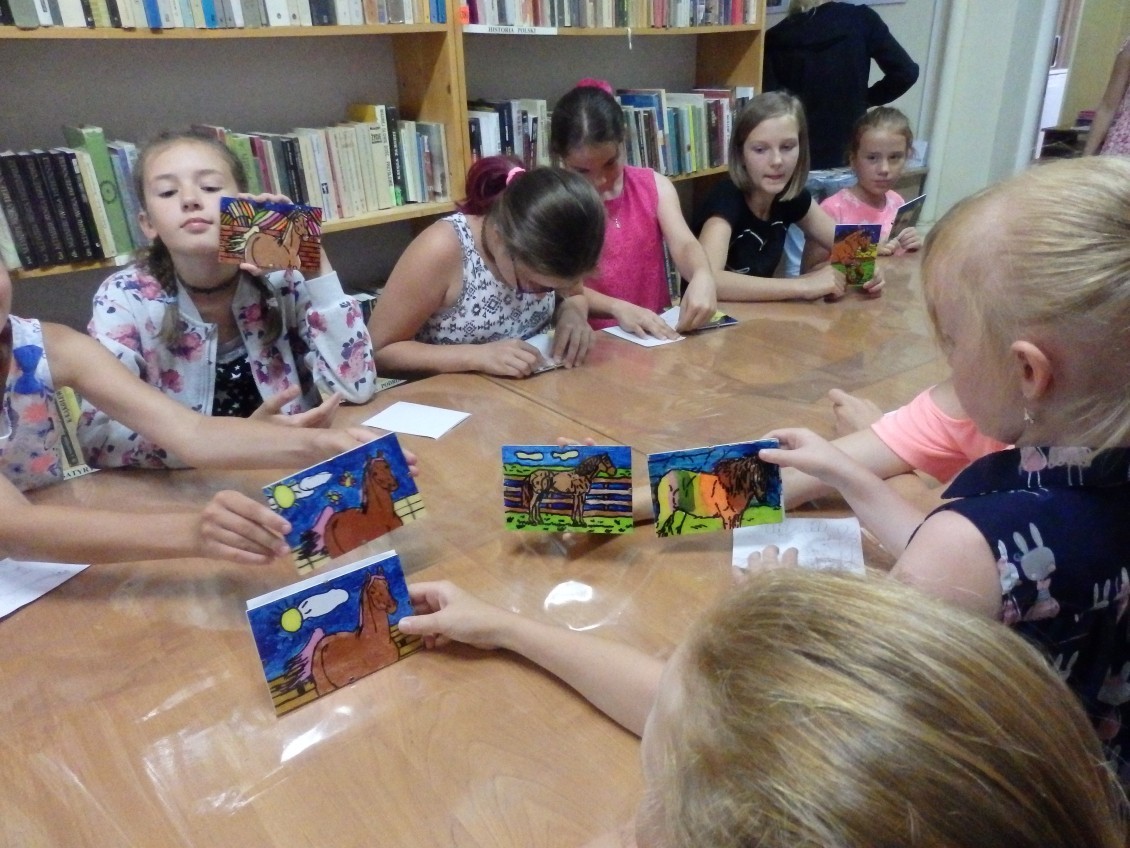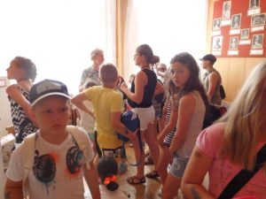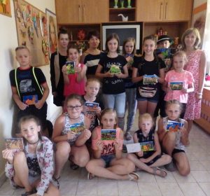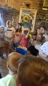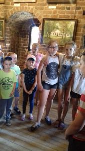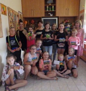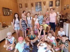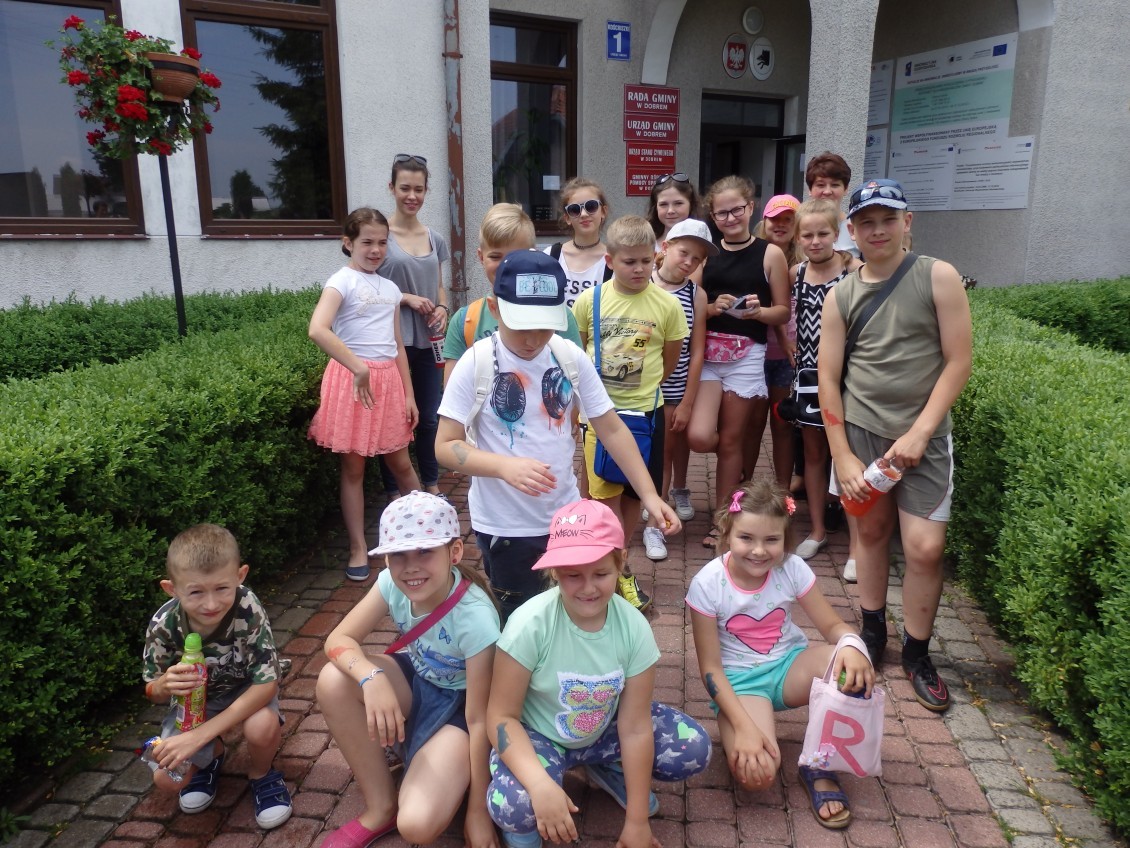 Tradycyjnie, także w 2017 roku Gminny Ośrodek Kultury na początku wakacji zorganizował zajęcia dla dzieci. W programie był wyjazd do kina, wycieczka do zamku w Liwie, warsztaty rękodzielnicze – w tym roku uczestnicy tworzyli przepiękne wizerunki koni na szkle. Młodsza grupa zrobiła także zwariowane kukiełki, a starsza miała czas na zabawy integracyjne. Ale to nie wszystko, nie można zapomnieć o „piżama party”, które naprawdę odbyło się wieczorową porą i oczywiście o wycieczce po Gminie Dobre. Pan organista opowiedział nam o tym jak działają kościelne organy, mogliśmy ich posłuchać i zobaczyć z bliska. Pani Jadwiga Grzęda, kustosz muzeum, opowiedziała o rynku w Dobrem i oczywiście o życiu i twórczości Konstantego Laszczki . Byliśmy także na cmentarzu, ale chyba najciekawsza okazała się wizyta w urzędzie Gminy Dobre i rozmowa z Panem wójtem Tadeuszem Gałązką. Na koniec zmęczeni spacerowaniem uczestnicy zjedli przepyszną pizzę.
