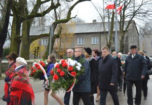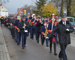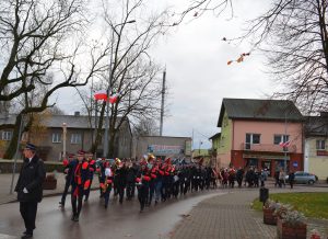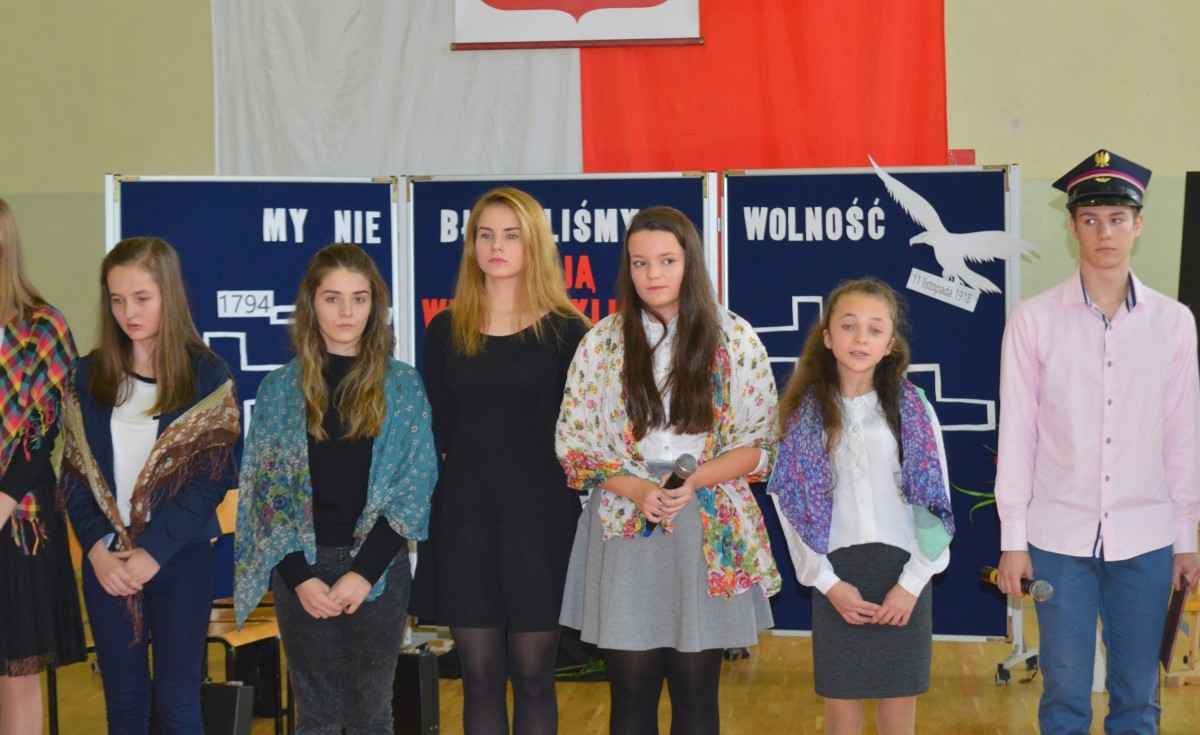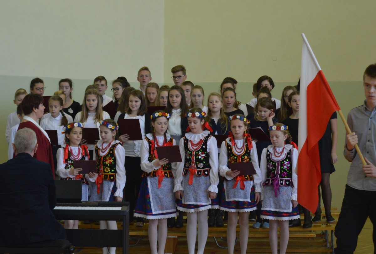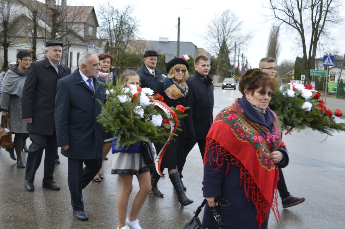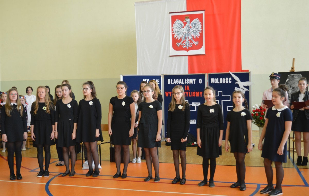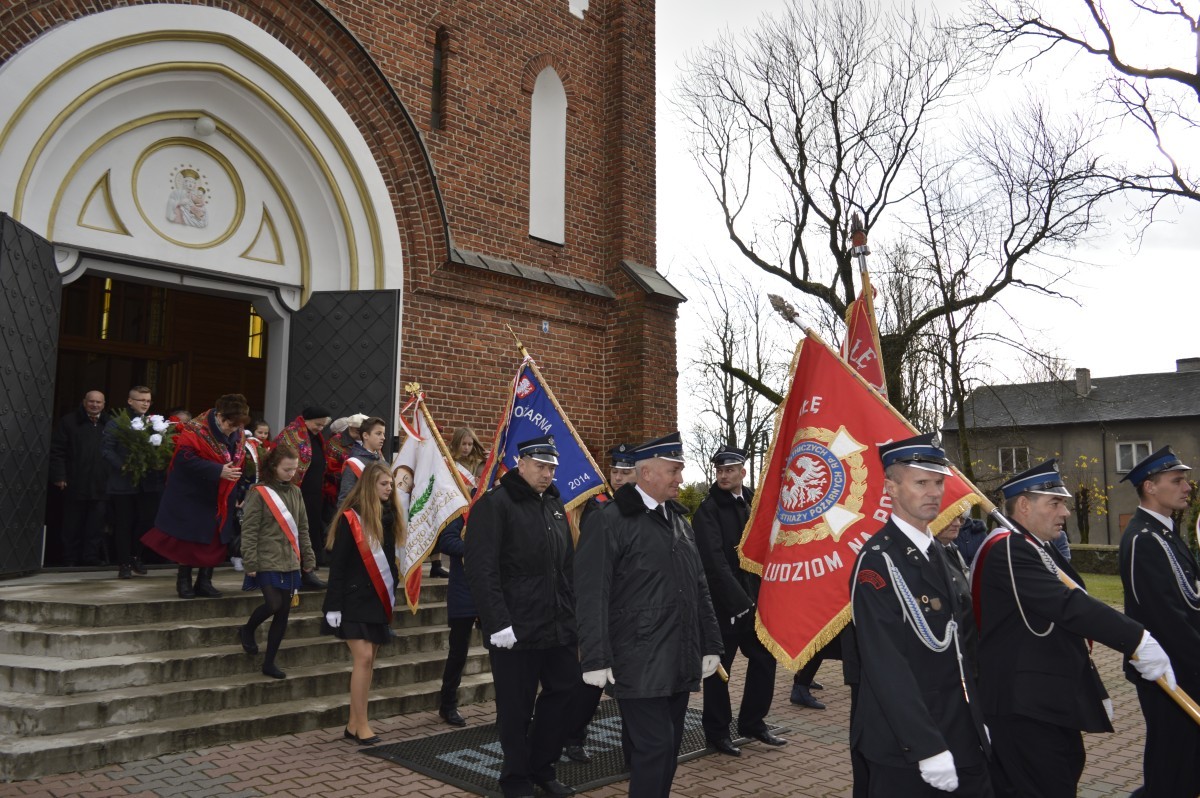 Uroczyste obchody rocznicy Odzyskania Niepodległości przez Polskę rozpoczęły się Mszą Świętą. Następnie Orkiestra Dęta poprowadziła korowód pod pomnik Marszałka Józefa Piłsudskiego, gdzie założono wiązanki i kwiaty. Wspólnie udaliśmy się na halę sportową w Szkole Podstawowej, gdzie uczniowie gimnazjum przygotowali uroczystą akademię. Nie zabrakło też śpiewu chóru kościelnego i szkolnego, orkiestry dętej, dzieci z koła wokalnego i teatralnego działającego przy Gminnym Ośrodku Kultury. Po przemówieniu pana Wójta przyszła pora, aby wręczyć odznaczenia nadane przez Ministra Kultury i Dziedzictwa Narodowego Rzeczpospolitej Polskiej mieszkańcom zasłużonym dla naszej Gminy, a byli to: p. Agnieszka Łyziak i p. Jan Czerniawski.