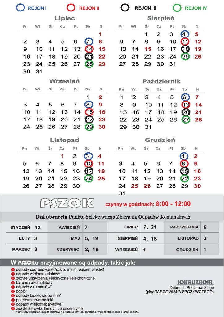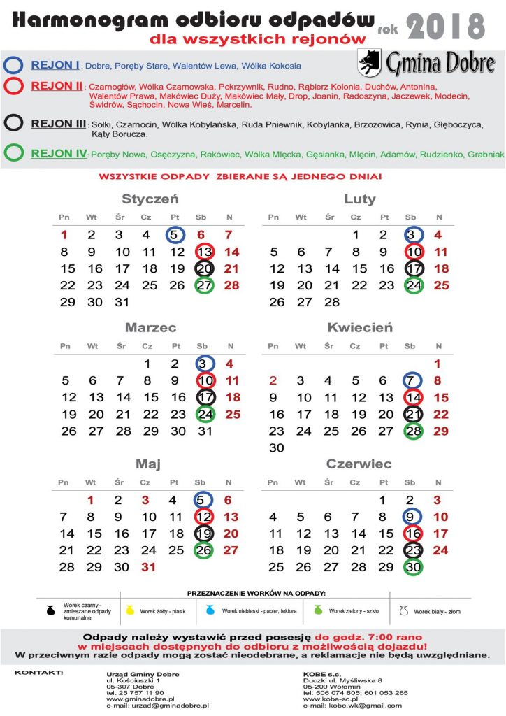 Harmonogramy odbioru odpadów na rok 2018 dostępne będą w UG Dobre, pok. nr 8 od 19 grudnia 2017 roku lub u Sołtysa.