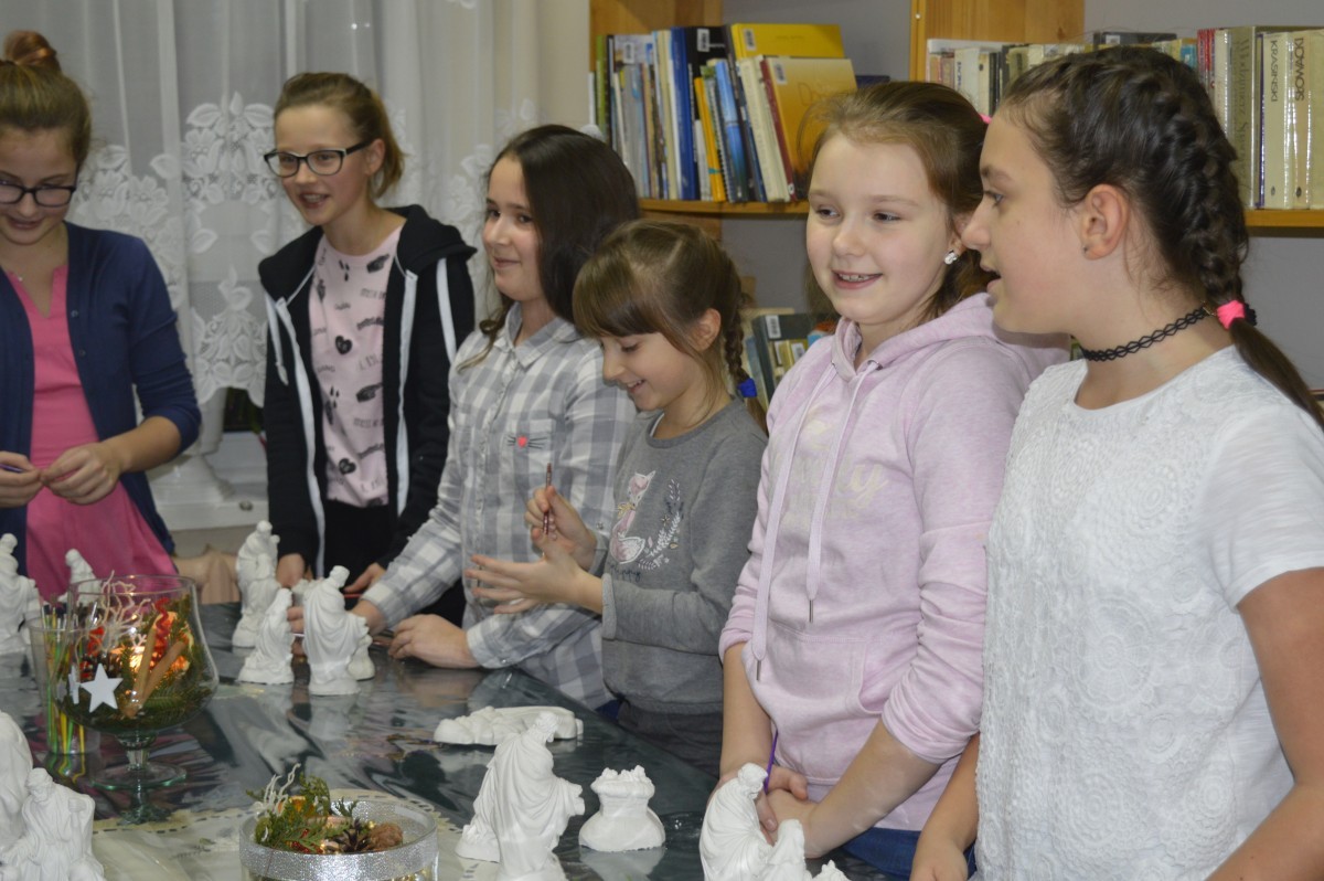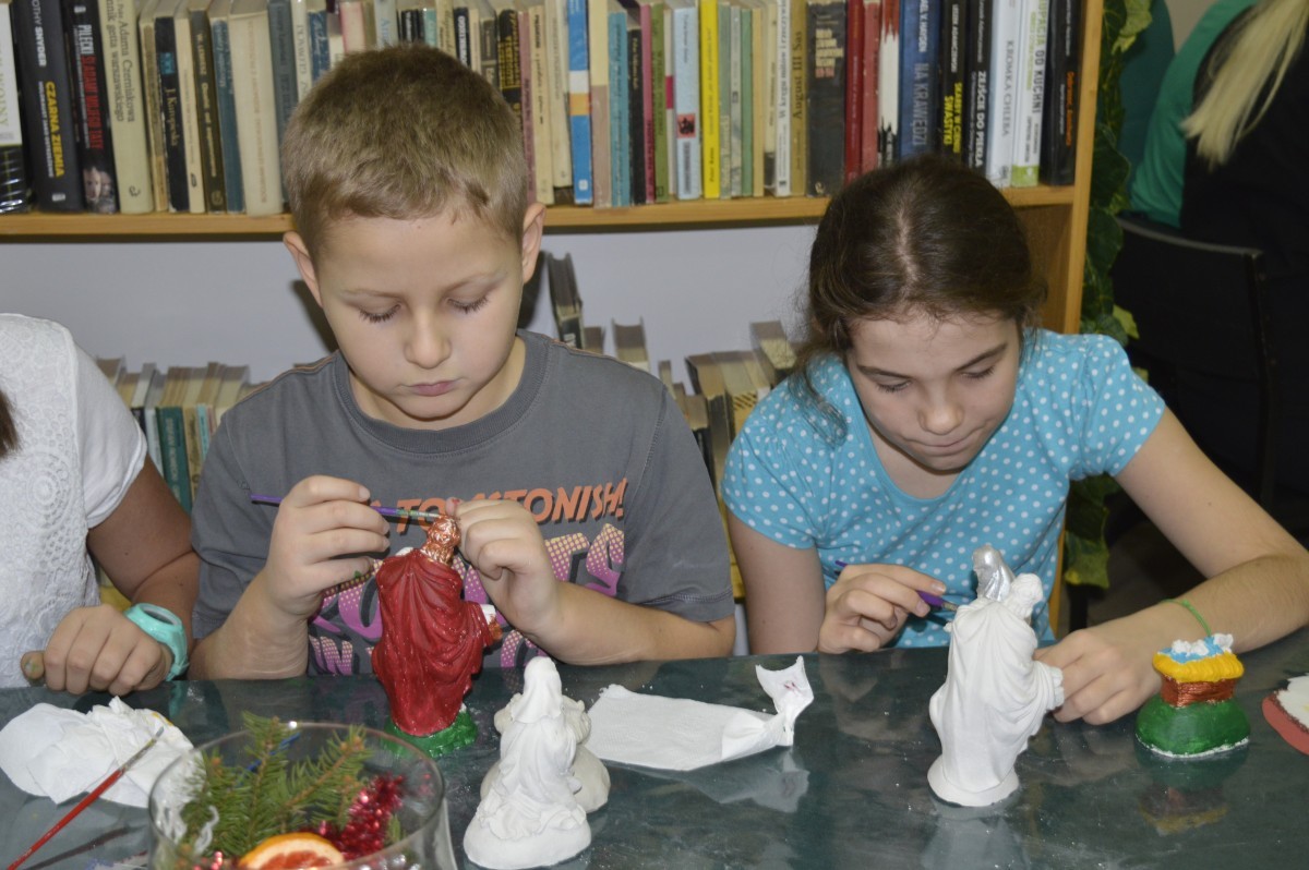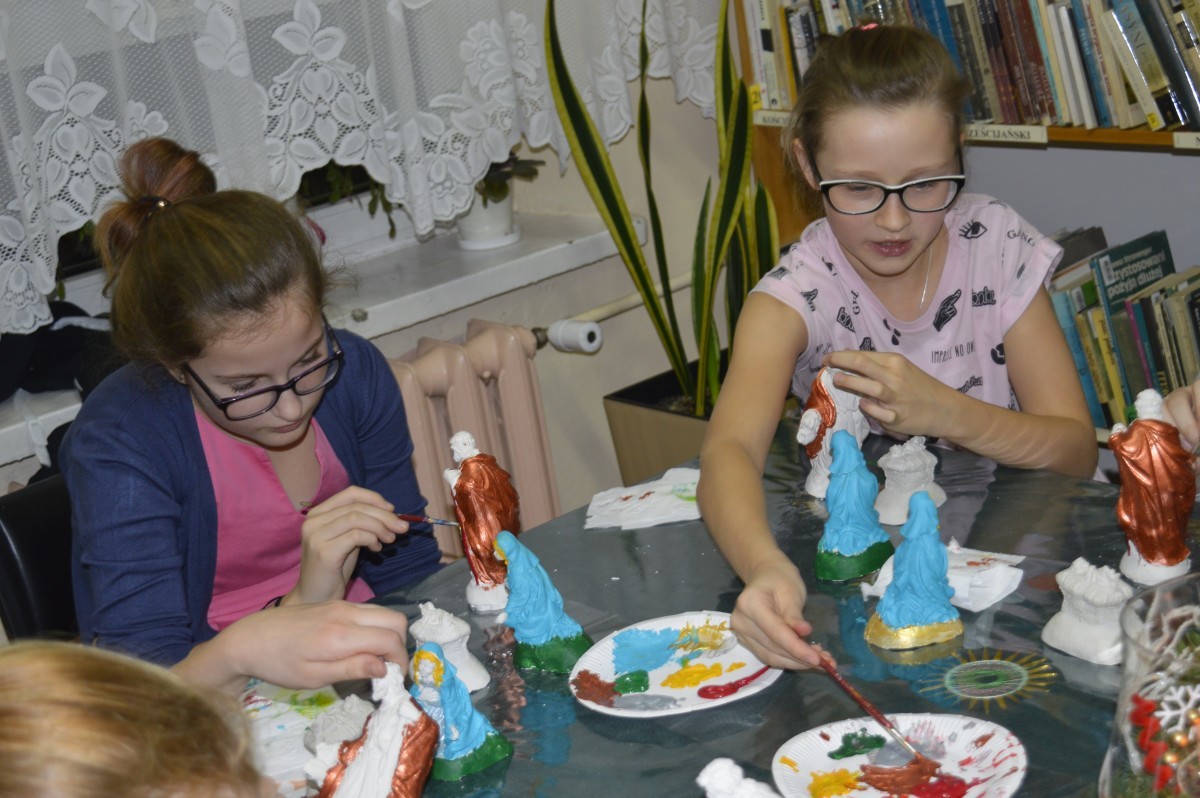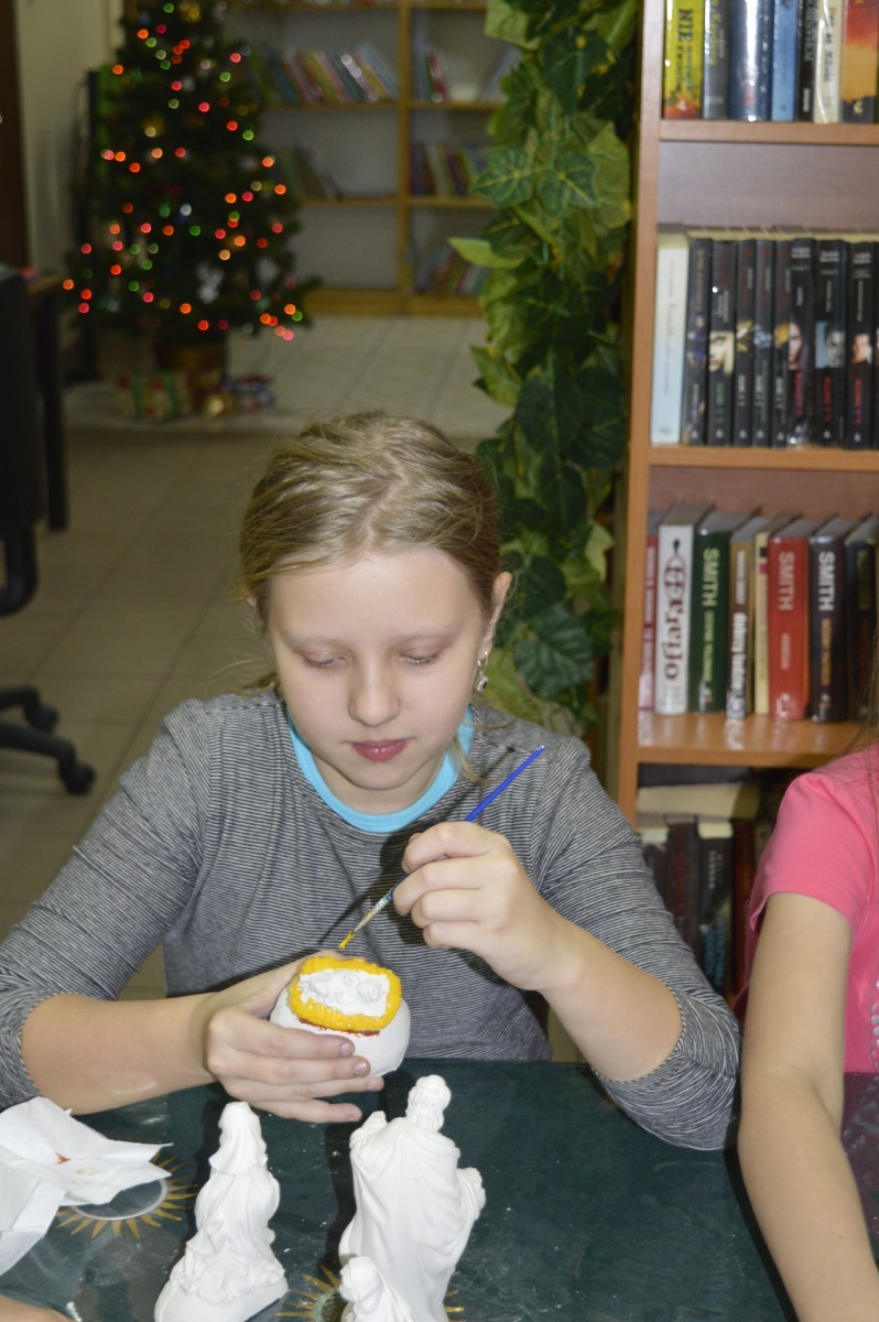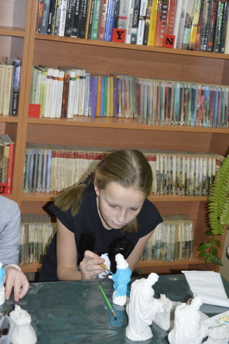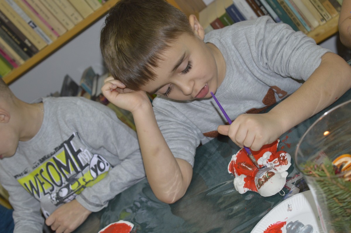 Dużo radości sprawiło dzieciom malowanie Bożonarodzeniowych figurek gipsowych. Podczas każdych zajęć dzieci śpiewały kolędy, co sprawiło, że wszyscy poczuliśmy ducha świąt. Po skończonych zajęciach dzieci mogły zabrać swoje prace do domu.
