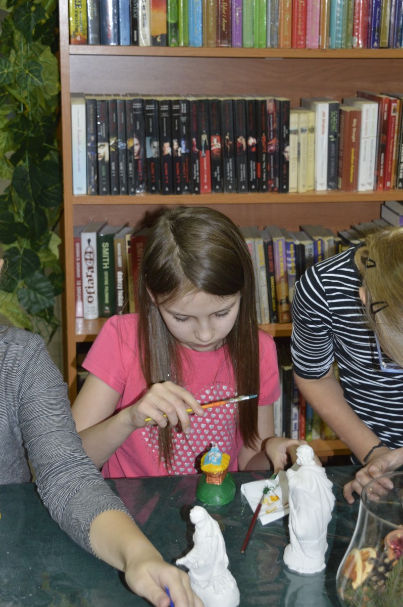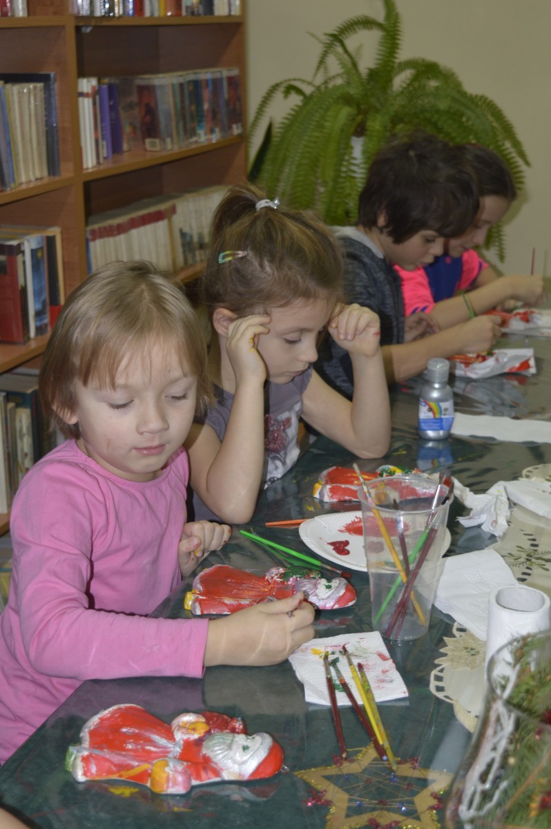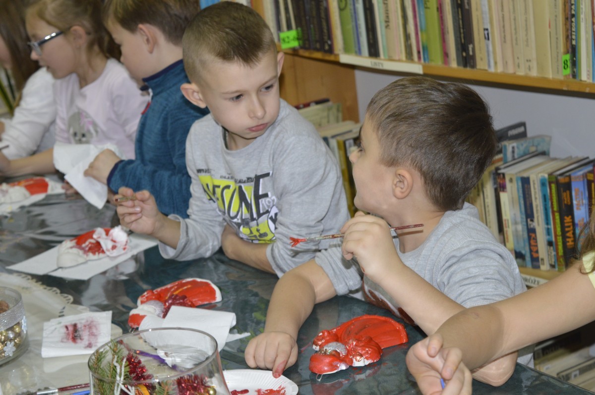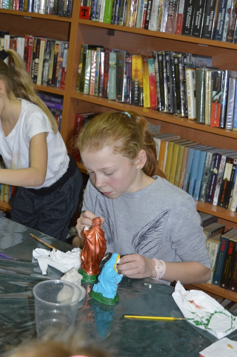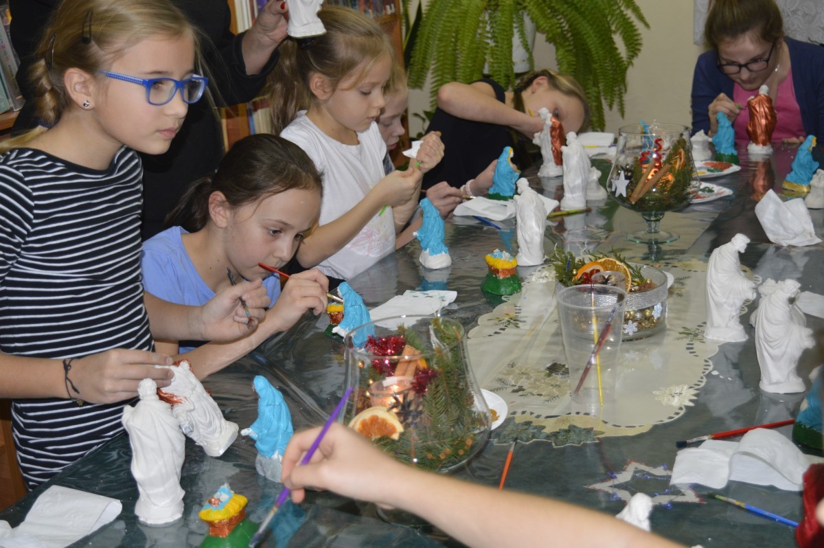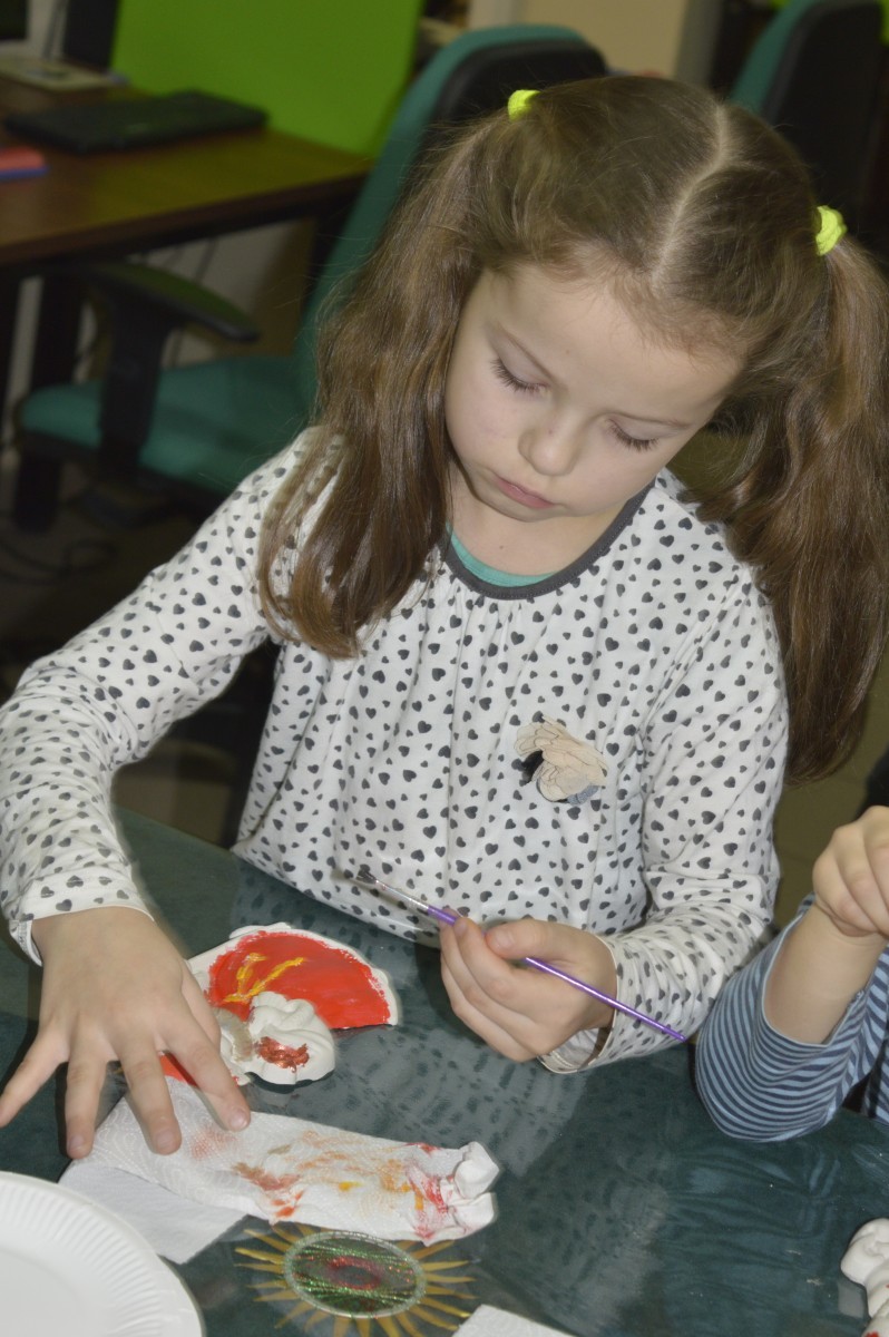 Dużo radości sprawiło dzieciom malowanie Bożonarodzeniowych figurek gipsowych. Podczas każdych zajęć dzieci śpiewały kolędy, co sprawiło, że wszyscy poczuliśmy ducha świąt. Po skończonych zajęciach dzieci mogły zabrać swoje prace do domu.