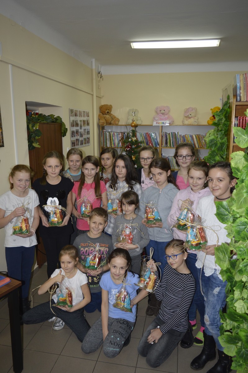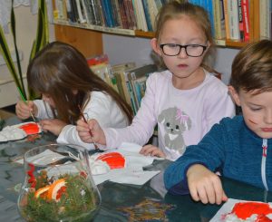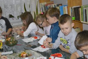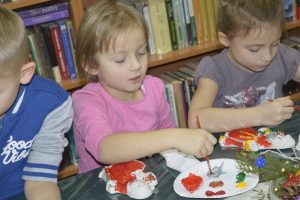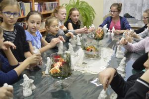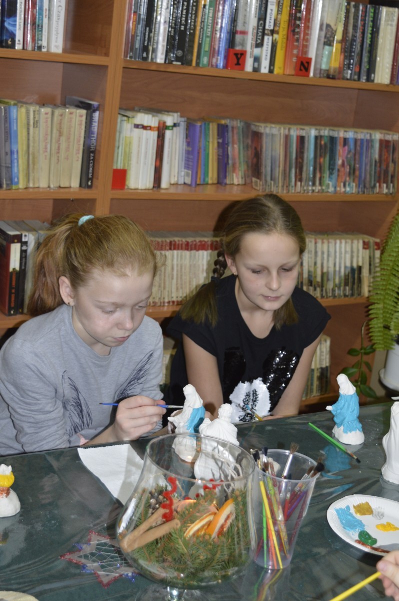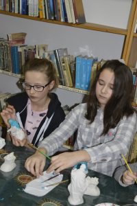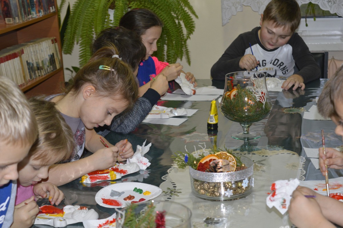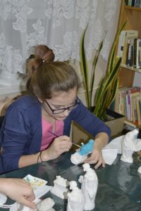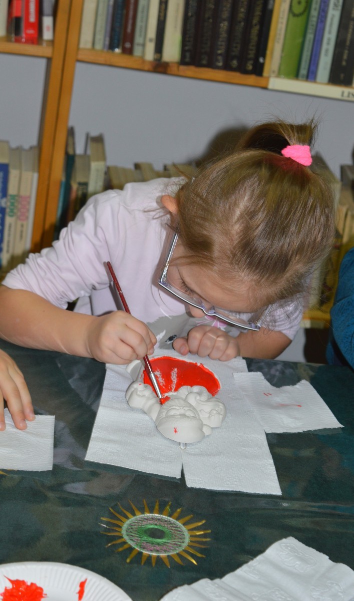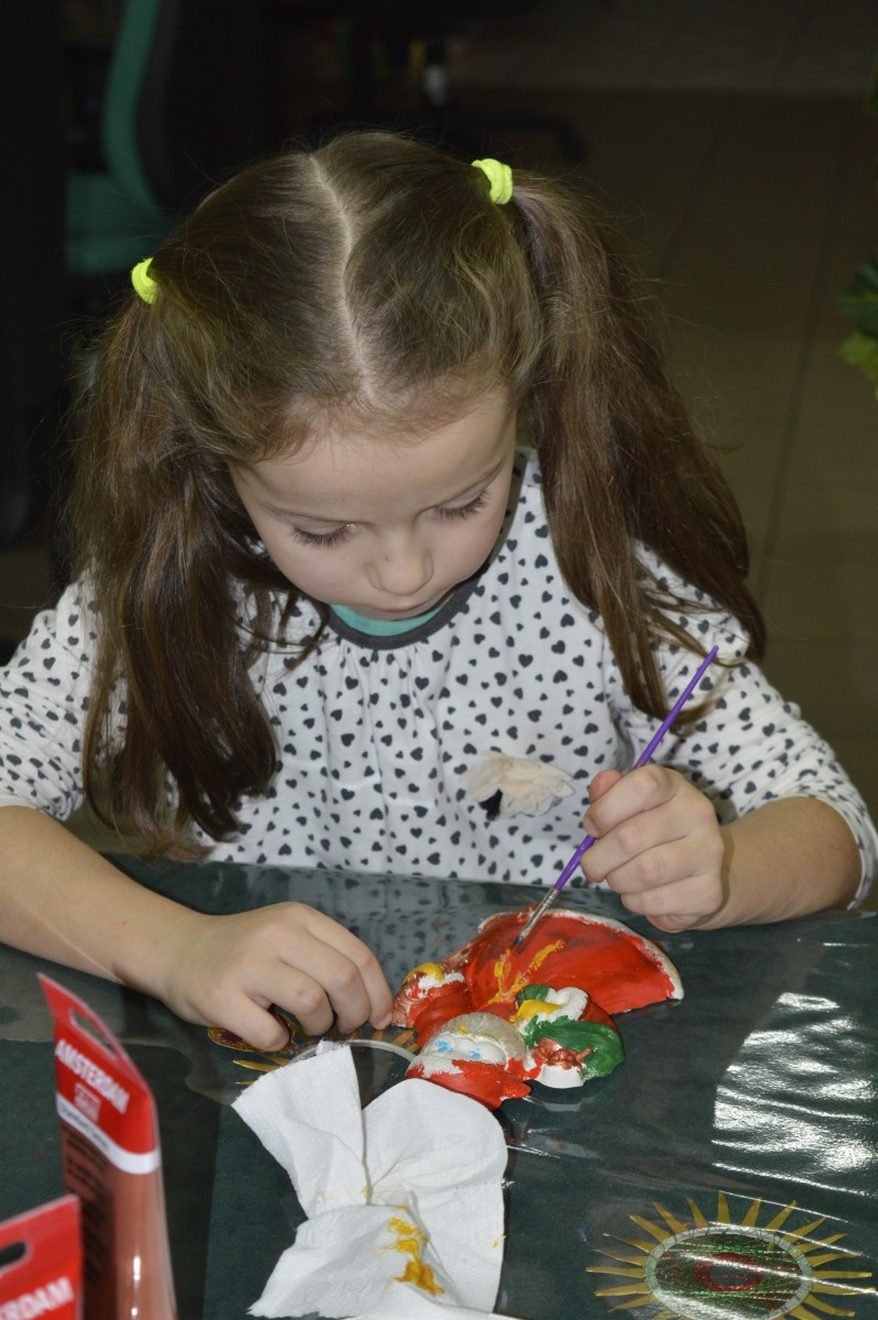 Dużo radości sprawiło dzieciom malowanie Bożonarodzeniowych figurek gipsowych. Podczas każdych zajęć dzieci śpiewały kolędy, co sprawiło, że wszyscy poczuliśmy ducha świąt. Po skończonych zajęciach dzieci mogły zabrać swoje prace do domu.
