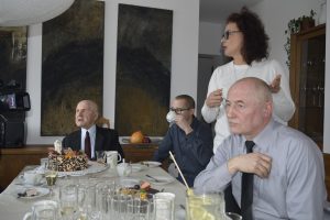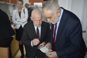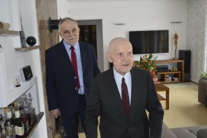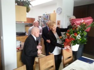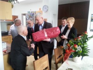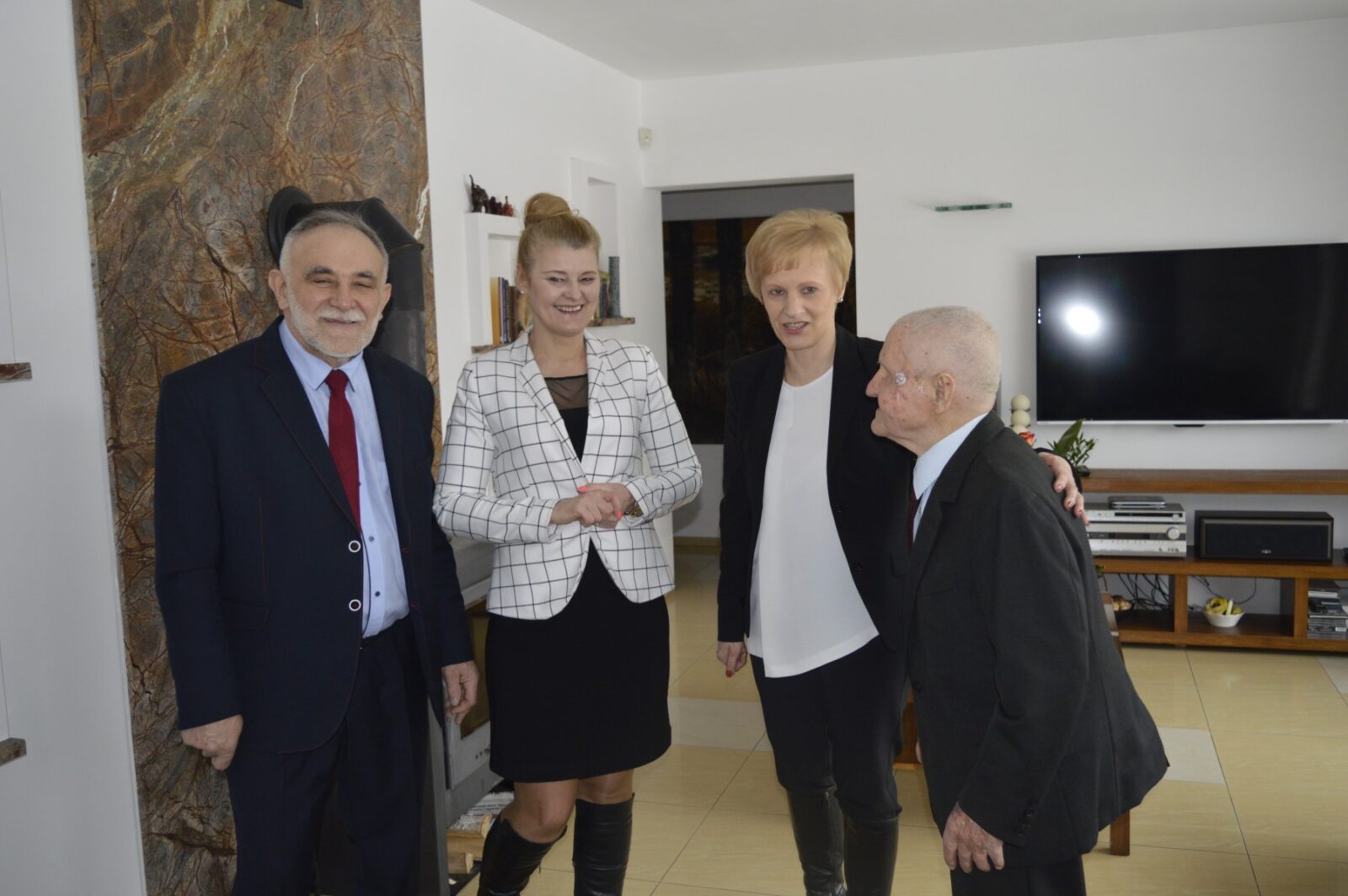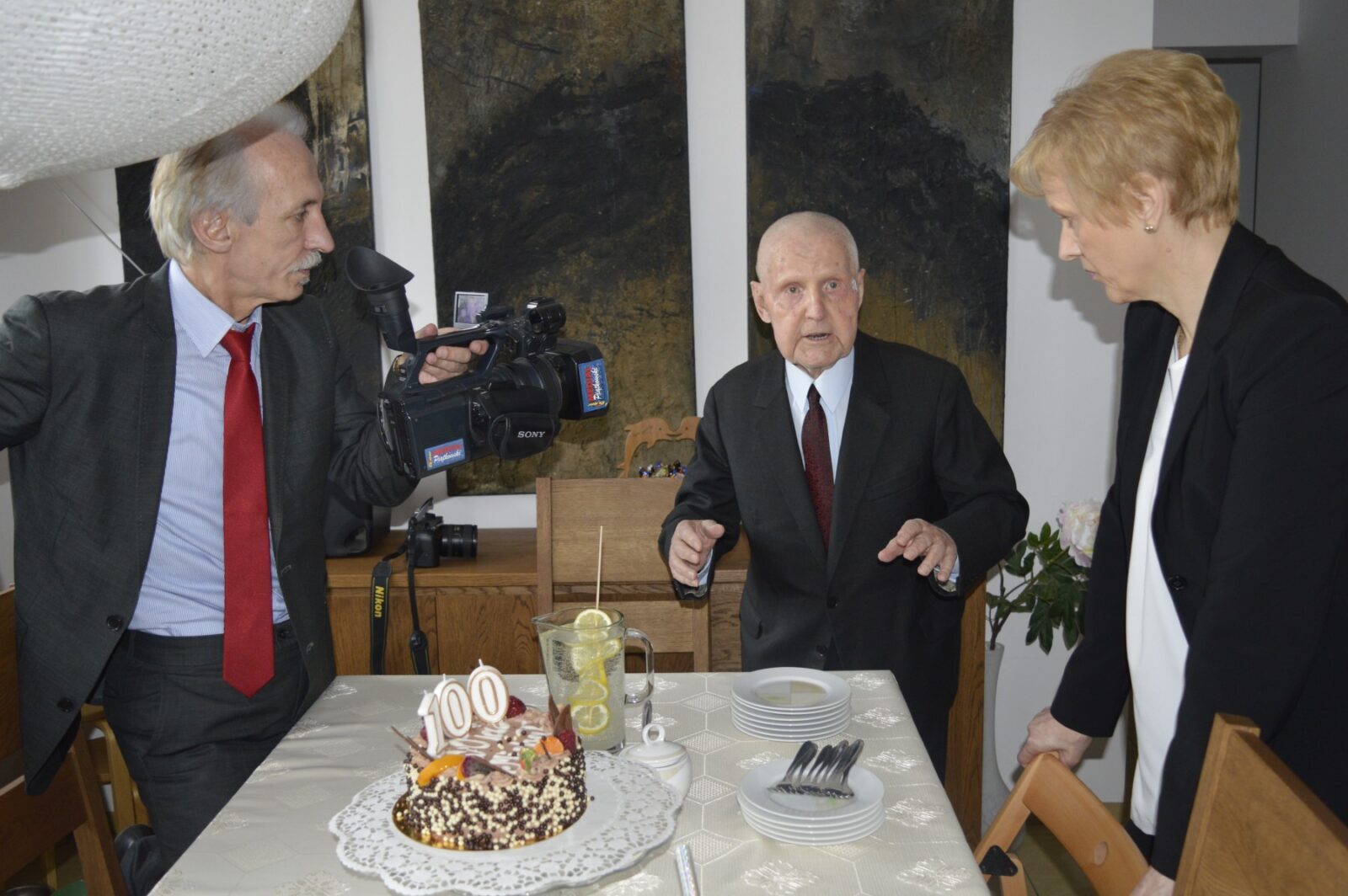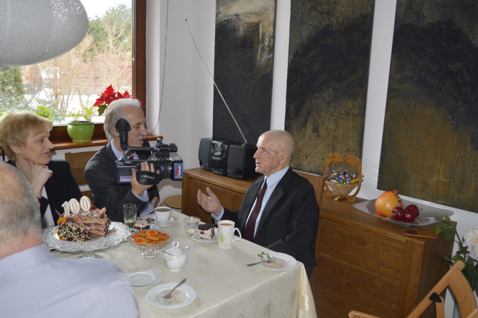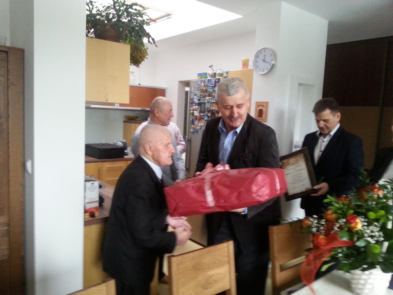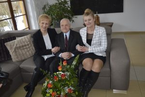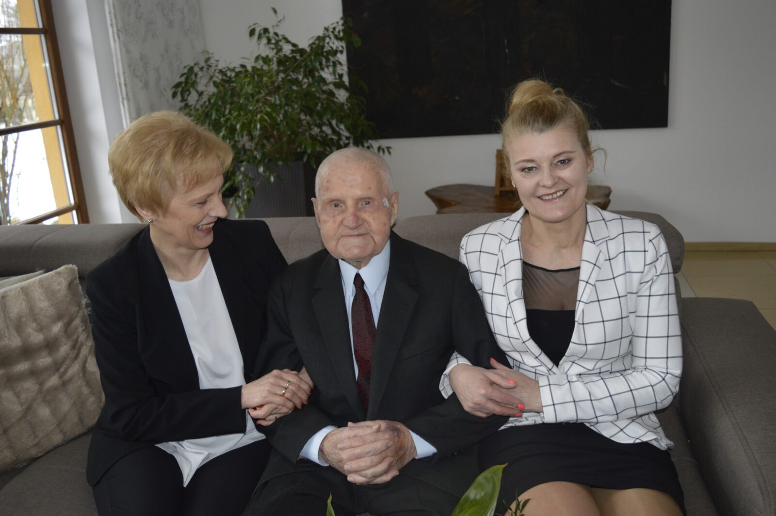 Z tej okazji w domu Dostojnego Jubilata odbyło się uroczyste spotkanie, na które przybyli niecodzienni goście: Wójt Gminy Dobre Tadeusz Gałązka, Przewodniczący Rady Gminy Waldemar Szymański, Zastępca Wójta Piotr Chmielewski, Sekretarz Urzędu Gminy Iwona Księżopolska i Kierownik USC Danuta Rawska. Obecni byli także członkowie rodziny Jubilata razem z nim mieszkający. Jako pierwszy życzenia Jubilatowi złożył Wójt Gminy. Do życzeń dołączyli się także pozostali goście, przekazując kwiaty, upominki oraz okolicznościowy tort. Kolejne gratulacje, życzenia i list gratulacyjny Jubilat otrzymał od Premiera Rządu RP Pana Mateusza Morawieckiego.