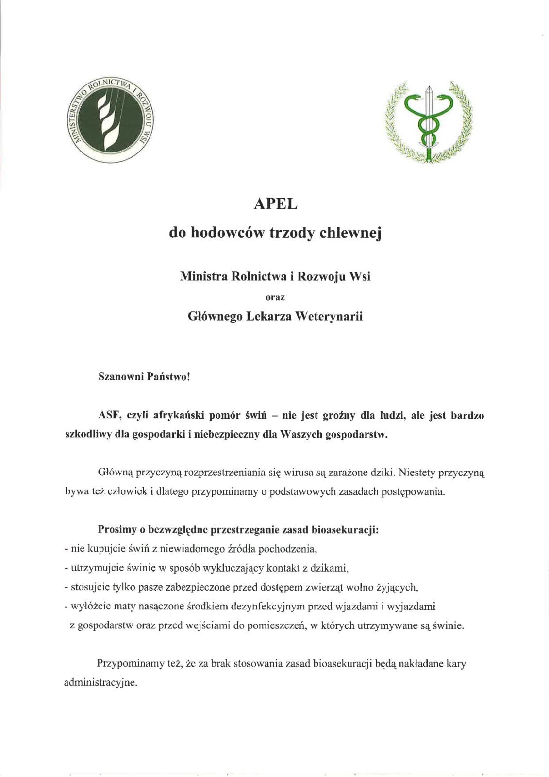 Apel dotyczący hodowców trzody chlewnej