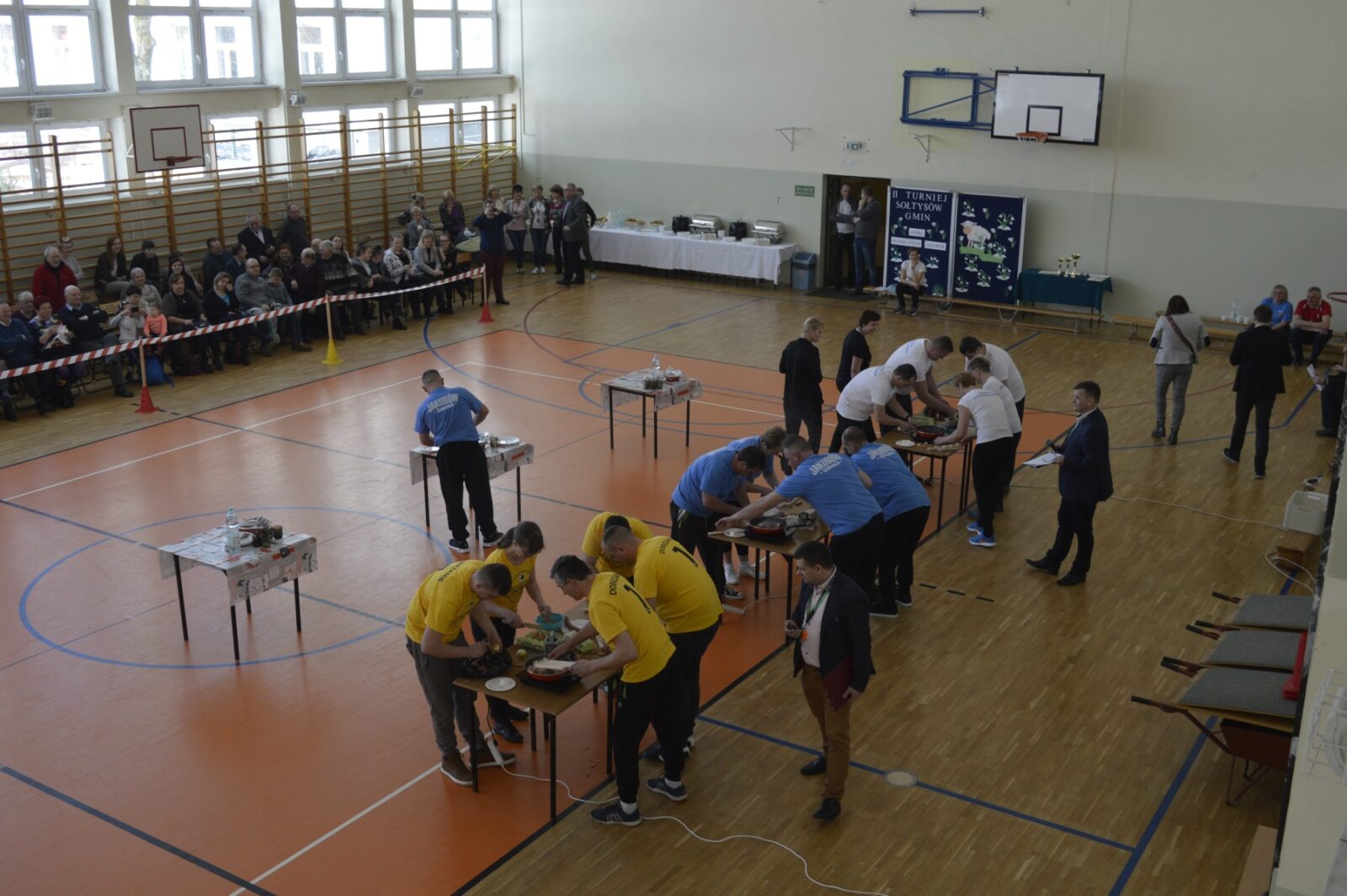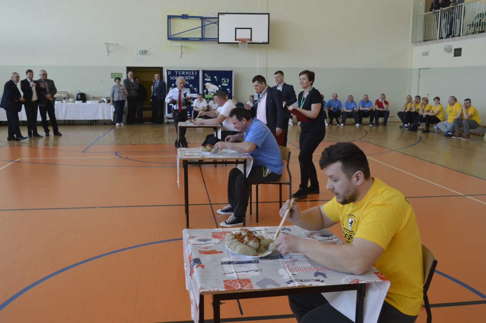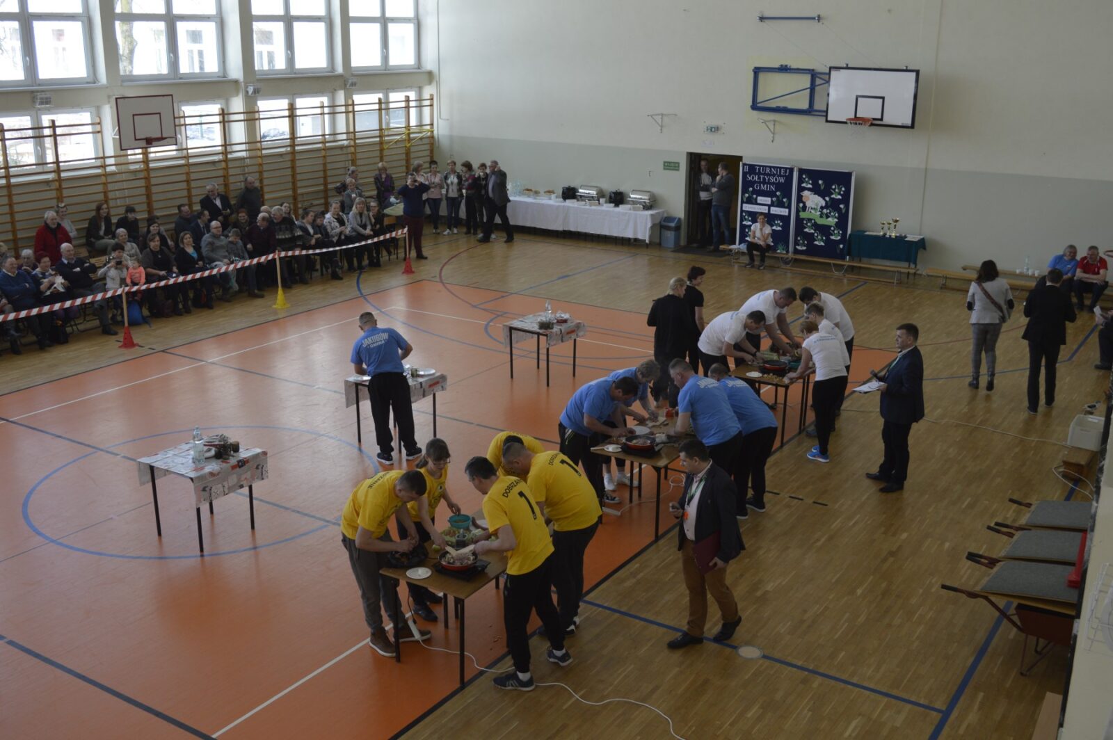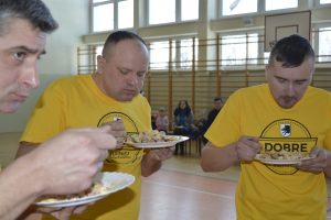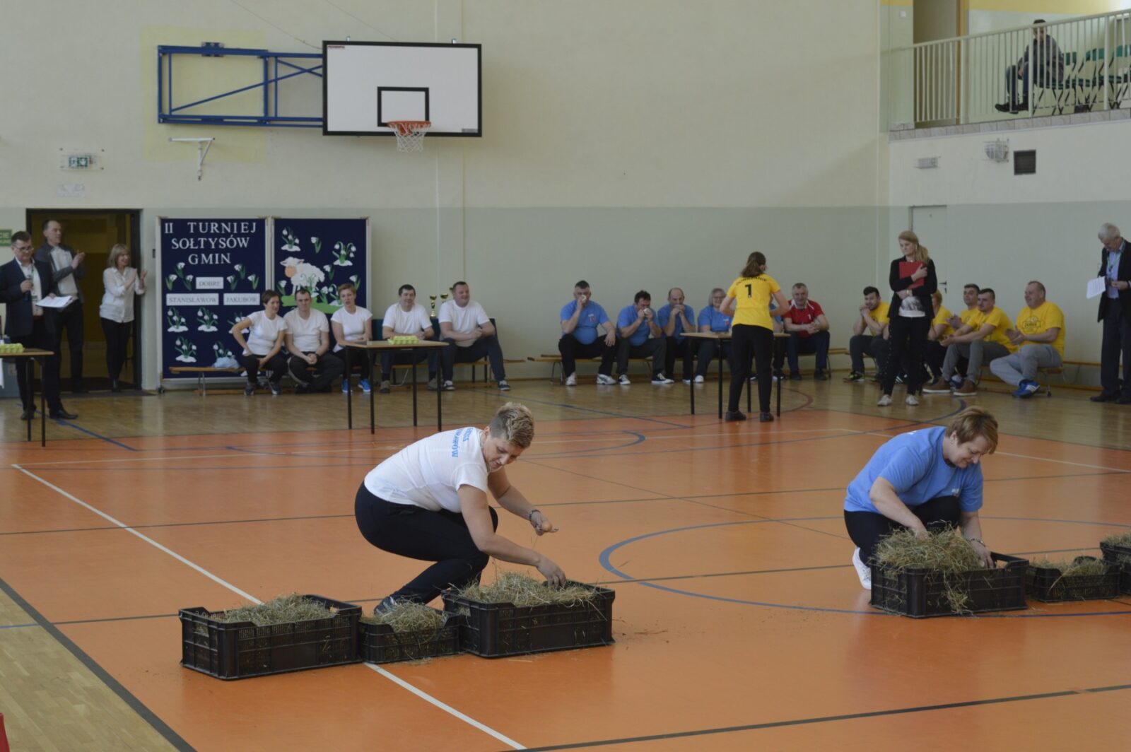 W dalszej części Turnieju sołtyski szukały jajek w sianie i przenosiły je na łyżkach do wytłaczanek, grabiły siano i zbierały go do worka , sołtysi doili krowę, obierali ziemniaki, przewożono sołtyskę w taczce pomiędzy pachołkami. W dwóch konkurencjach sołtysi mieli możliwość popisania się zdolnościami kulinarnymi: w pierwszej z nich przygotowanie jajecznicy i jej spożycie , a w drugiej zjedzenie największej ilości byków z mięsem i skwarkami. Te ostatnie specjały przygotowały super Panie kucharki ze stołówki szkolnej. Wszyscy uczestnicy Turnieju , po jego zakończeniu mieli możliwość skosztowania wspaniałości kulinarnych w postaci grochówki i kiełbasy suto okrytej smażoną cebulą.