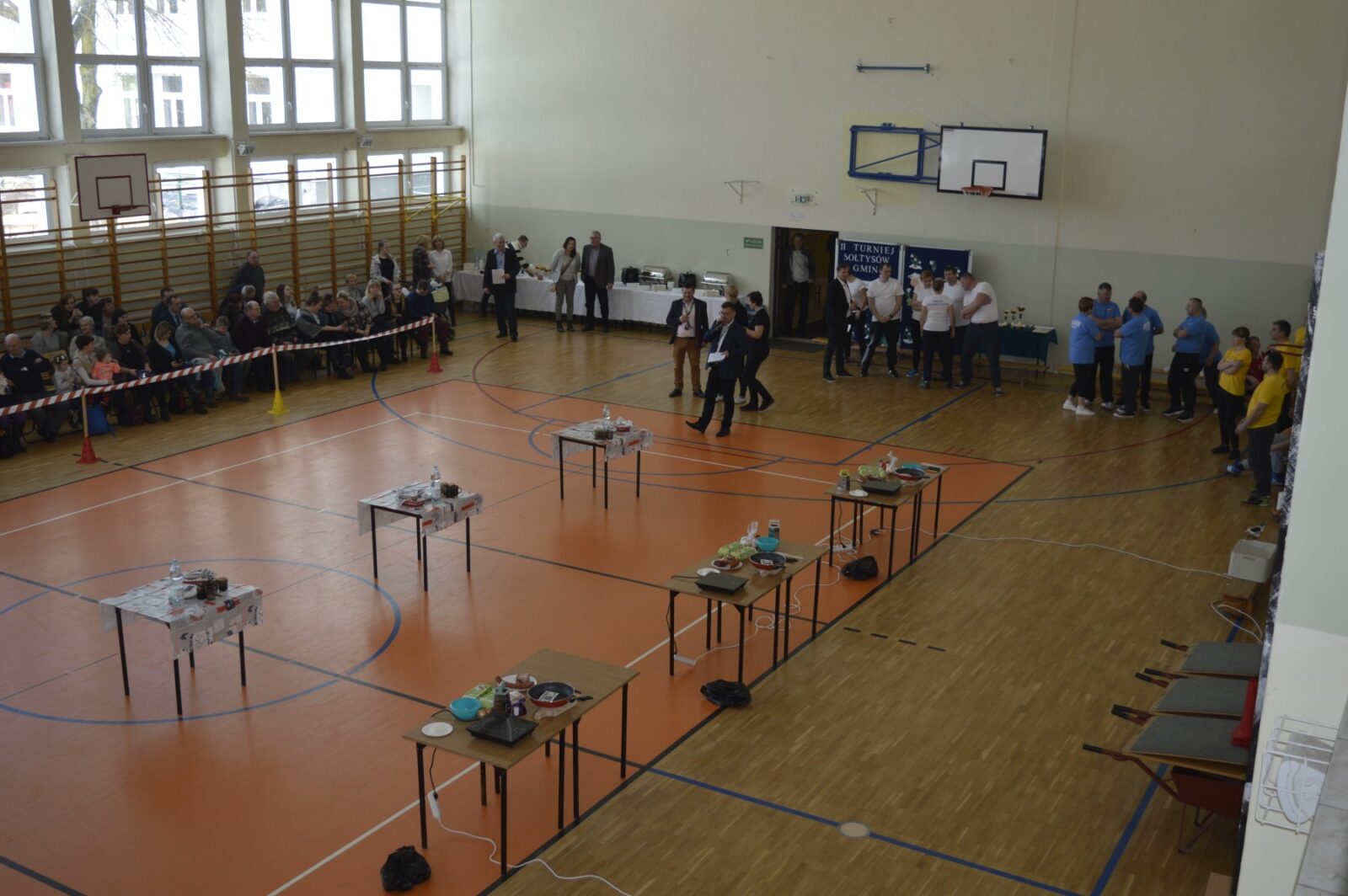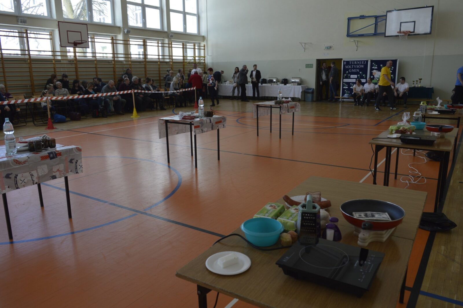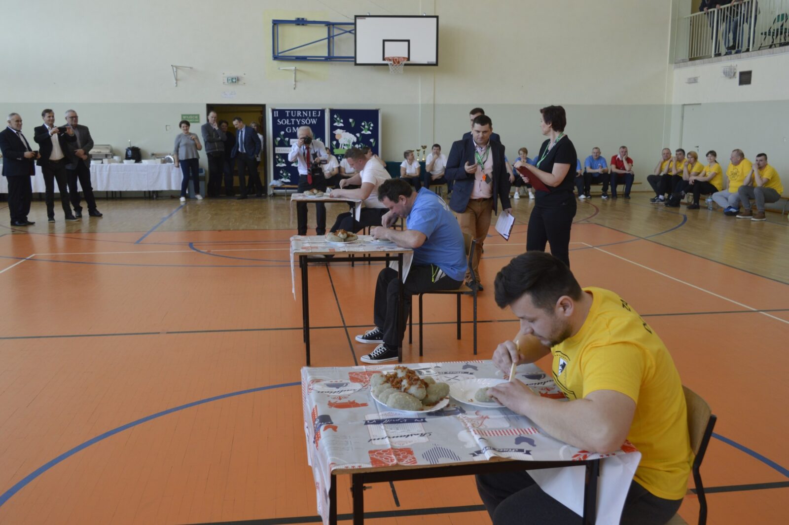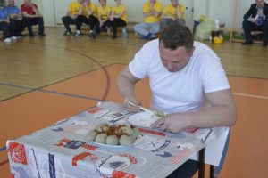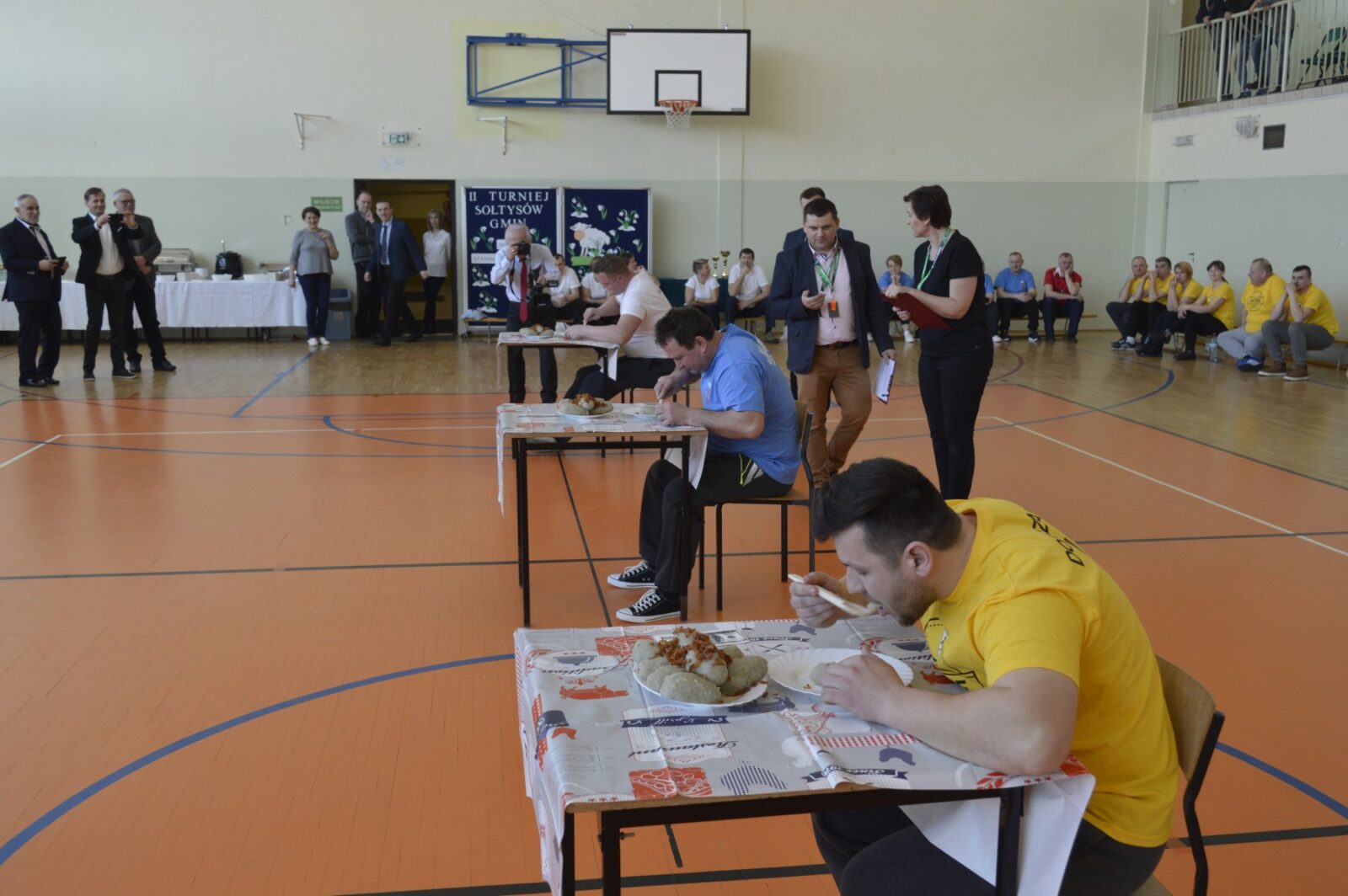 W dalszej części Turnieju sołtyski szukały jajek w sianie i przenosiły je na łyżkach do wytłaczanek, grabiły siano i zbierały go do worka , sołtysi doili krowę, obierali ziemniaki, przewożono sołtyskę w taczce pomiędzy pachołkami. W dwóch konkurencjach sołtysi mieli możliwość popisania się zdolnościami kulinarnymi: w pierwszej z nich przygotowanie jajecznicy i jej spożycie , a w drugiej zjedzenie największej ilości byków z mięsem i skwarkami. Te ostatnie specjały przygotowały super Panie kucharki ze stołówki szkolnej. Wszyscy uczestnicy Turnieju , po jego zakończeniu mieli możliwość skosztowania wspaniałości kulinarnych w postaci grochówki i kiełbasy suto okrytej smażoną cebulą.