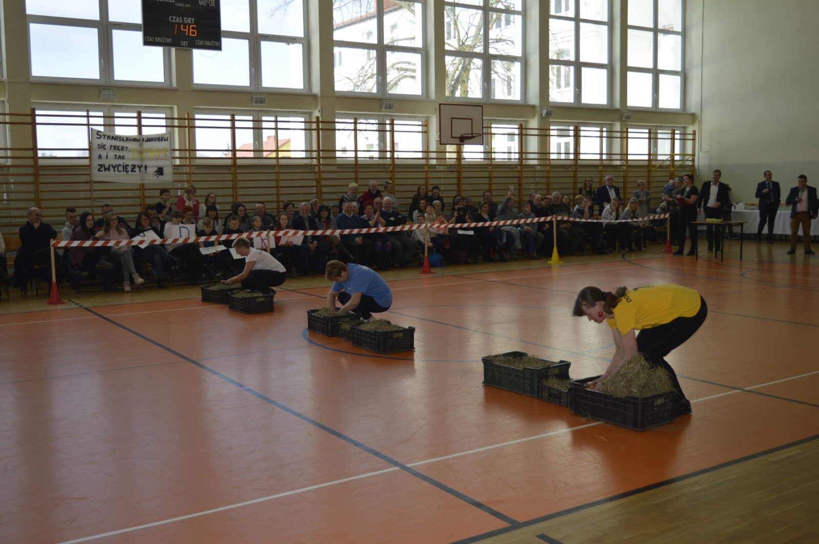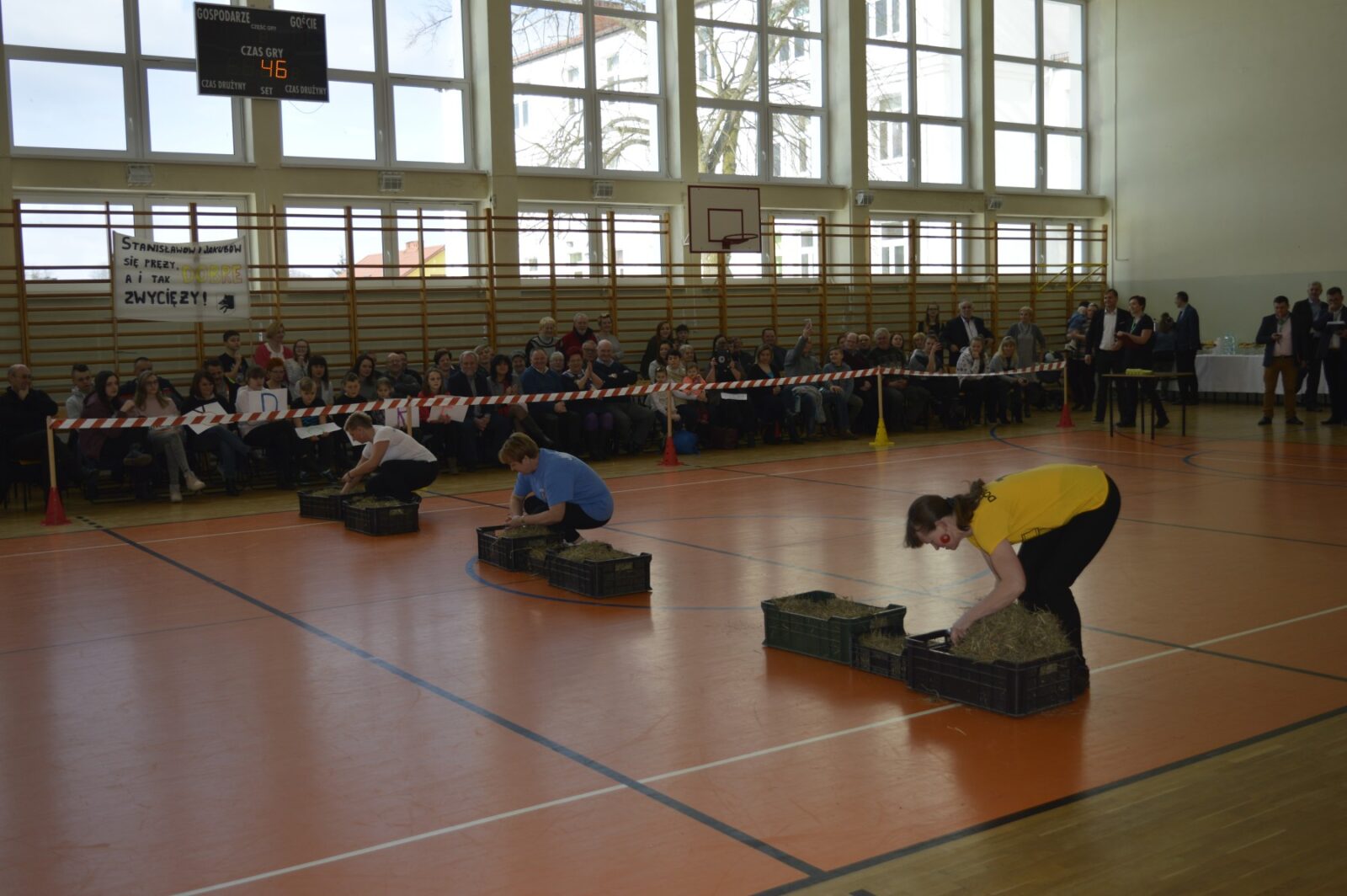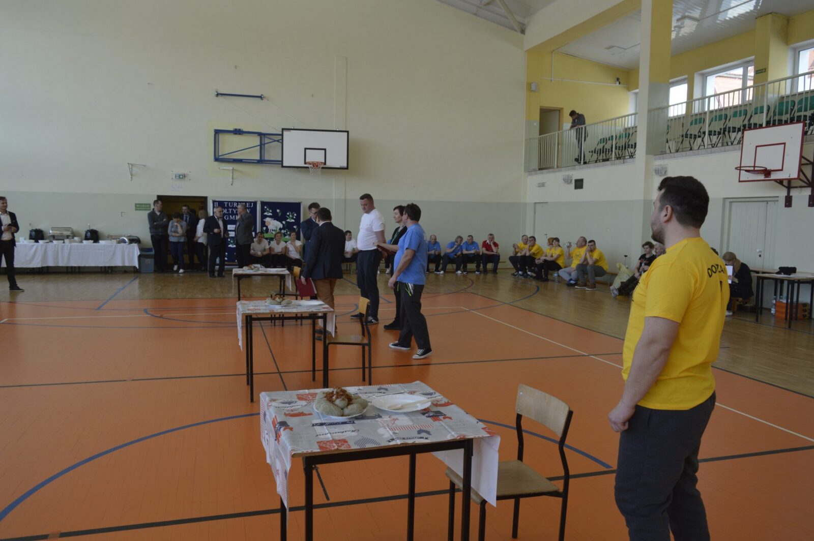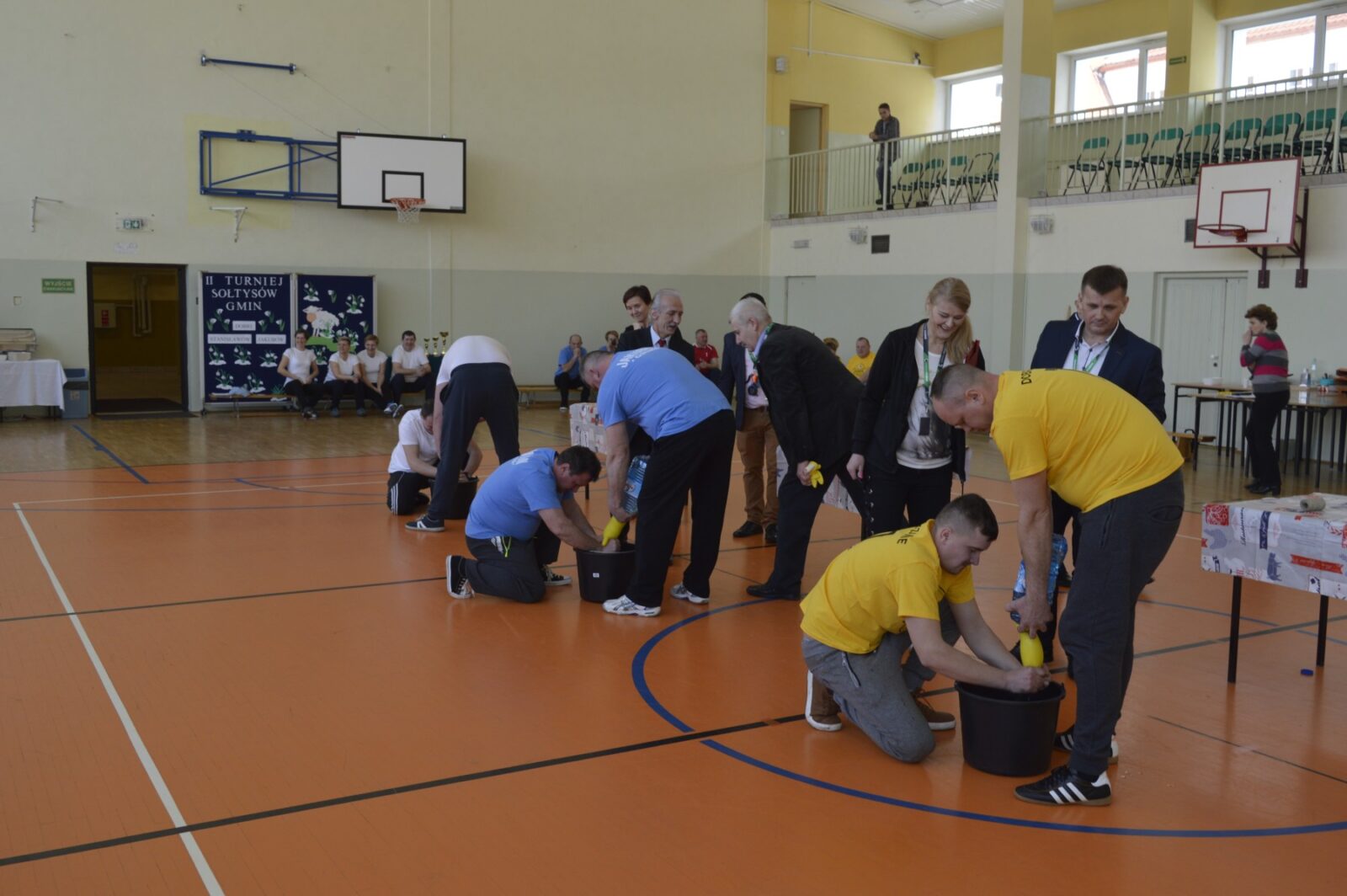 W dalszej części Turnieju sołtyski szukały jajek w sianie i przenosiły je na łyżkach do wytłaczanek, grabiły siano i zbierały go do worka , sołtysi doili krowę, obierali ziemniaki, przewożono sołtyskę w taczce pomiędzy pachołkami. W dwóch konkurencjach sołtysi mieli możliwość popisania się zdolnościami kulinarnymi: w pierwszej z nich przygotowanie jajecznicy i jej spożycie , a w drugiej zjedzenie największej ilości byków z mięsem i skwarkami. Te ostatnie specjały przygotowały super Panie kucharki ze stołówki szkolnej. Wszyscy uczestnicy Turnieju , po jego zakończeniu mieli możliwość skosztowania wspaniałości kulinarnych w postaci grochówki i kiełbasy suto okrytej smażoną cebulą.