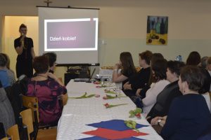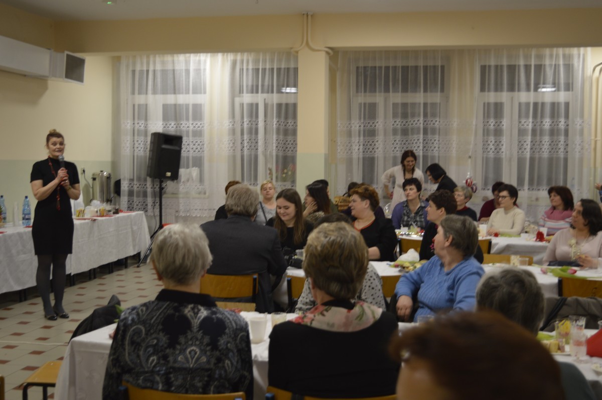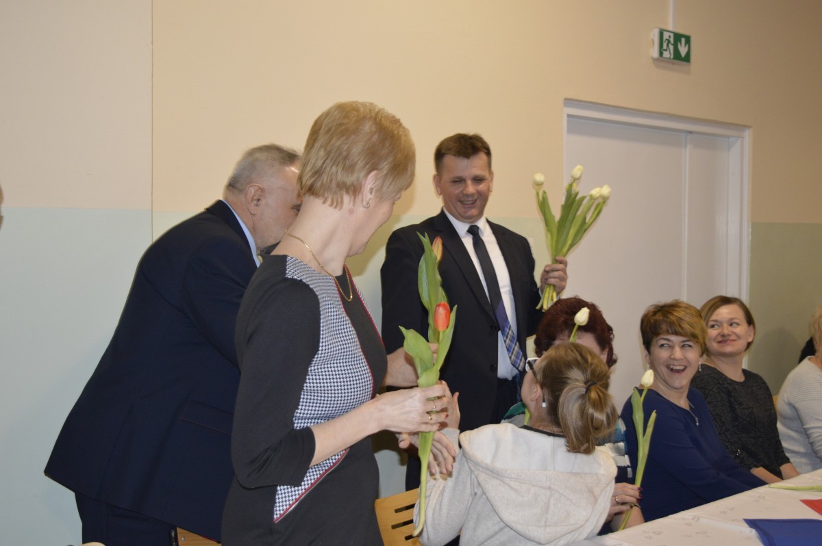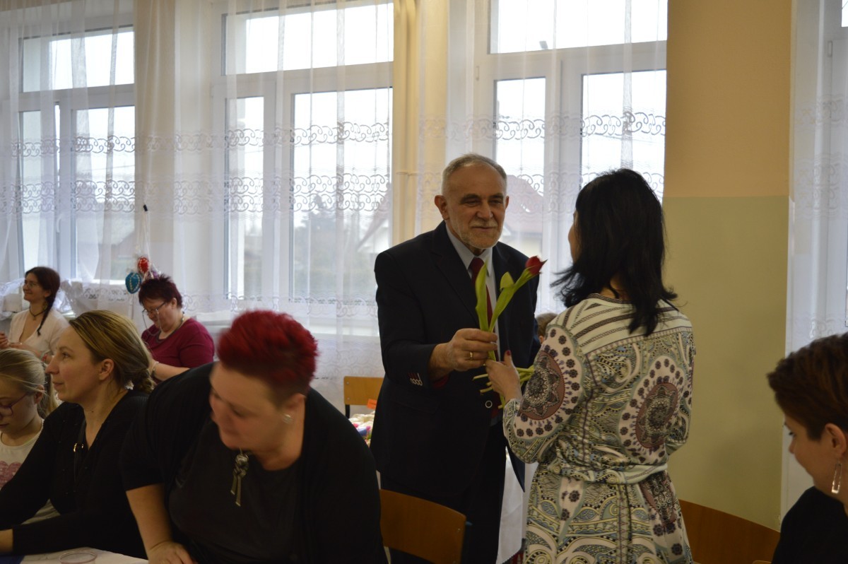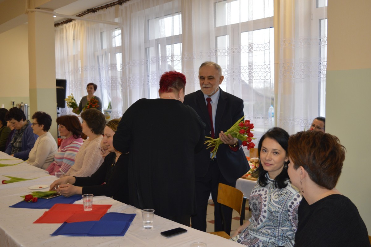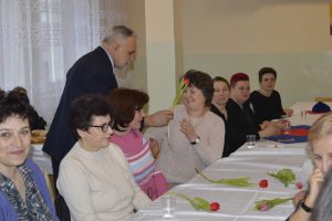 Przybyłych gości gorąco powitała sekretarz gminy Pani Iwona Księżopolska, po czym przekazała głos Panu Wójtowi, który oprócz pięknego przemówienia wraz z życzeniami wręczył też wszystkim obecnym kobietom symboliczny upominek w postaci żywego tulipana. Do życzeń i wręczenia kwiatów dołączył się również Wice Wójt Pan Piotr Chmielewski. Następnie głos oddano zaproszonym gościom specjalnie na tę uroczystość, wystąpił Pan Masoud Chikha – Specjalista Medycyny Rodzinnej, który wygłosił niezwykle ważne przemówienie dla wszystkich Pań na temat profilaktyki raka piersi i szyjki macicy.
