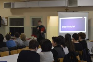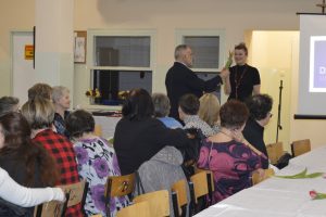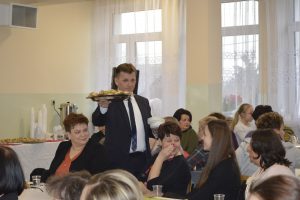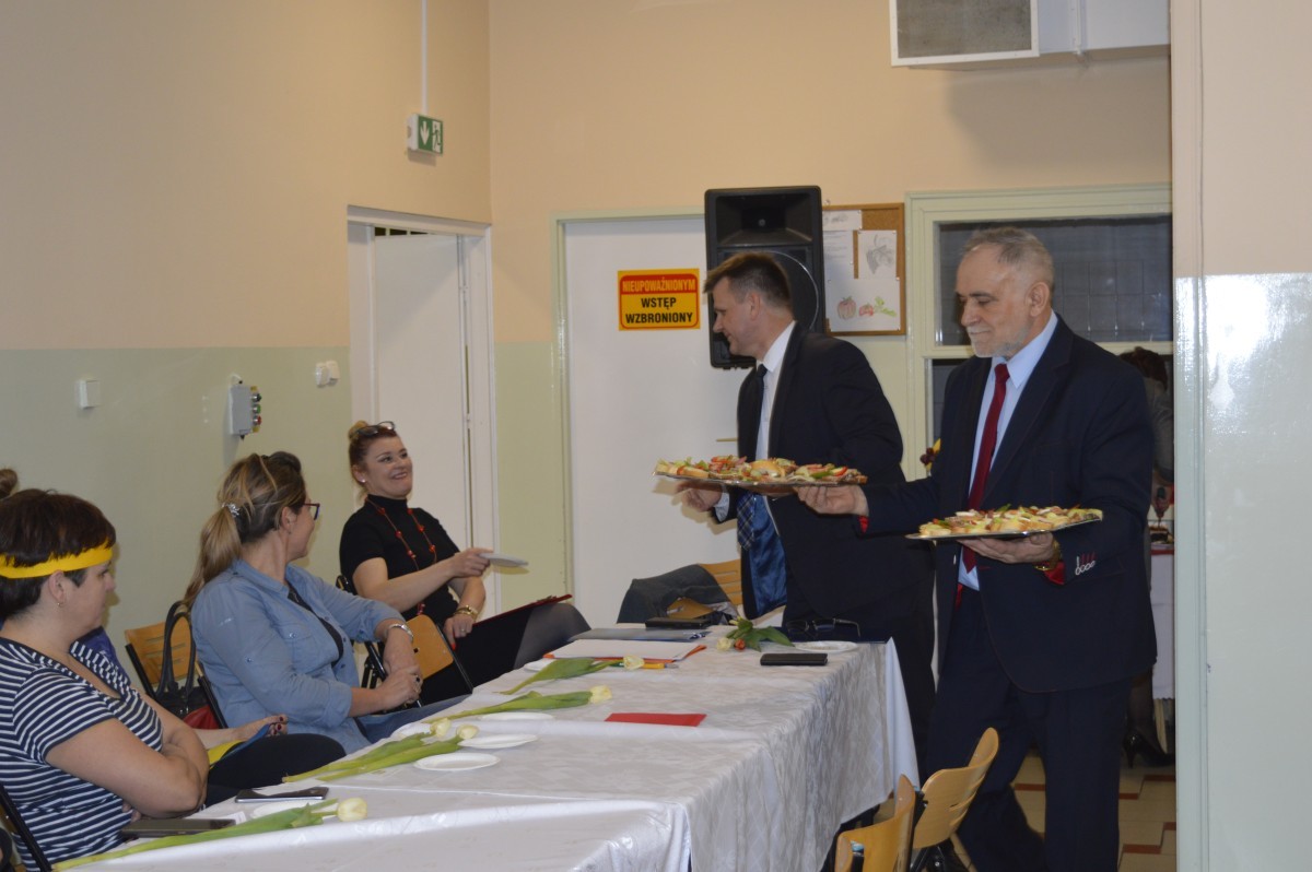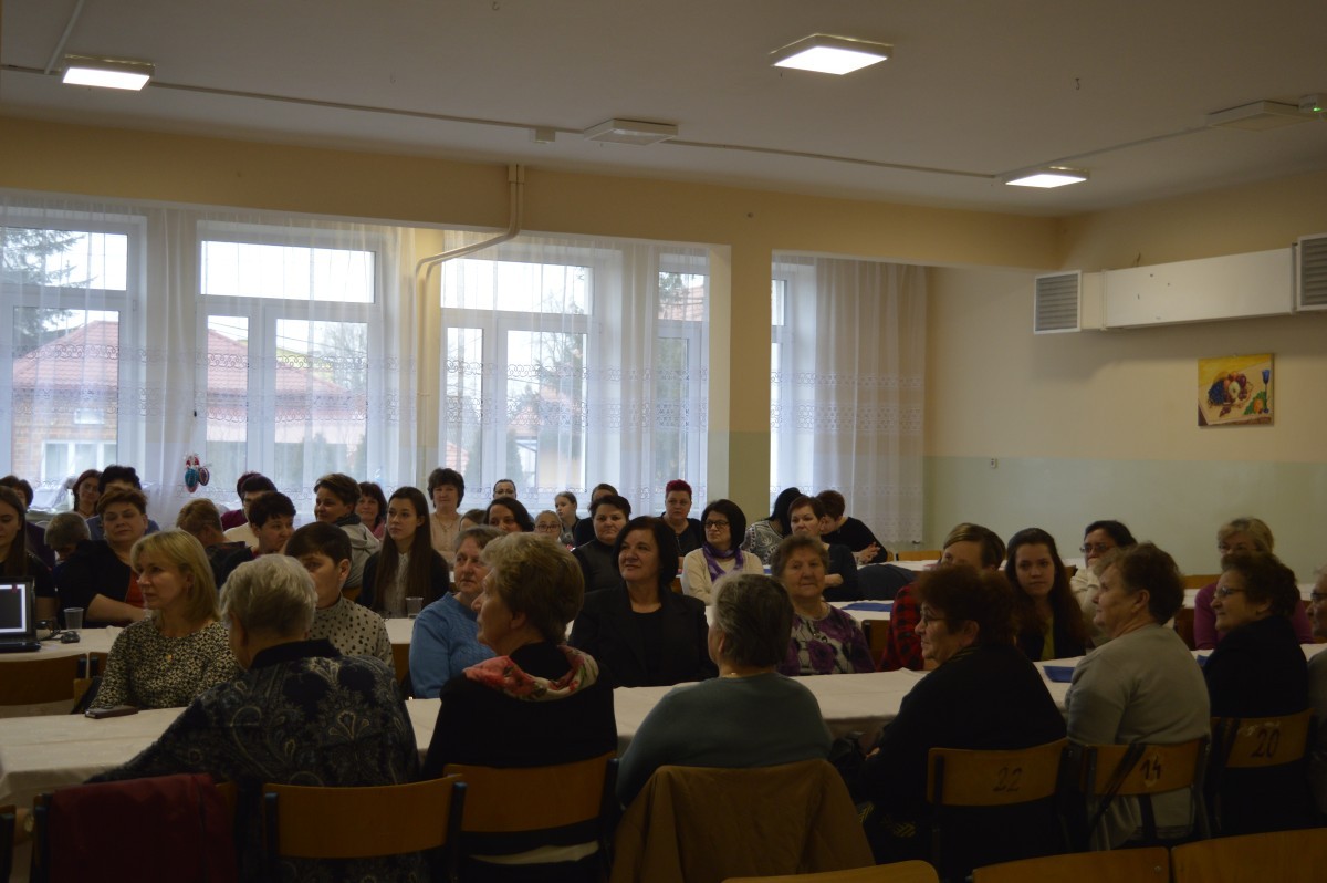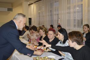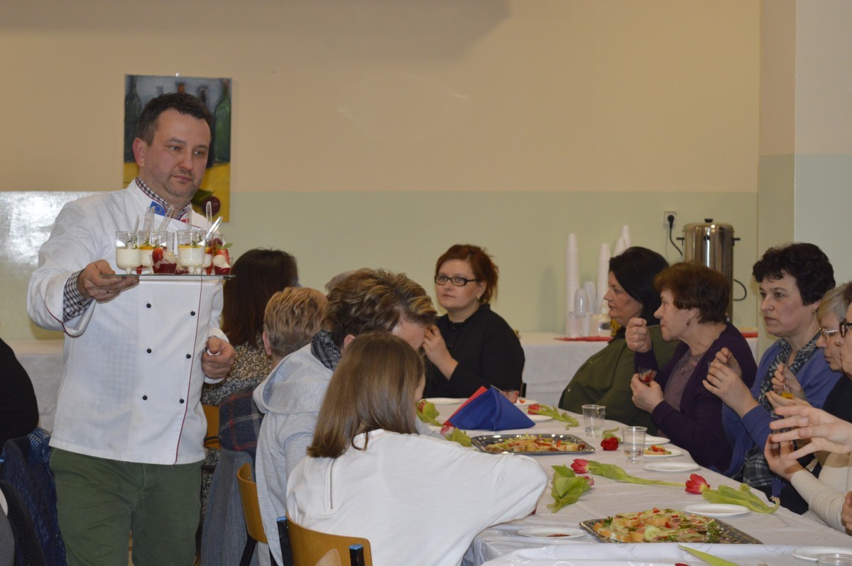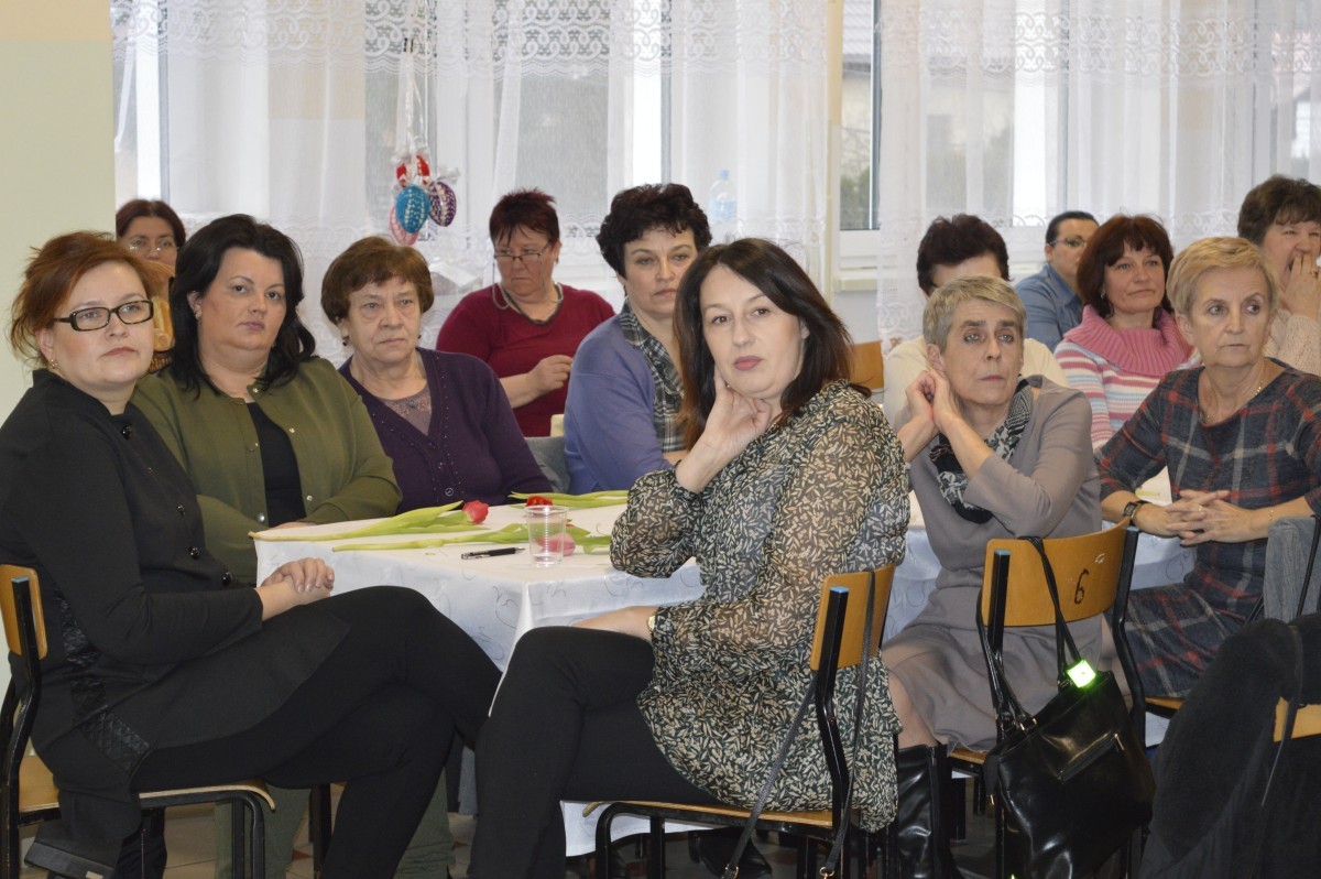Przybyłych gości gorąco powitała sekretarz gminy Pani Iwona Księżopolska, po czym przekazała głos Panu Wójtowi, który oprócz pięknego przemówienia wraz z życzeniami wręczył też wszystkim obecnym kobietom symboliczny upominek w postaci żywego tulipana. Do życzeń i wręczenia kwiatów dołączył się również Wice Wójt Pan Piotr Chmielewski. Następnie głos oddano zaproszonym gościom specjalnie na tę uroczystość, wystąpił Pan Masoud Chikha – Specjalista Medycyny Rodzinnej, który wygłosił niezwykle ważne przemówienie dla wszystkich Pań na temat profilaktyki raka piersi i szyjki macicy.