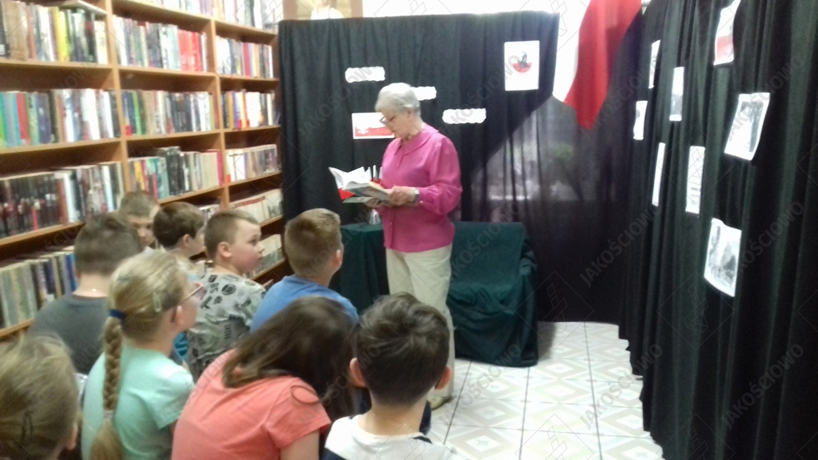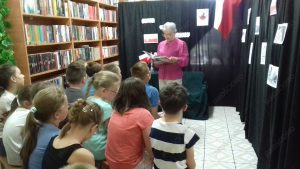 Gminna Biblioteka Publiczna zorganizowała akcję czytelniczą dla dzieci tym razem pod hasłem „Gmina Dobre dla Niepodległej ” w tym roku zaprosiliśmy do nas dzieci klasy III z Dobrego. Na nasze spotkanie została też zaproszona pani kustosz Muzeum Konstantego Laszczki Jadwiga Grzenda – emerytowana nauczycielka historii. Przeczytała dzieciom jedno z opowiadań „ Historii Polski” ,ciekawie opowiadała o Drodze do Niepodległości i Marszałku Piłsudskim. Zaszczepiła w dzieciach zalążki miłości do swojego kraju, szacunku dla Ojczyzny i jej bohaterów oraz świadomość i poczucie dumy z bycia Polakiem.