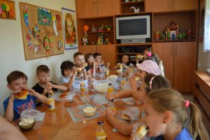 W końcu nadeszły wakacje! To oznacza, że w naszym Gminnym Ośrodku Kultury, jak co roku, odbyły się zajęcia inaugurujące ten niezwykły czas. W ostatnim tygodniu czerwca dzieci z Gminy Dobre brały udział w licznych zajęciach, warsztatach i wyjazdach. W poniedziałek rozwijały zdolności kulinarne pod czujnym okiem Pana Marcina z Marcelowej Chaty. We wtorek brały udział w warsztatach organizowanych w Gminnej Bibliotece Publicznej. W środę oraz w czwartek nasza wesoła grupa odwiedziła kino w Siedlcach i obejrzała świetne filmy: „Odlotowy Nielot” i „Uprowadzona Księżniczka”. W piątek zaś dzieci mogły poczuć się niczym Konstanty Laszczka na zajęciach plastycznych, które odbyły się w naszym Muzeum. Dobra wiadomość jest taka, że było super (dzieci potwierdzają). Mamy też złą wiadomość: pierwszy tydzień wakacji już dawno za nami, widzimy się w ferie!