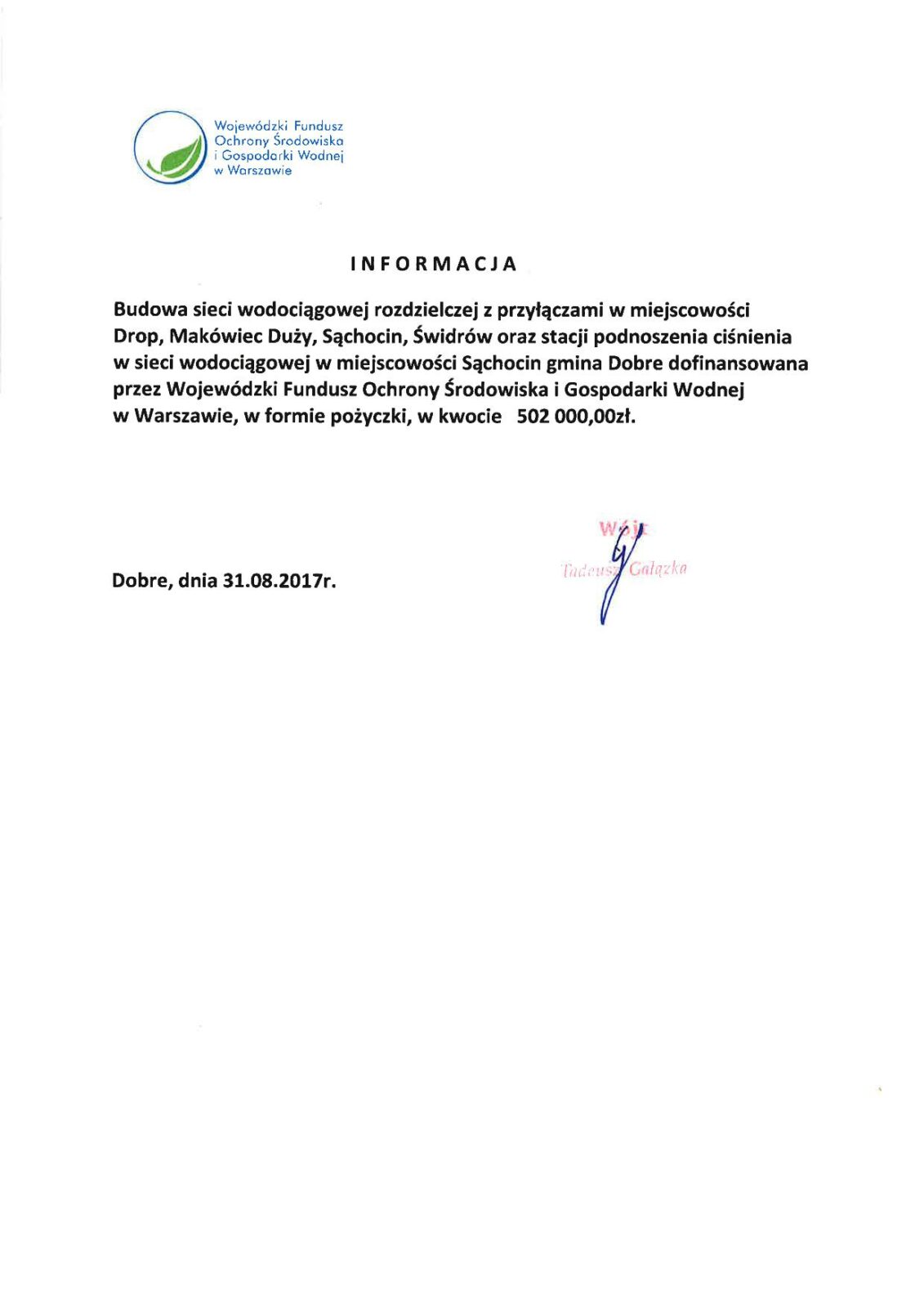 • Budowa sieci wodociągowej rozdzielczej z przyłączami w miejscowości Drop