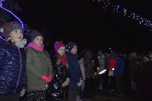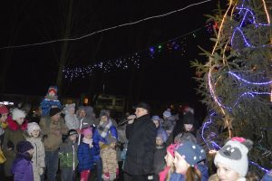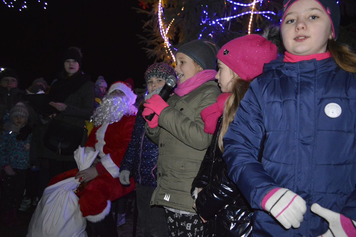 Dzieci z koła wokalnego, teatralnego i krasomówczego działającego przy Gminnym Ośrodku Kultury w Dobrem uroczyście powitały magiczne drzewko. Przygotowany program artystyczny wprowadził wszystkich zebranych w świątecznych nastrój. Dodatkową atrakcją było spotkanie ze Świętym Mikołajem, który jak zawsze odwiedza dzieci z Dobrego z ogromnym workiem prezencików.