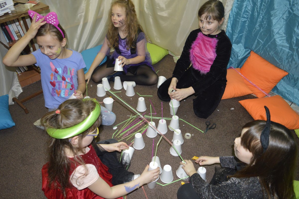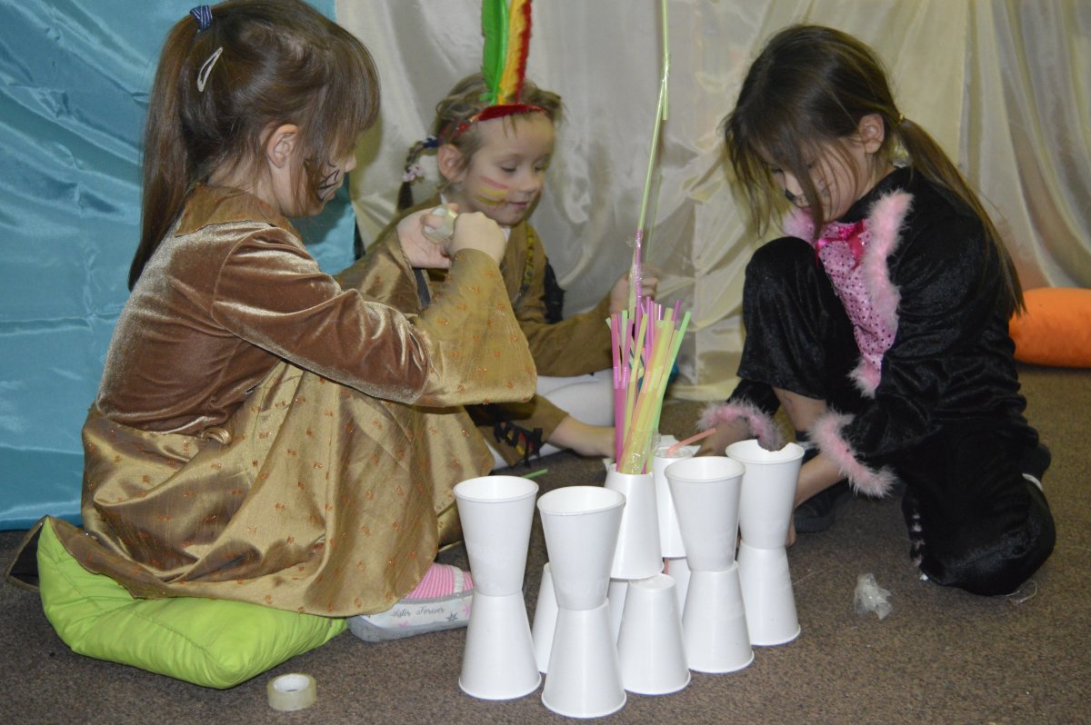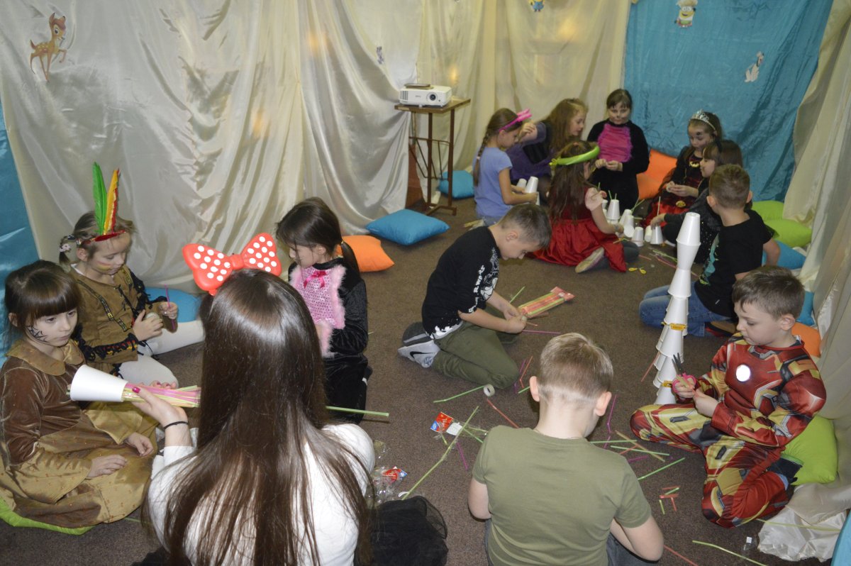 Tegoroczne ferie zimowe uczestnicy zajęć organizowanych przez Gminny Ośrodek Kultury rozpoczęli od wyjazdu do kina. Film pt. „Chłopiec z burzy” okazał się ciekawą, wzruszającą i pouczającą opowieścią. Następnego dnia odbyły się warsztaty artystyczne, na których powstały obrazki malowane na szkle. Kolejny dzień to kolejne przygody i kolejny wyjazd do kina, tym razem na film o Ralfie Demolka, który przez przypadek trafił do Internetu. W czwartek odbyły się warsztaty manualne. Wystarczyła para skarpet i kilka innych drobiazgów, by okazało się, że nasze maluchy potrafią wyczarować prawdziwe krasnale. Starsza grupa natomiast ozdabiała kolorowe poduszki. Igła i nitka – nie lada wyzwanie, z którym wszyscy świetnie sobie poradzili. I w końcu piątek, czyli wieczory tematyczne, na które wszyscy czekali, tym razem z młodszą grupą przenieśliśmy się do świata bajek, grupa starsza wyruszyła w podróż na Półwysep Arabski, a nasza biblioteka zamieniała się w prawdziwy namiot Aladyna. Nie możemy się już doczekać wakacji. Do zobaczenia!