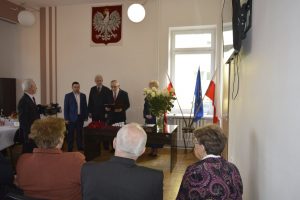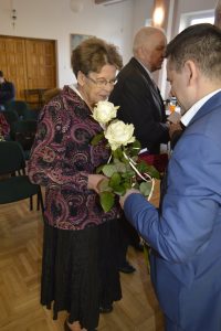 Obecni na uroczystości Jubilaci państwo Cecylia i Feliks Bankiewiczowie, Janina i Tadeusz Grudkowscy oraz Janina i Zygmunt Kossakowscy wysłuchali życzeń i słów najwyższego szacunku od Wójta Gminy Tadeusza Gałązki. Życzenia Jubilatom składali też: kierownik USC Danuta Rawska, Przewodniczący Rady Gminy Waldemar Szymański oraz Sekretarz Gminy Marcin Sitnicki.