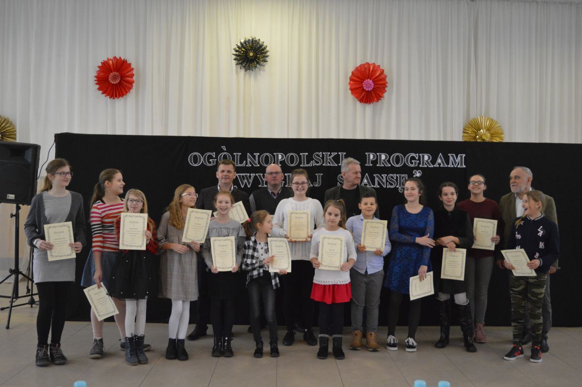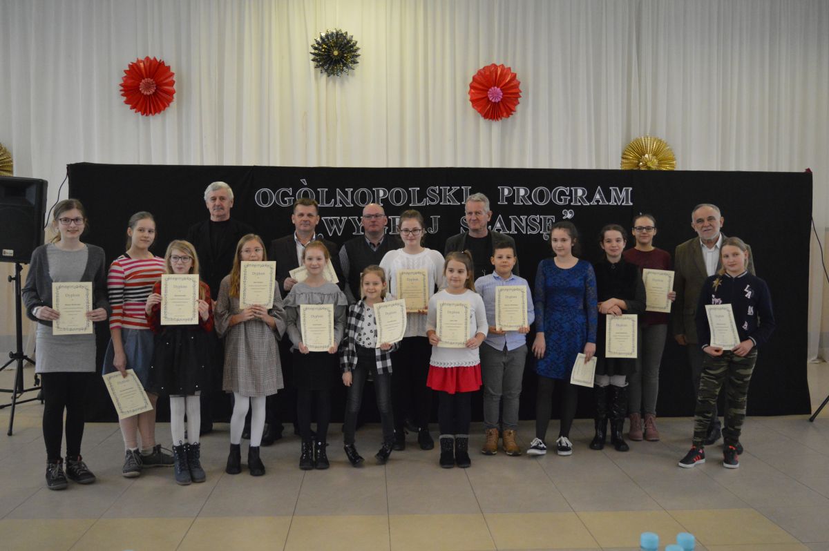 „Co ja w Tobie widziałam” śpiewały uczestniczki eliminacji gminnych do Ogólnopolskiego Konkursu Wokalnego pt. „Wygraj Szansę”, uczestnik zaś wykonał utwór pt. „Dozwolone od lat osiemnastu”. W eliminacjach wzięło udział trzynastu uczestników z trzech szkół z naszej Gminy, ale numeru trzynaście nie było! Wszystkie wylosowane numerki oznaczające kolejność występów okazały się szczęśliwe, chociaż zwycięzca mógł być tylko jeden. Jury w składzie: Pan Piotr Chmielewski, Pan Mieczysław Osiadacz i Pan Stanisław Halagiera, miało niezwykle trudne zadanie, bo cała trzynastka wypadła świetnie. Ostatecznie zwyciężczynią została Julia Czapska i to ona będzie reprezentowała Gminę Dobre na etapie ogólnopolskim. Gratulujemy i mocno trzymamy kciuki!