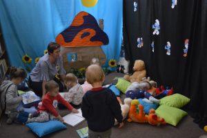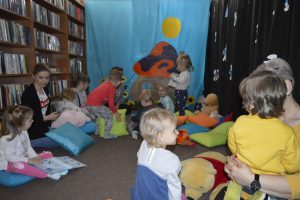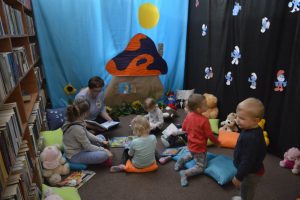23 kwietnia naszą Bibliotekę odwiedziła grupa dzieci z Gminnego Żłobka w Dobrem. To byli jedni z najmłodszych czytelników. Wszyscy byli tu po raz pierwszy. Maluszki wysłuchały krótkiej bajeczki i aktywnie odpowiadały na zagadki. Każde dziecko dostało dyplom i słodki upominek. Widać było, że grupa bardzo dobrze się czuje w otoczeniu wielu ilustrowanych książek dla najmłodszych. Z uśmiechem na twarzach wróciły do żłobka, ale obiecały że będą nas regularnie odwiedzać.