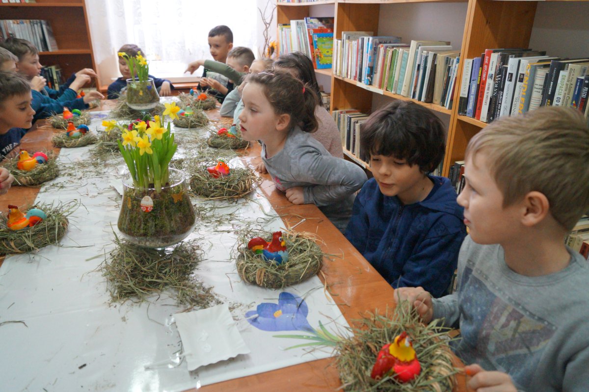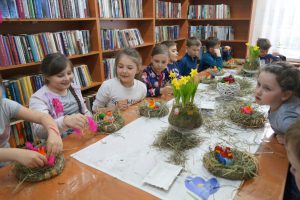 Z kolei dorośli uczestnicy warsztatów poznali technikę wykonania stroików wielkanocnych. Według własnych pomysłów stworzyli piękne dekoracje, które ozdobiły wielkanocny stół. Taka forma spędzania wolnego czasu w Gminnym Ośrodku Kultury służy integracji lokalnego środowiska i buduje tożsamość lokalną poprzez wzajemne poznanie i wymianę wiedzy i umiejętności.