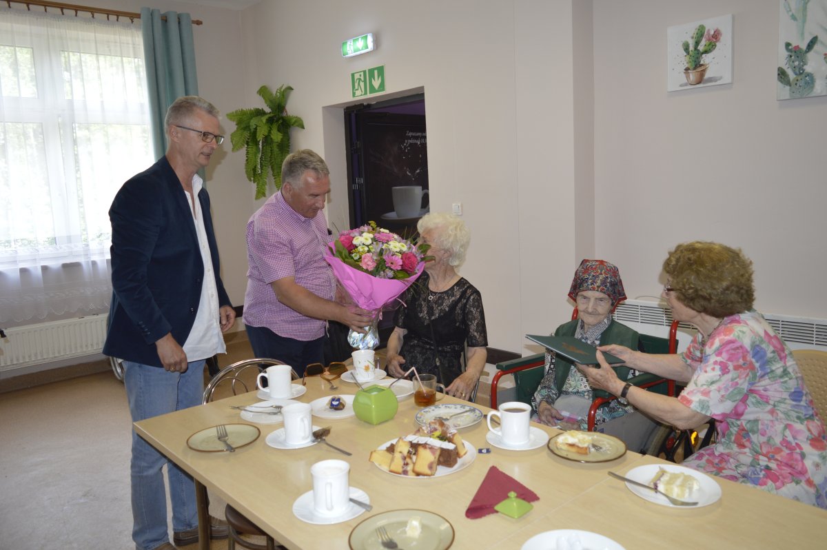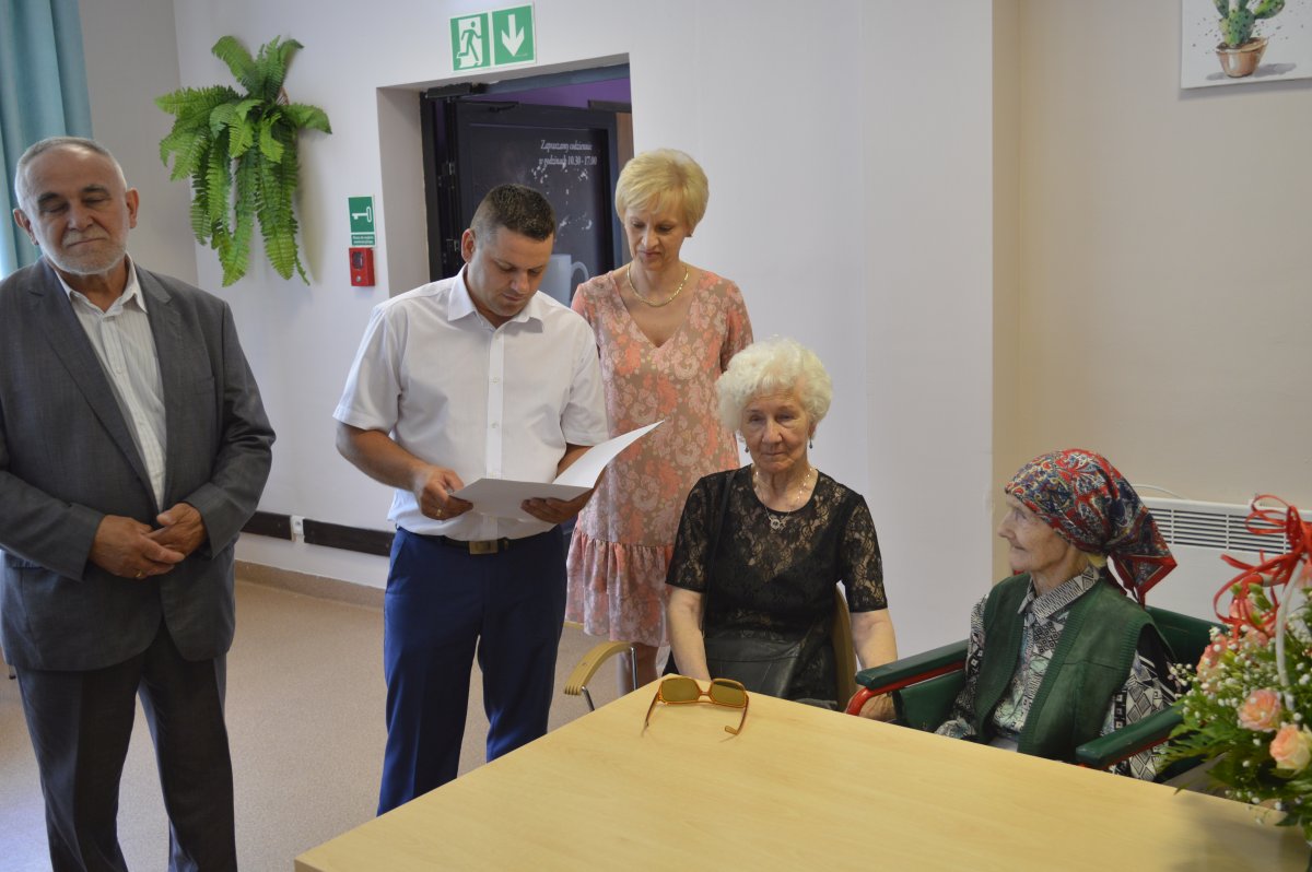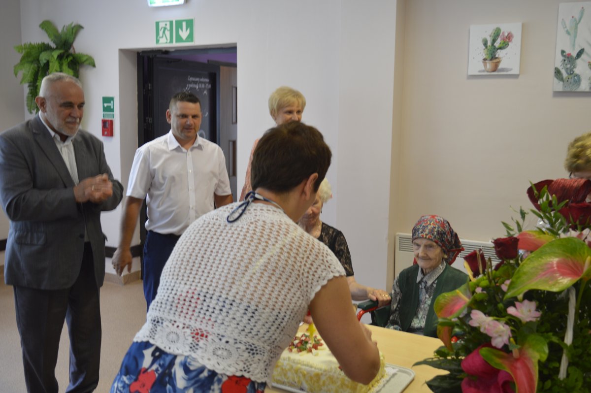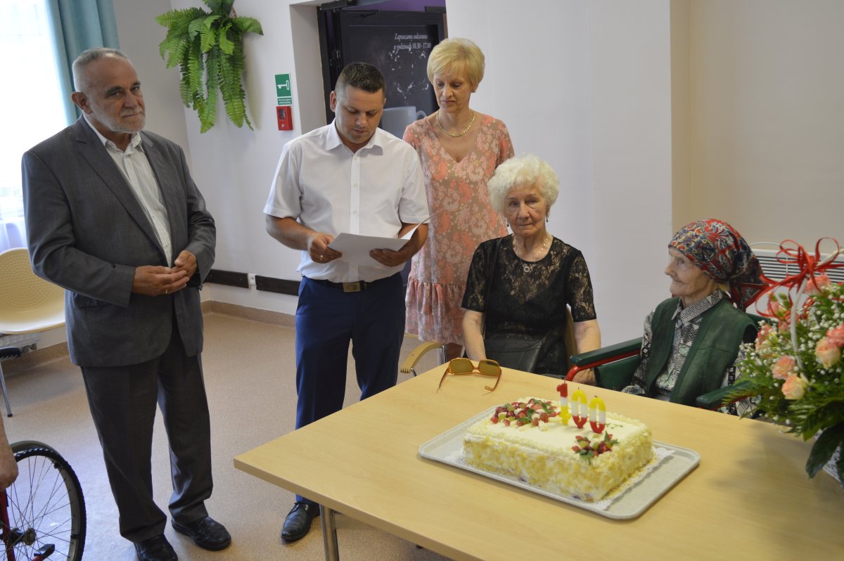 Pani Zofia Białek przebywająca obecnie w Zakładzie Opiekuńczo-Leczniczym w Drożdżówce. Z tej okazji odwiedziło ją wielu gości m.in. Wójt Gminy Tadeusz Gałązka, Sekretarz Urzędu Gminy Marcin Sitnicki, Kierownik USC Danuta Rawska i Kierownik KRUS w Mińsku Mazowieckim Adam Więckowski. Obecna była także rodzina Jubilatki, chorzy z oddziału i najważniejsze osoby opiekujące się na co dzień Panią Zofią.