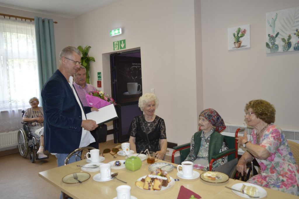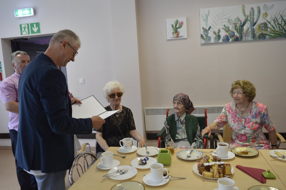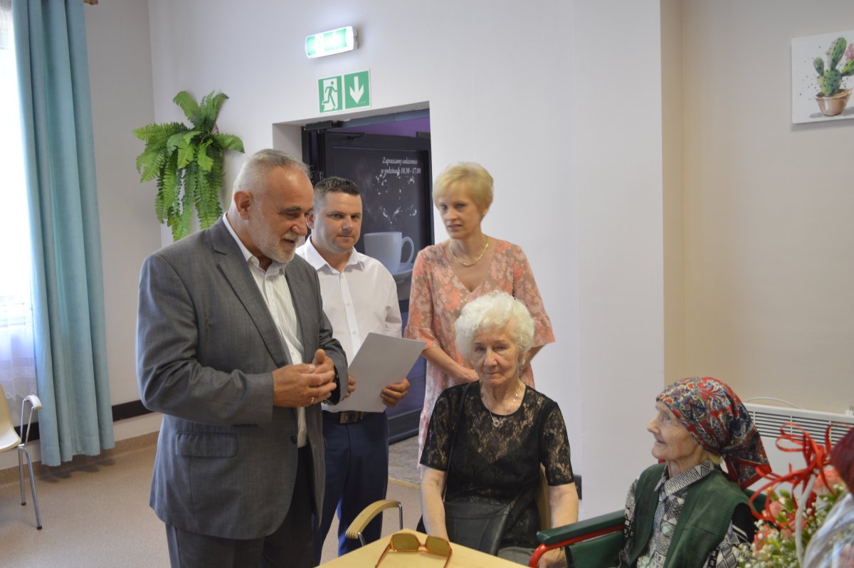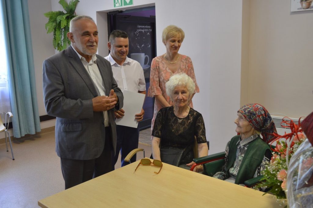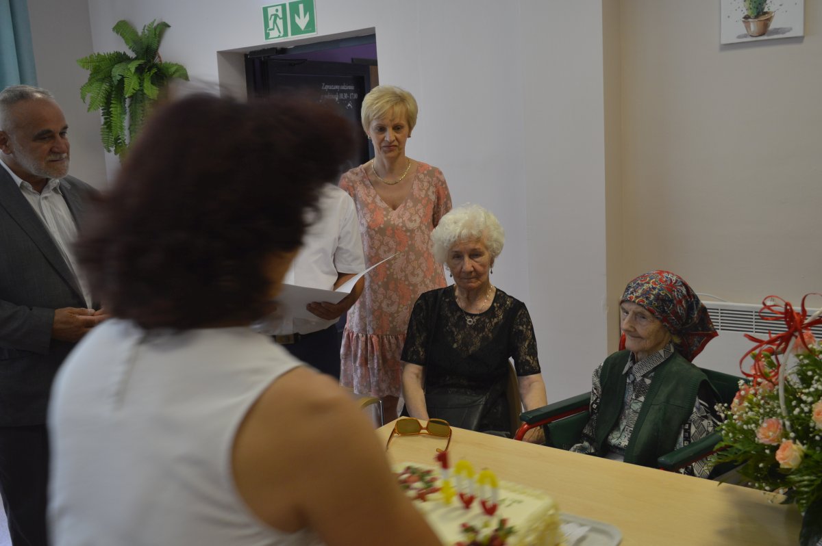 Pani Zofia Białek przebywająca obecnie w Zakładzie Opiekuńczo-Leczniczym w Drożdżówce. Z tej okazji odwiedziło ją wielu gości m.in. Wójt Gminy Tadeusz Gałązka, Sekretarz Urzędu Gminy Marcin Sitnicki, Kierownik USC Danuta Rawska i Kierownik KRUS w Mińsku Mazowieckim Adam Więckowski. Obecna była także rodzina Jubilatki, chorzy z oddziału i najważniejsze osoby opiekujące się na co dzień Panią Zofią.