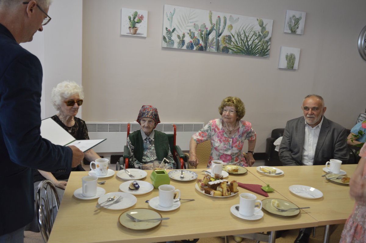 Wzruszona Jubilatka przyjmowała serdeczne życzenia, kosze z kwiatami i słodyczami. Życzenia dostojnej Jubilatce przesłał również Prezes Rady Ministrów, które zostały odczytane przez sekretarza urzędu gminy.