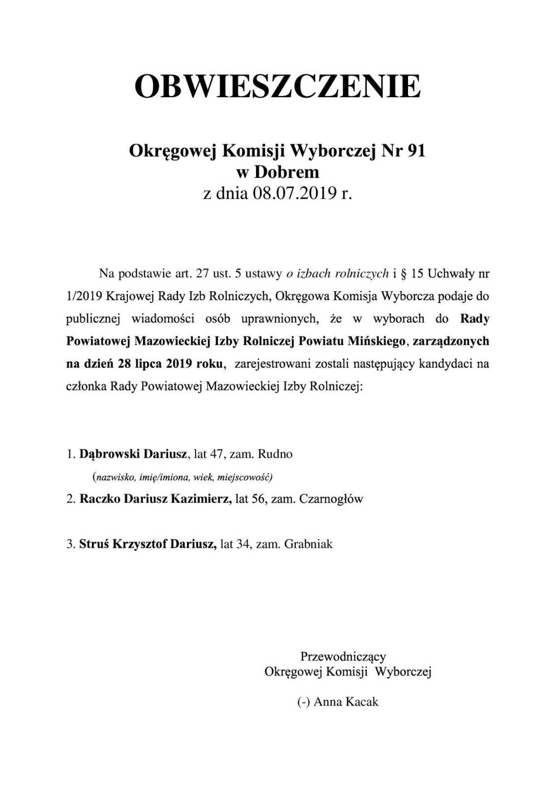 Obwieszczenie Wójta Gminy Dobre w sprawie wyborów