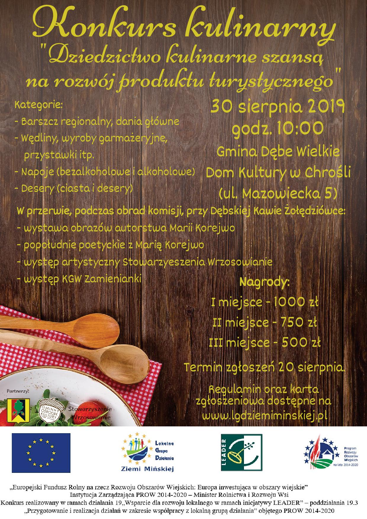 Celem konkursu jest promocja produktów regionalnych jako lokalne atrakcje turystyczne oraz szerzenie wiedzy o produktach tradycyjnych, regionalnych i żywności wysokiej jakości obszaru Lokalnej Grupy Działania Ziemi Mińskiej.