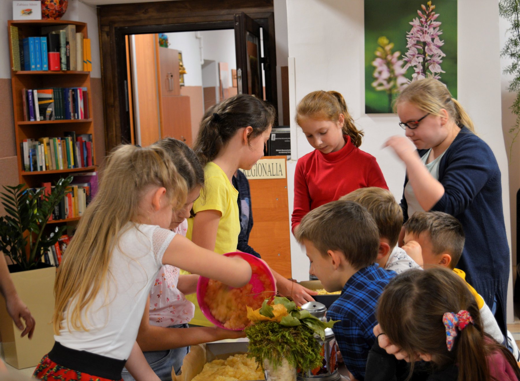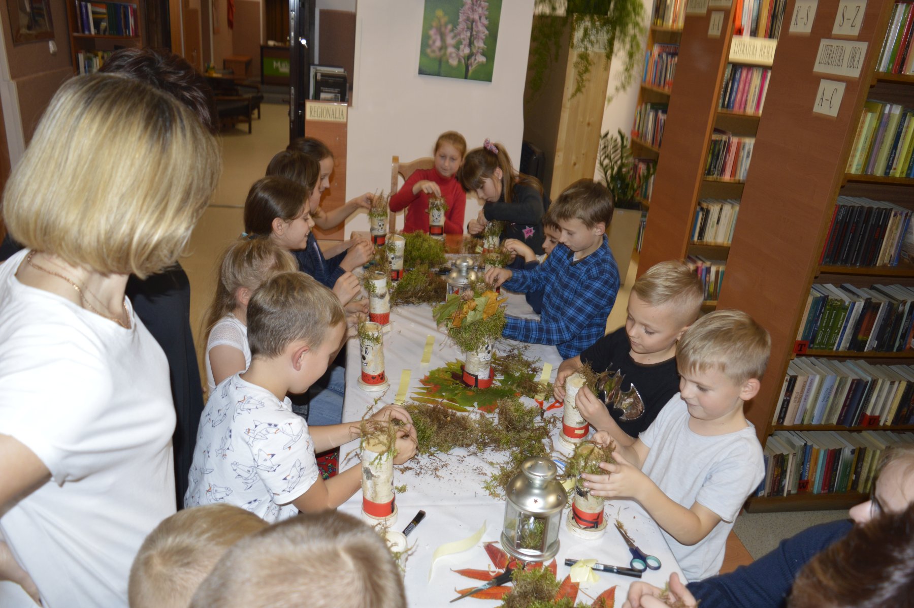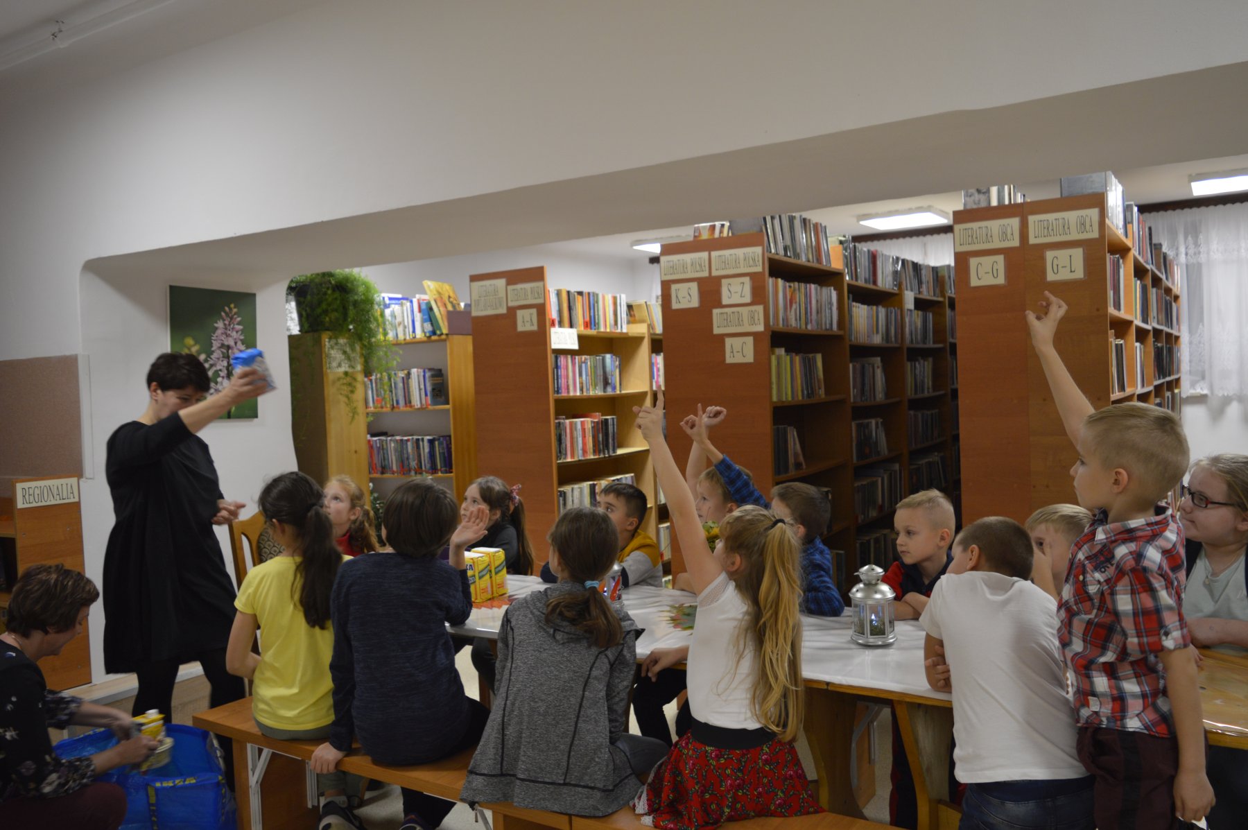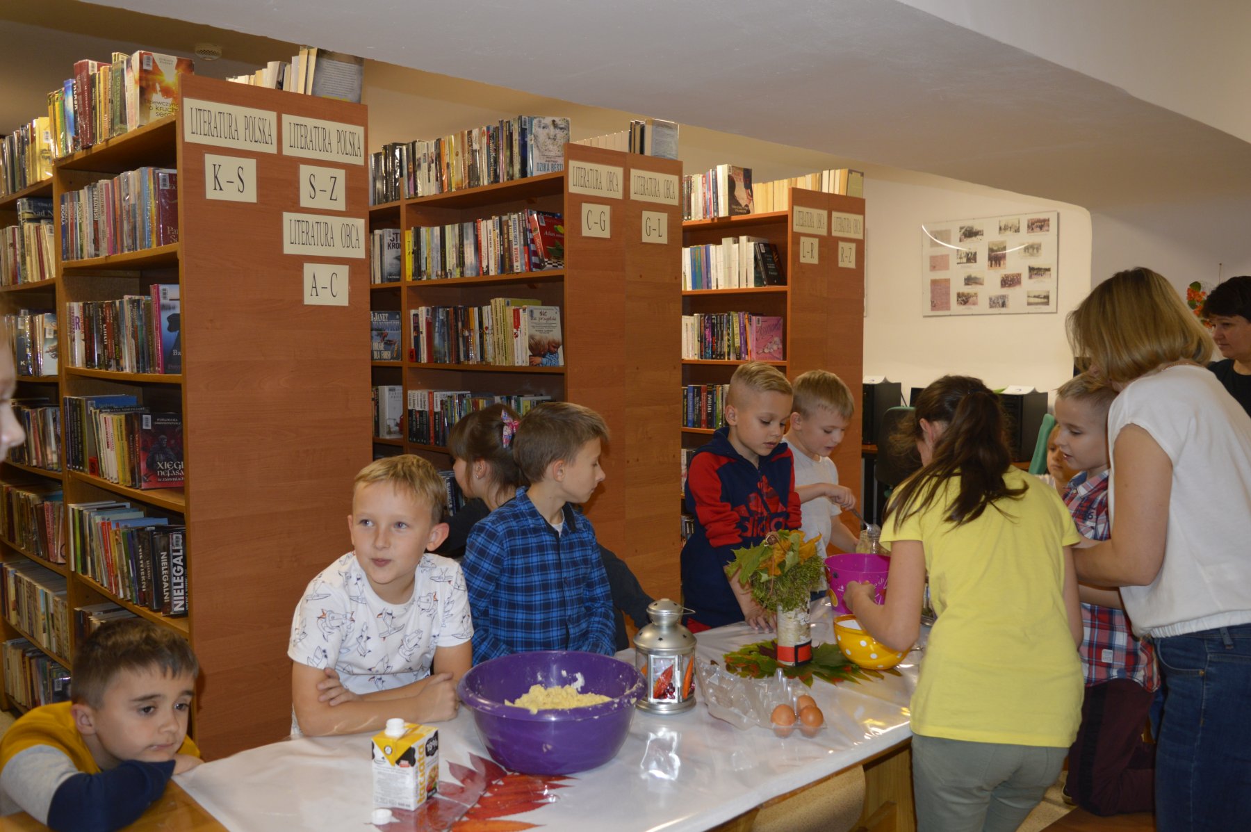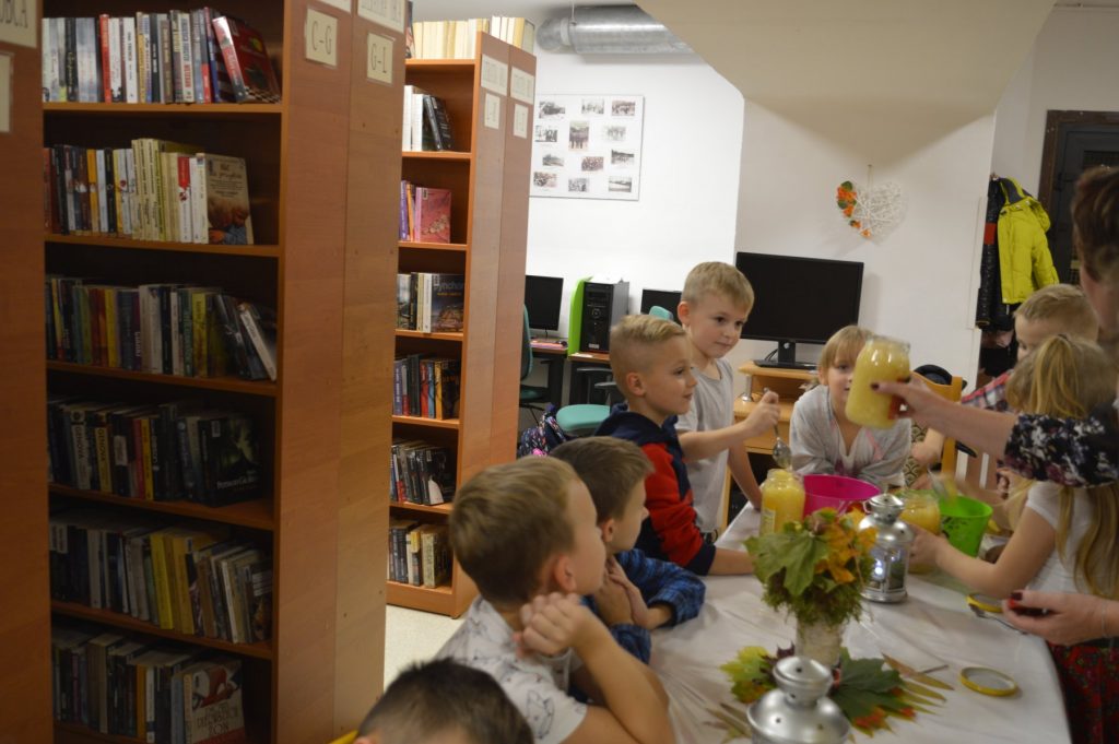 Gminny Ośrodek Kultury i Biblioteka w poniedziałkowe popołudnie 28 października zorganizowały dla dzieci „Zajęcia jesienne”. Wspólne spotkanie zaczęło się od zrobienia szarlotki. Podczas gdy ona się piekła, dzieci wzięły udział w czytaniu. Nie zabrakło oczywiście zagadek na które dzieci super odpowiadały.
