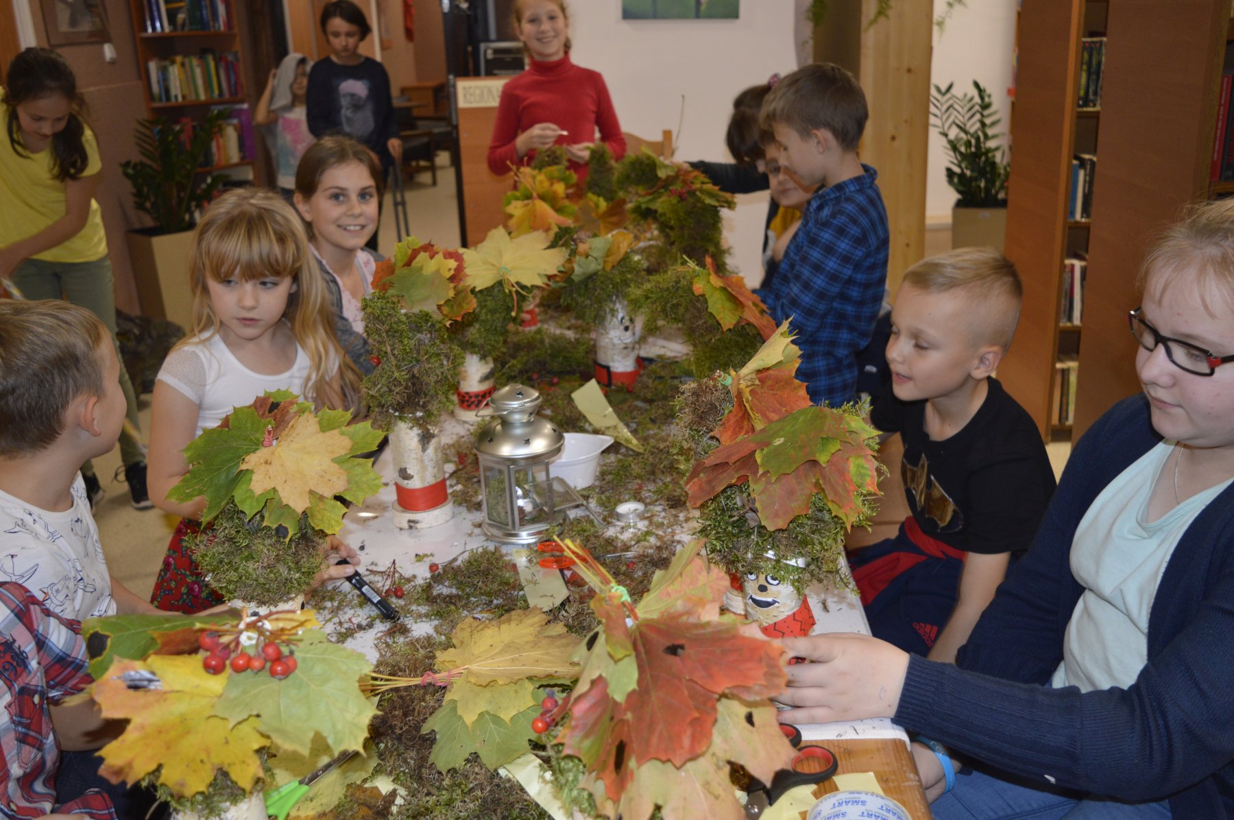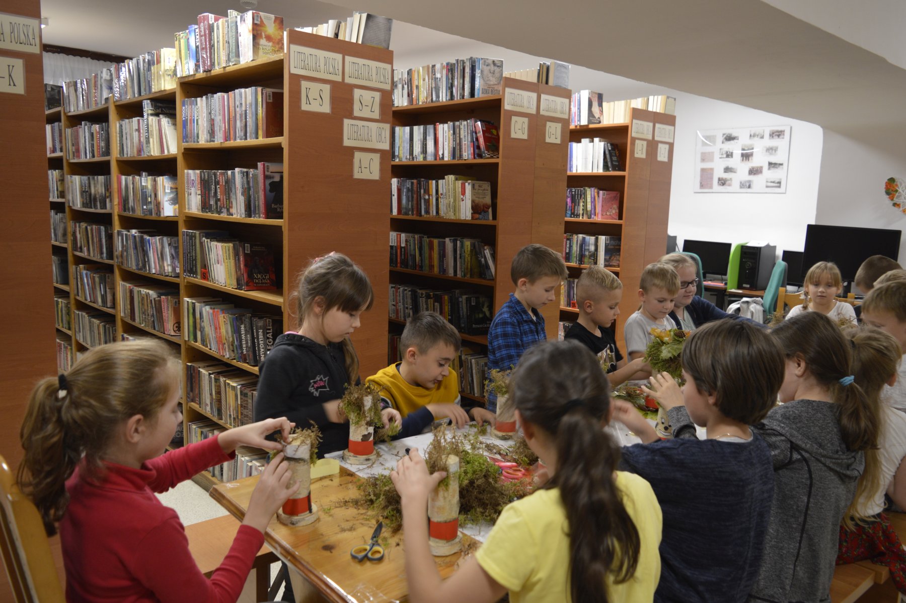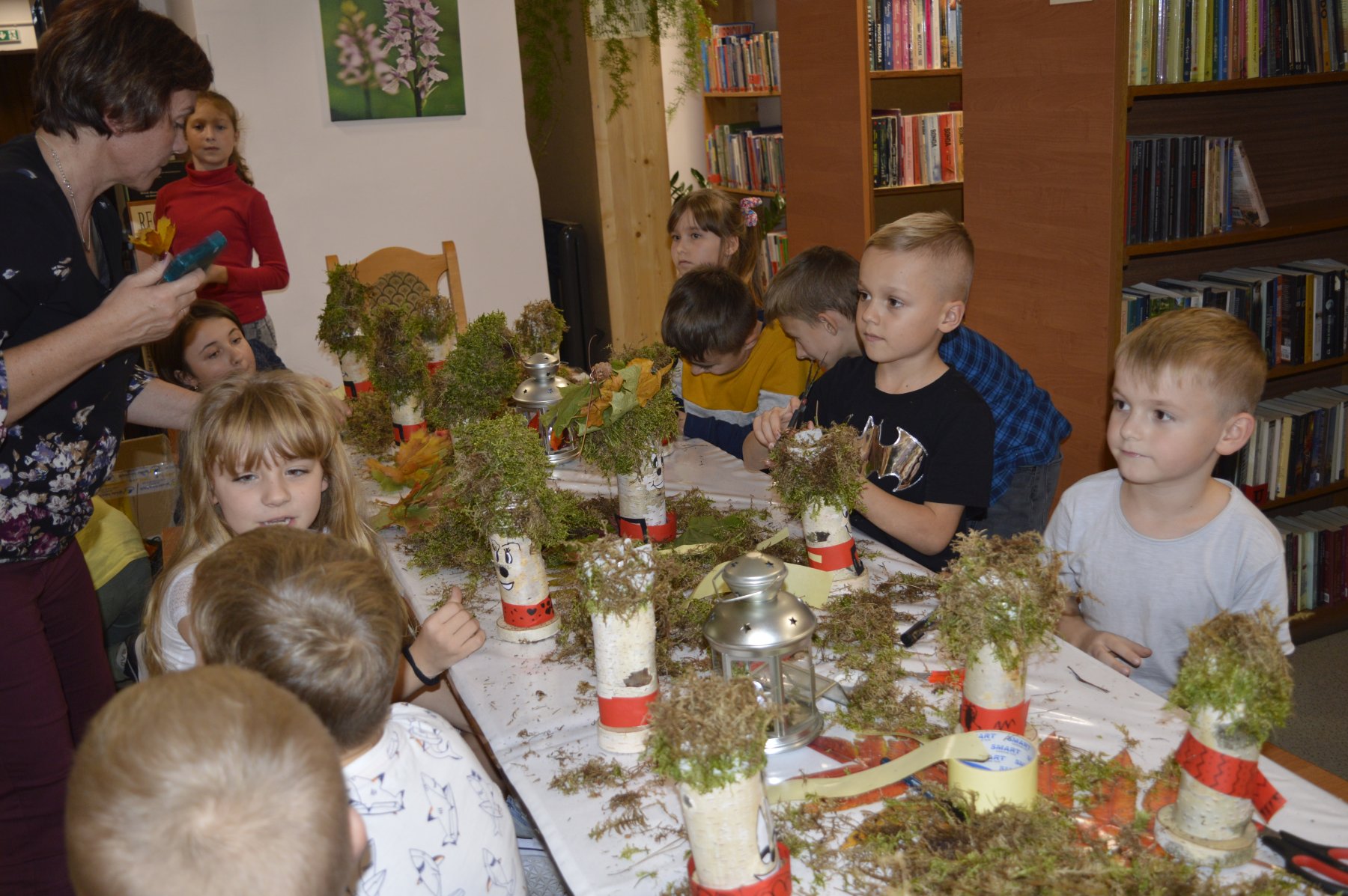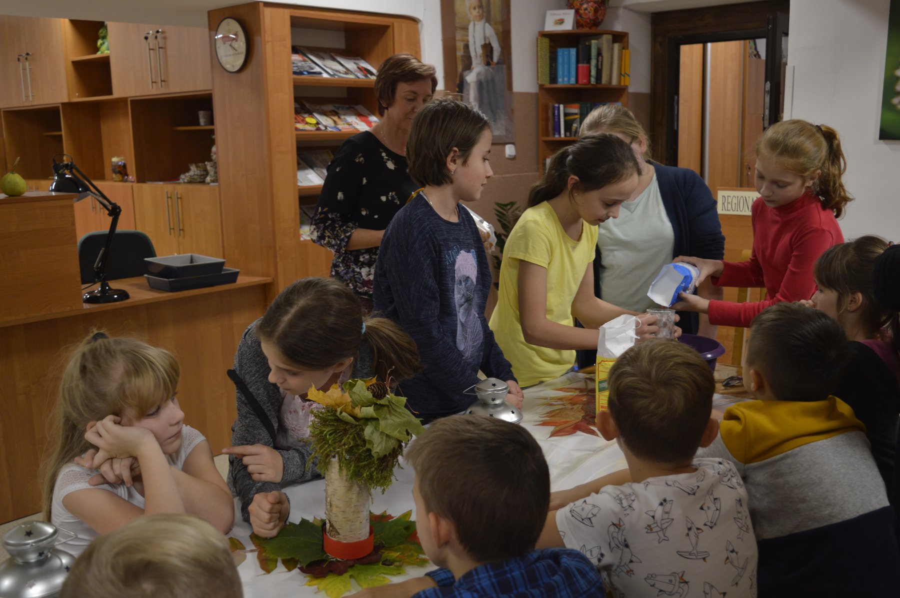 Gminny Ośrodek Kultury i Biblioteka w poniedziałkowe popołudnie 28 października zorganizowały dla dzieci „Zajęcia jesienne”. Wspólne spotkanie zaczęło się od zrobienia szarlotki. Podczas gdy ona się piekła, dzieci wzięły udział w czytaniu. Nie zabrakło oczywiście zagadek na które dzieci super odpowiadały.