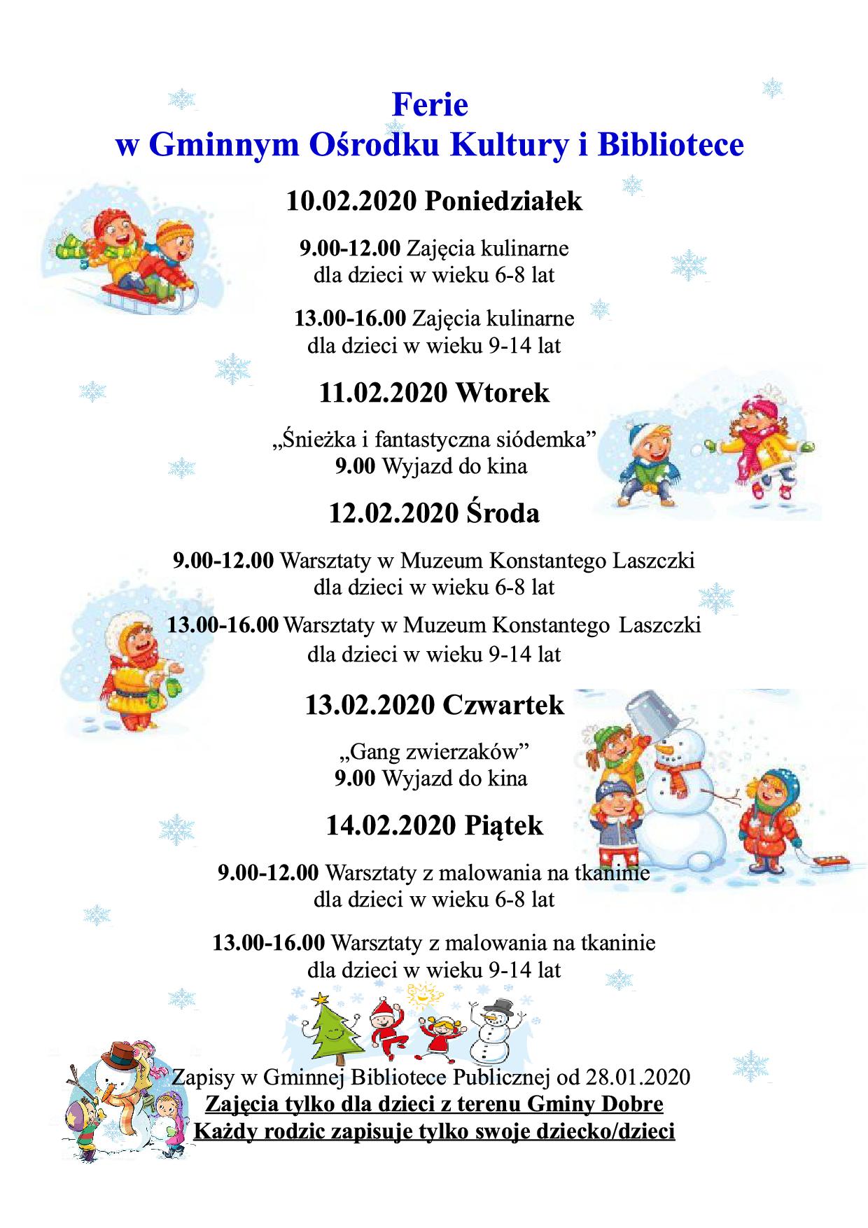 • Gminny Ośrodek Kultury i Biblioteka w Dobrem zapraszają na FERIE